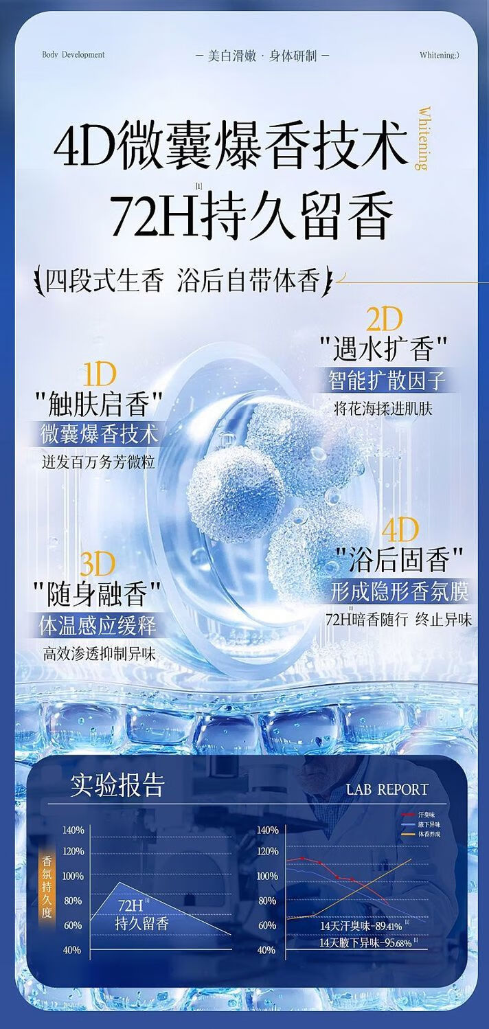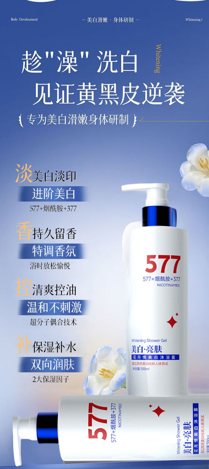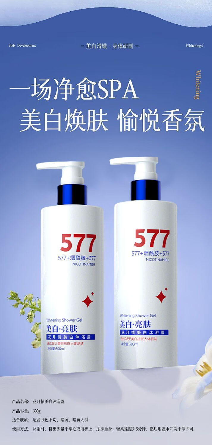 花月情美白沐浴露男女士持久留香72小时亮白嫩滑烟酰胺亮白滋润香体乳液 烟酰胺沐浴露【全身美白】 300ml 1瓶