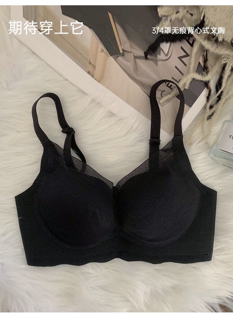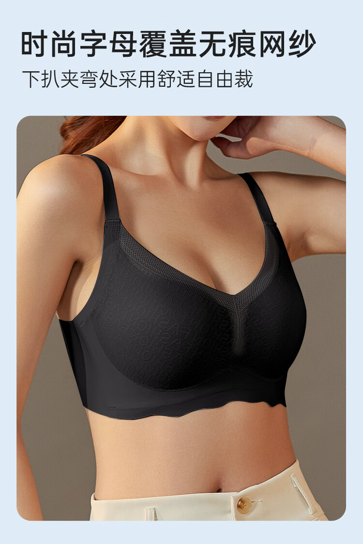 欧迪芬(Ordifen)秋冬胸聚拢】内衣女无钢圈文胸聚拢透气网纱胸罩侧收副乳防外扩 黑色 80B (165)