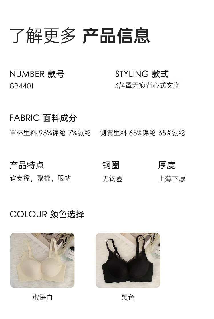 猫人(MiiOW)内衣女士舒适透气无钢圈文胸轻薄聚拢女士胸罩 随机款式 XL