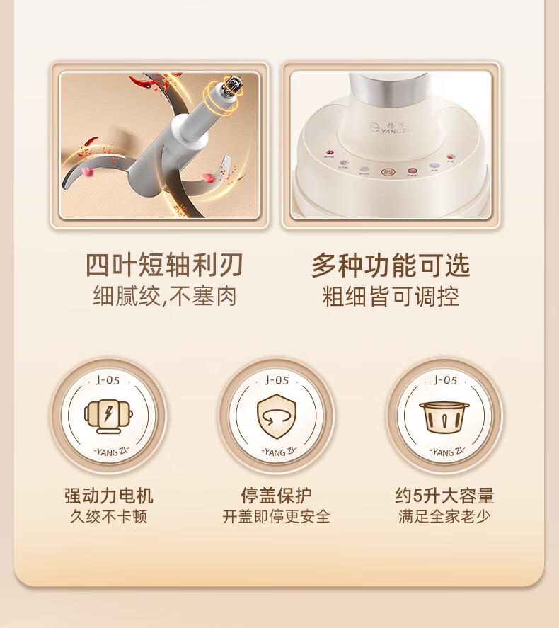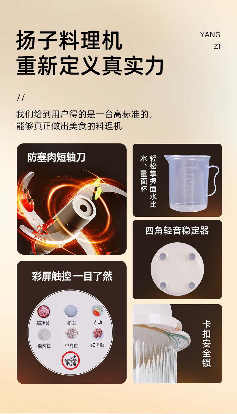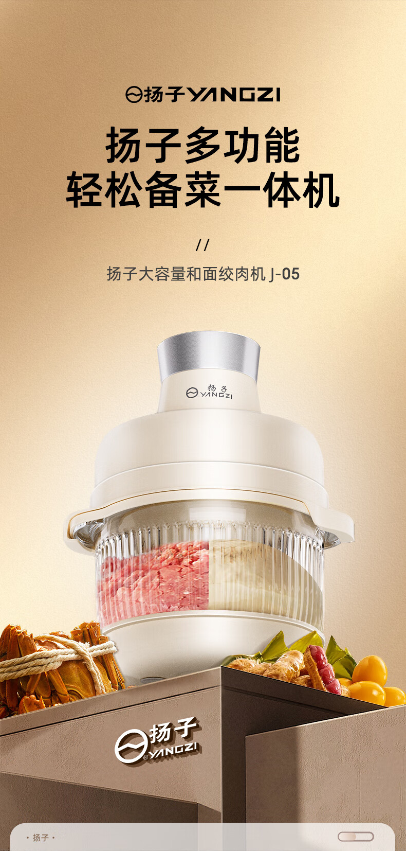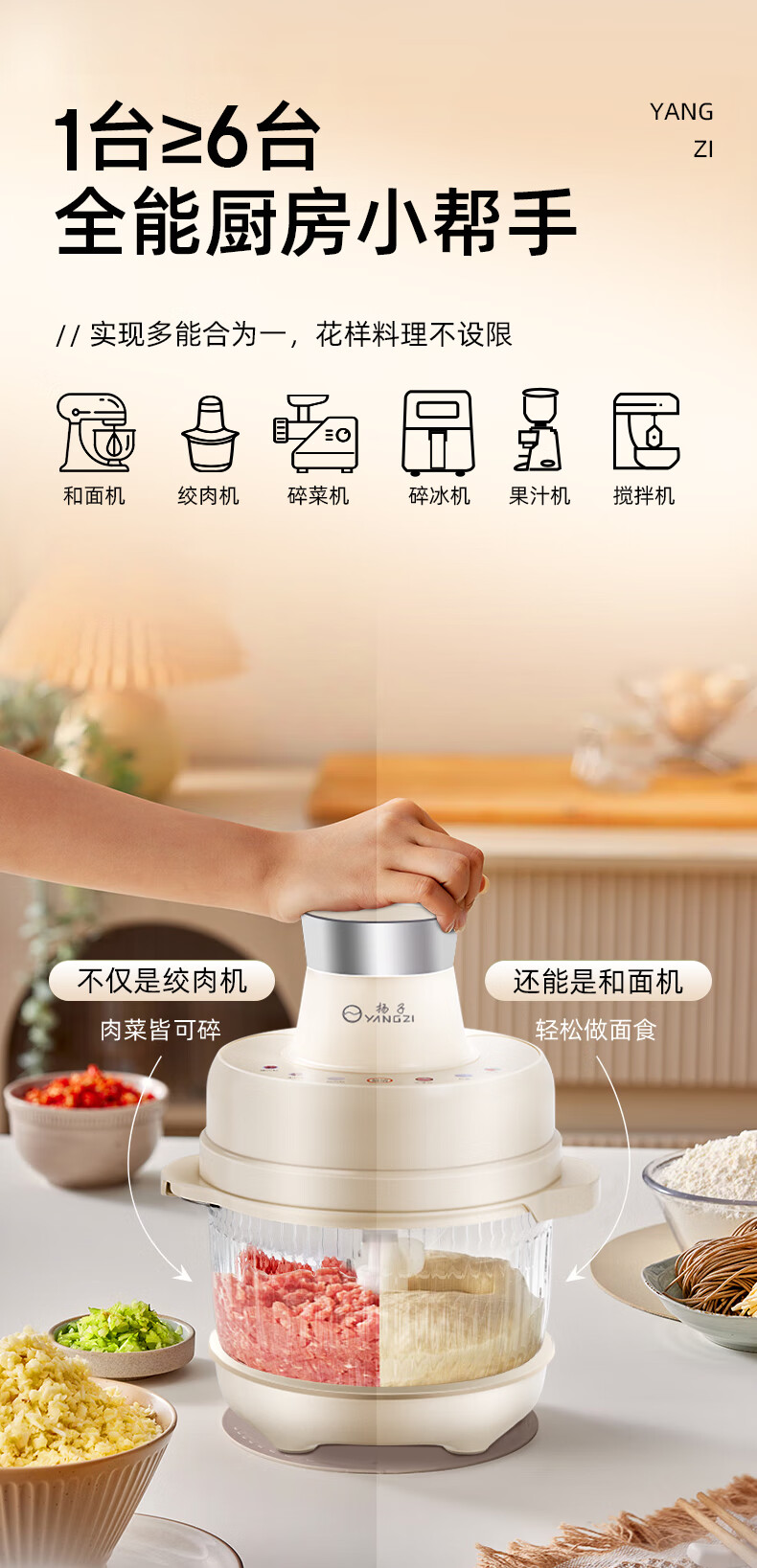 扬子(YANGZI)绞肉机料理机多功能家用绞肉和面机家用全自动和面揉面一体机家商用全自动电动纯铜电机揉面搅面机 直播同款 【和面机+绞肉机】 6叶精钢刀 5L