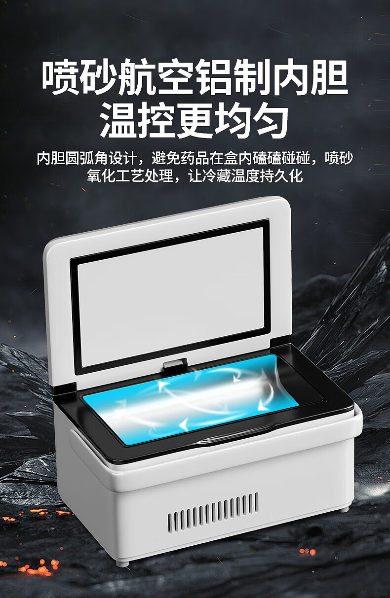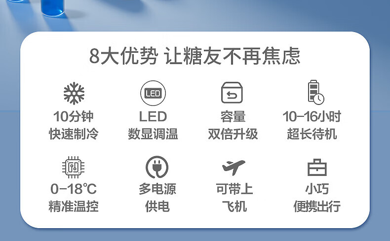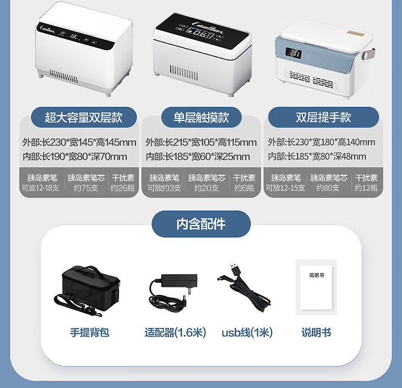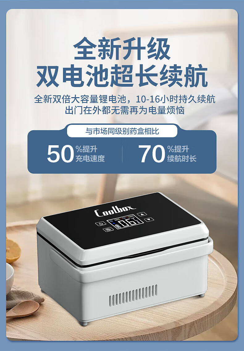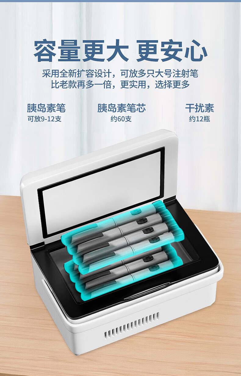 凯吉熊胰岛素冷藏盒便携式迷你小冰箱旅行充电式车载保鲜药品疫苗恒温箱 大盒提手单电池8小 车家两用 2L