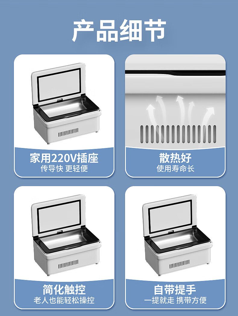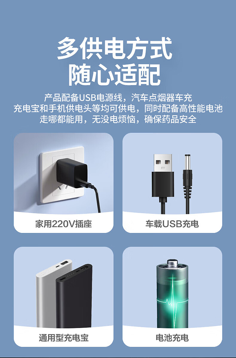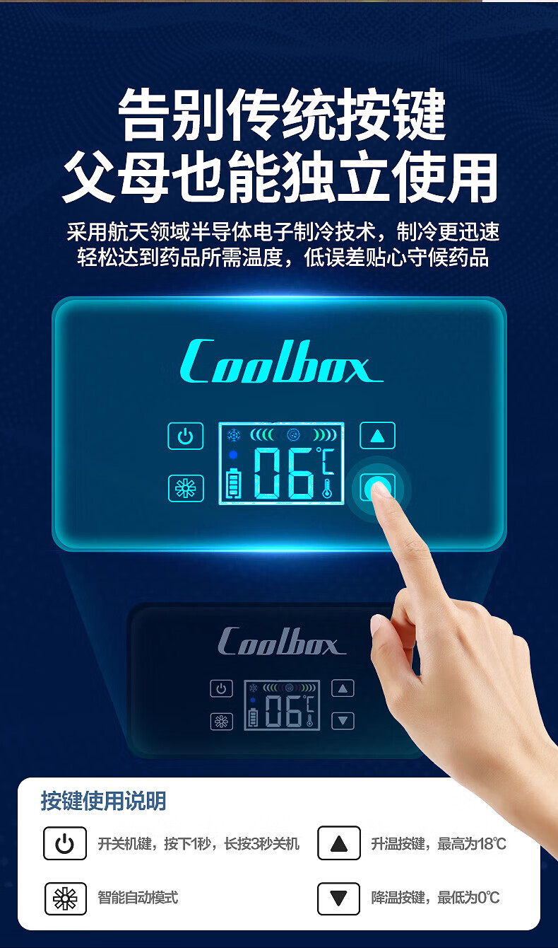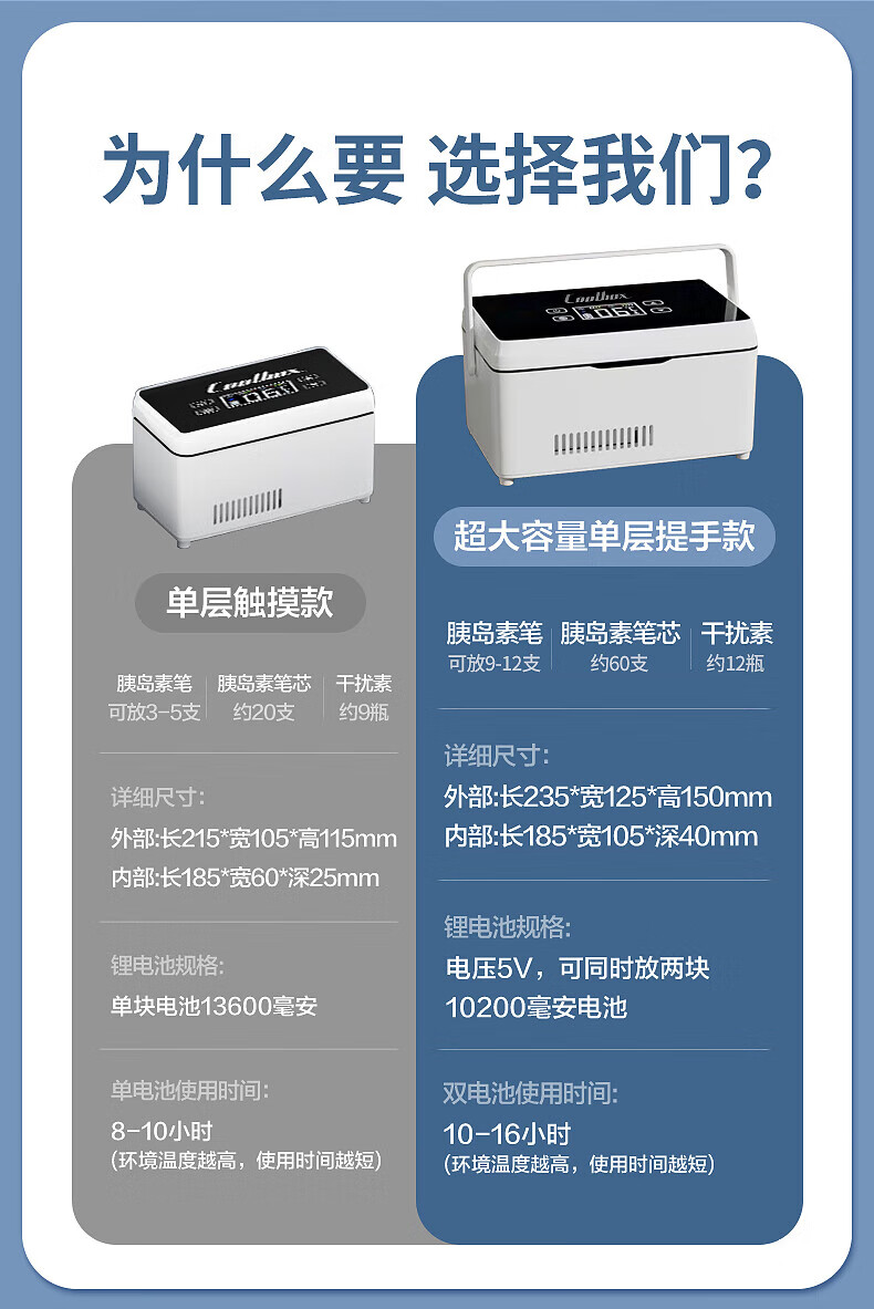 凯吉熊胰岛素冷藏盒便携式迷你小冰箱旅行充电式车载保鲜药品疫苗恒温箱 大盒提手单电池8小 车家两用 2L