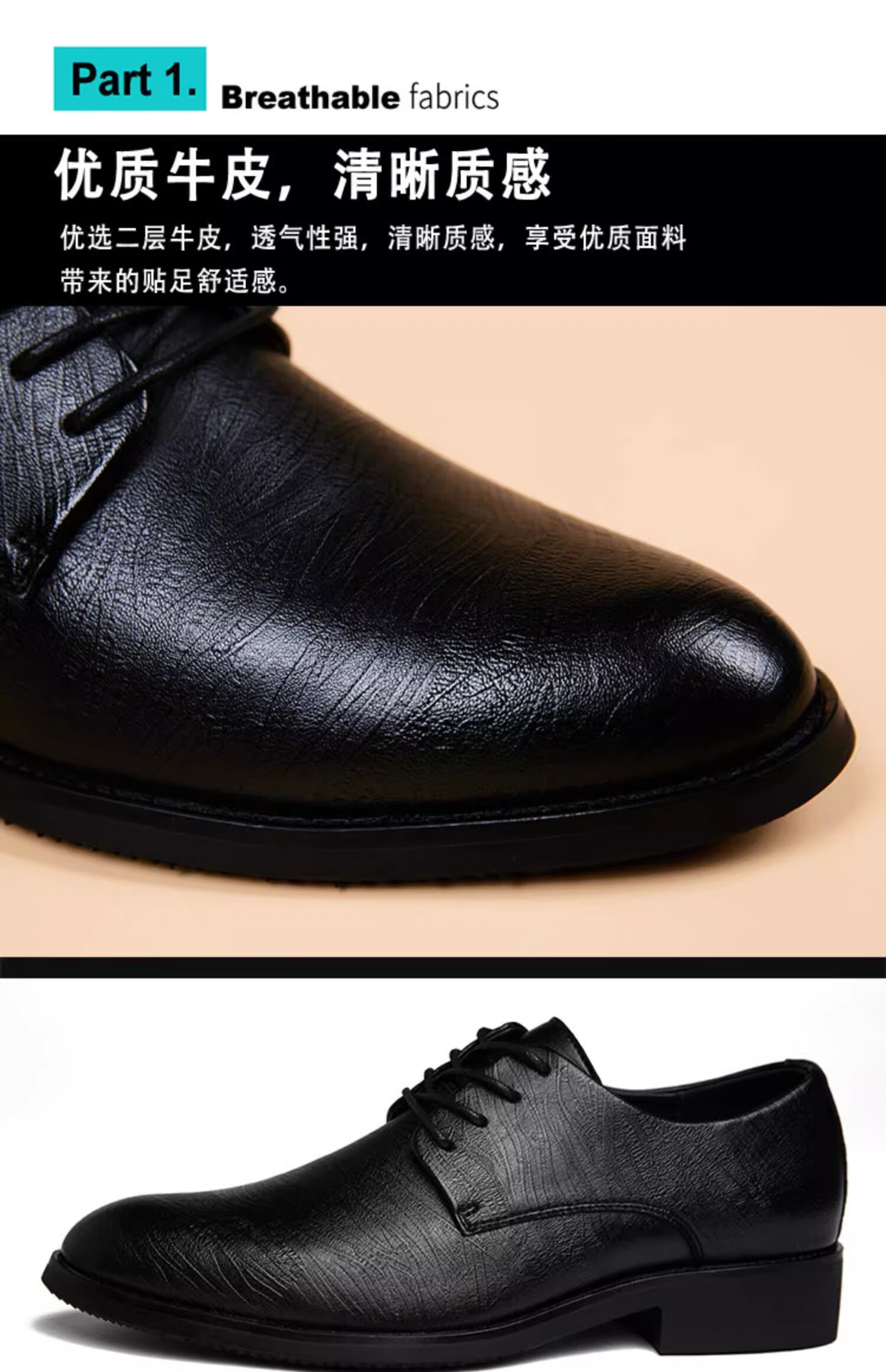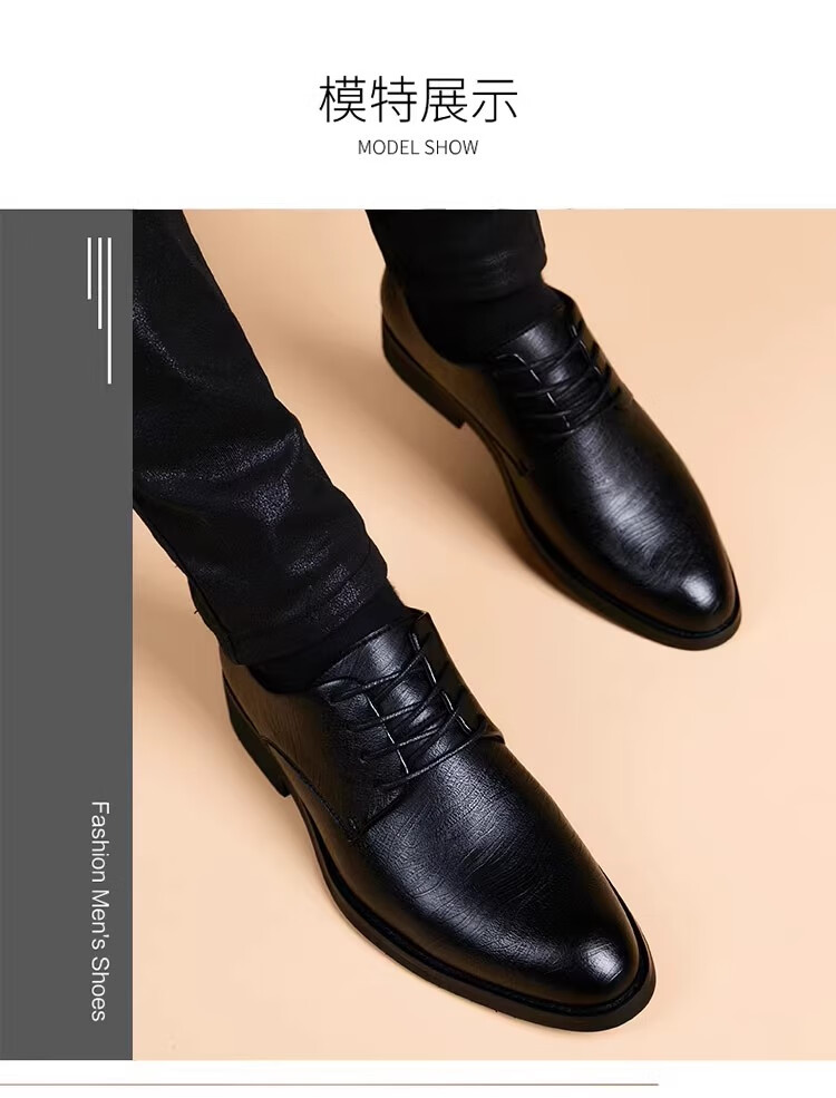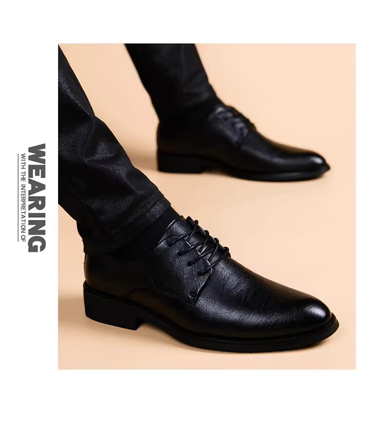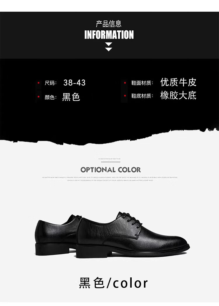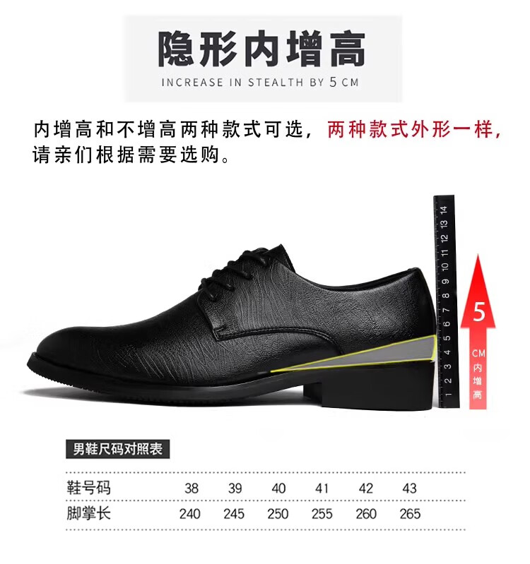 Walker Shop轻奢皮鞋男款尖头系带中年商务正装男鞋休闲内增高软底皮鞋透气 黑色内增高【品牌男鞋 礼盒包装】 39