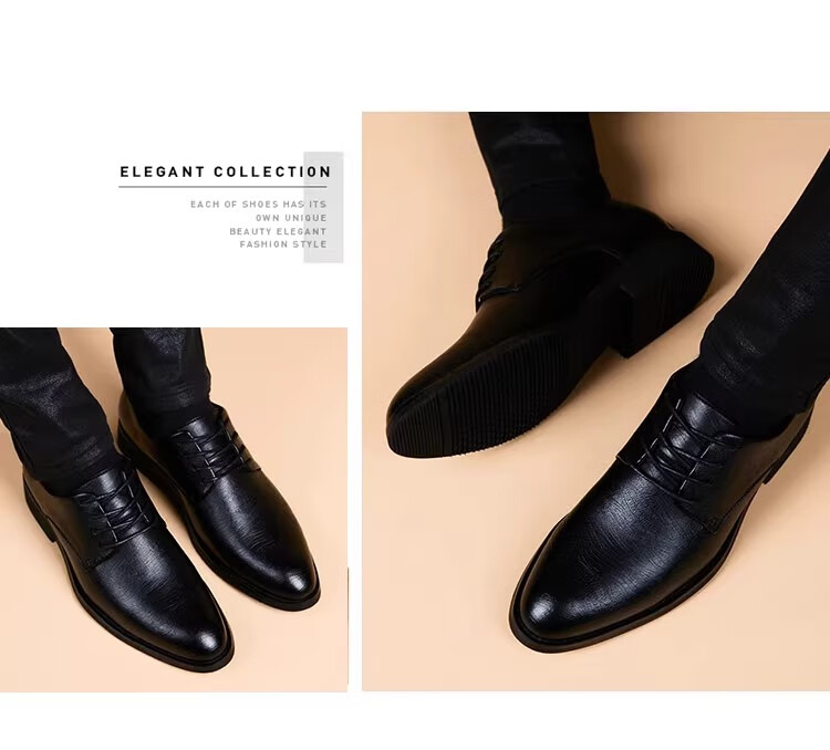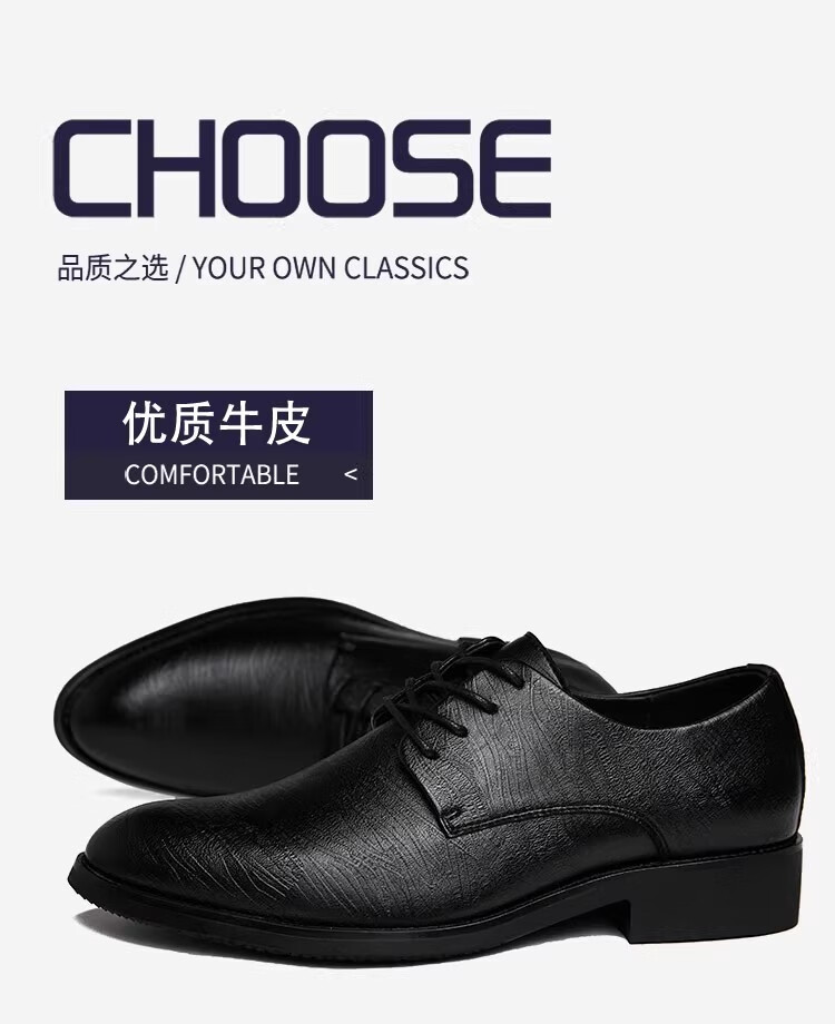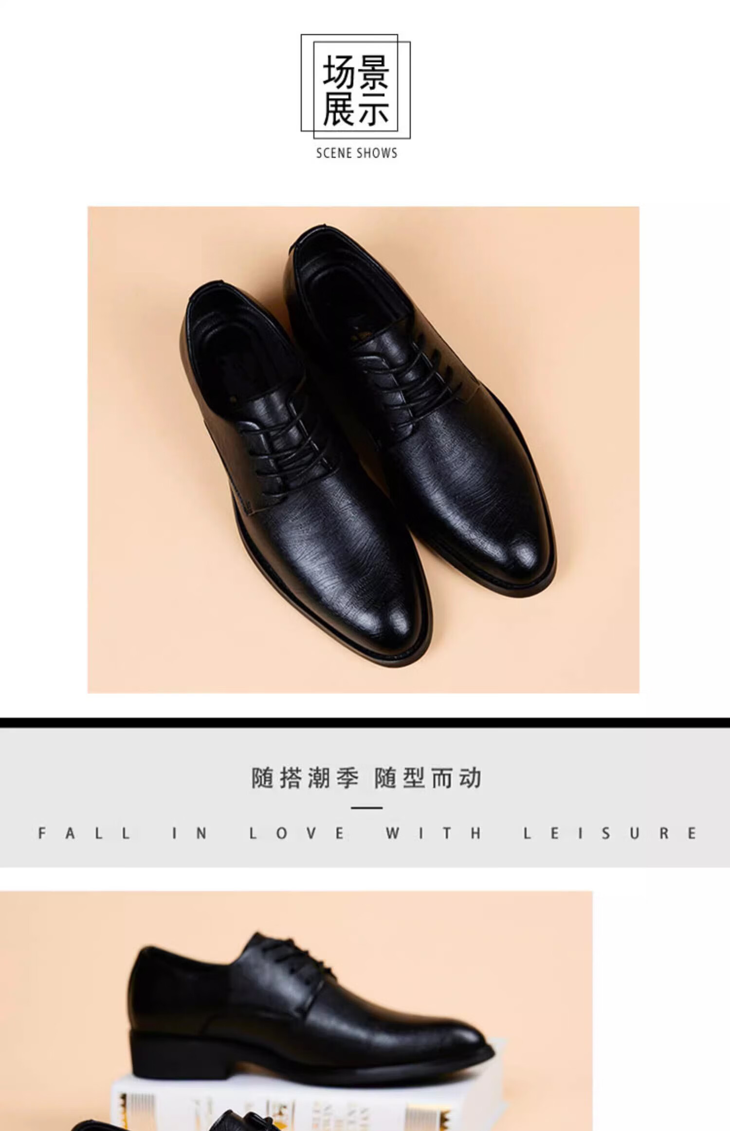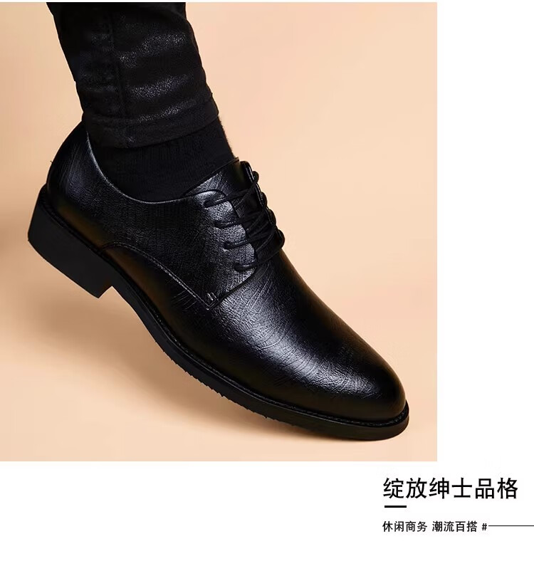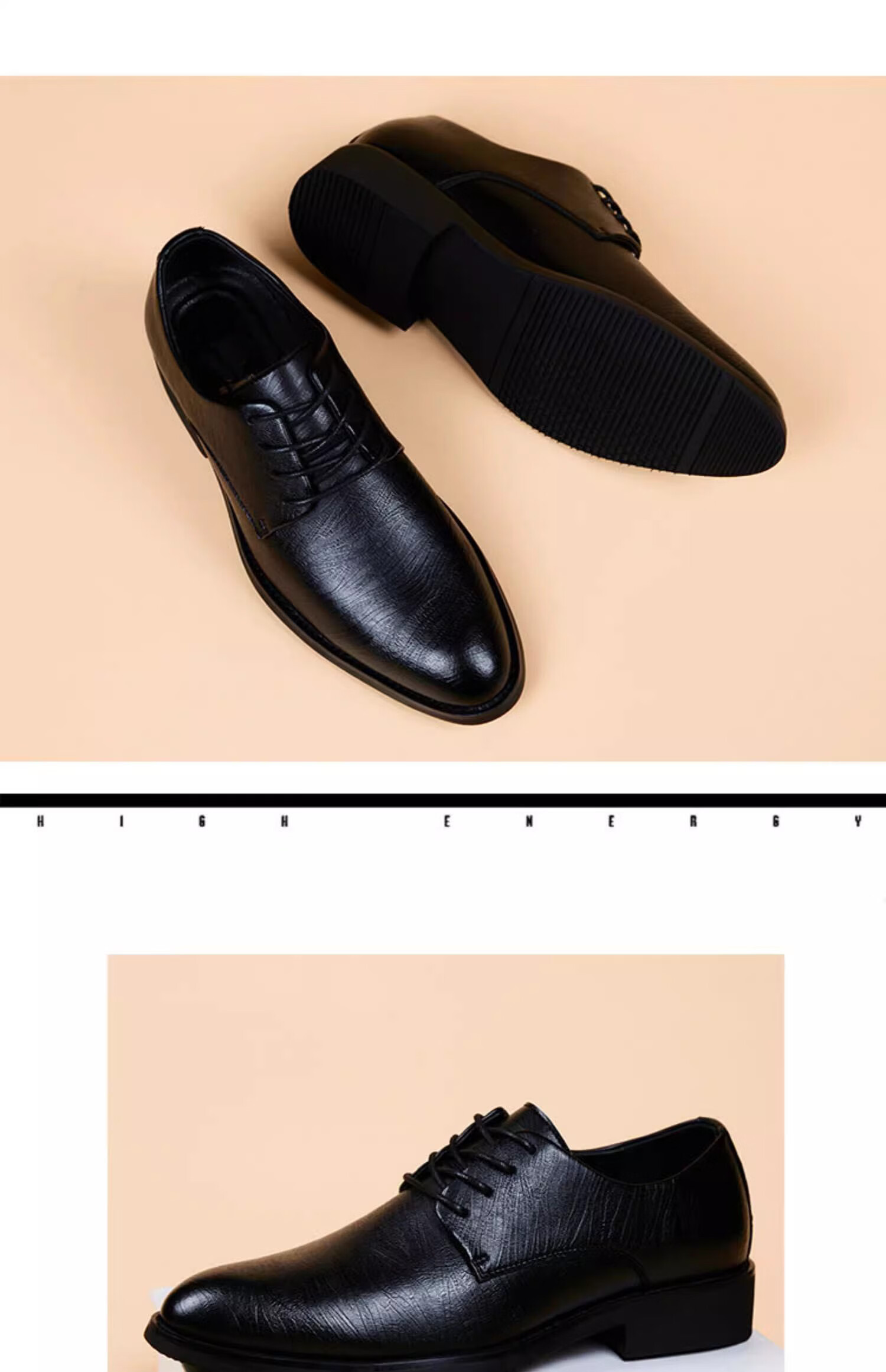 Walker Shop轻奢皮鞋男款尖头系带中年商务正装男鞋休闲内增高软底皮鞋透气 黑色内增高【品牌男鞋 礼盒包装】 39
