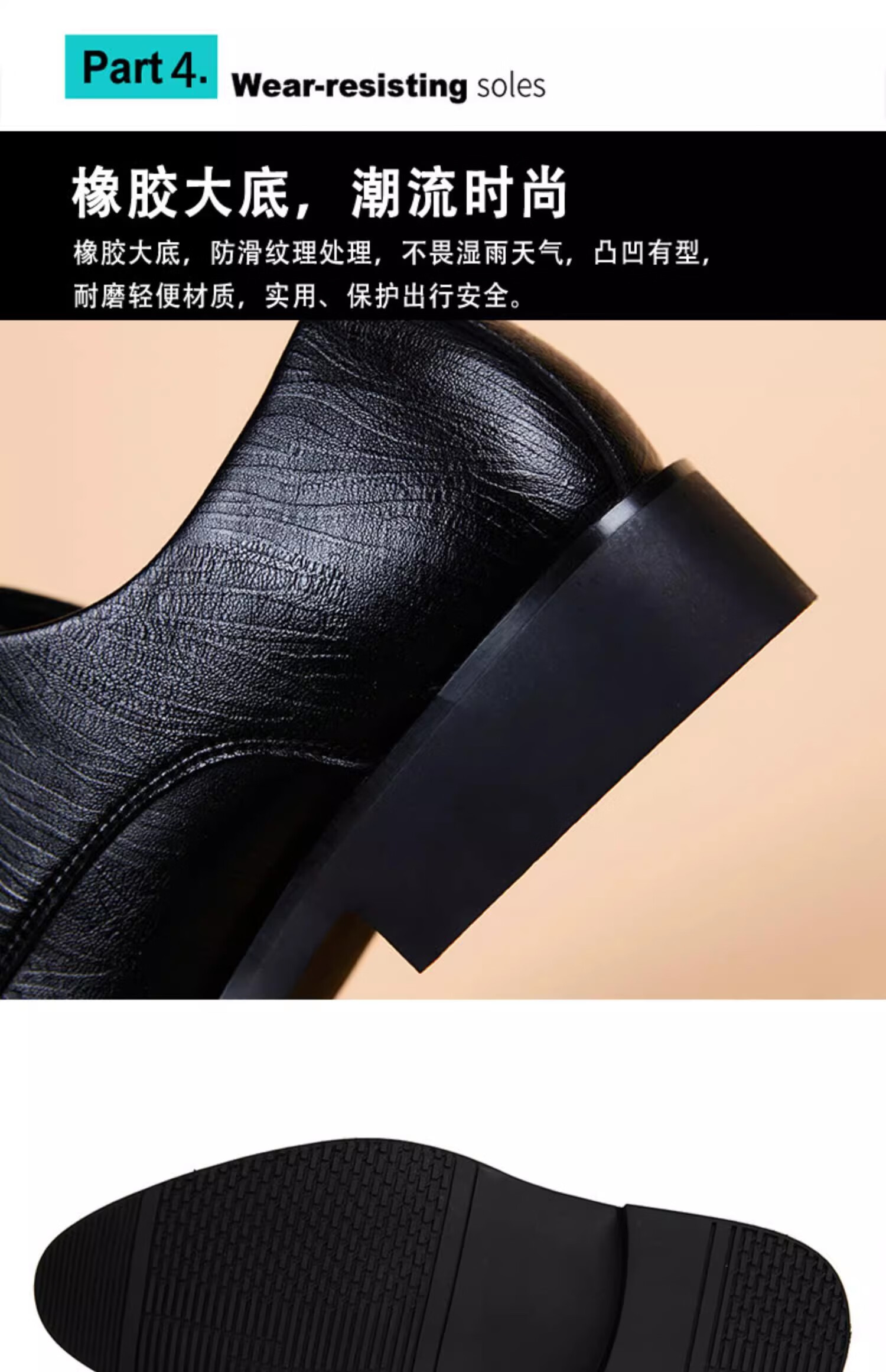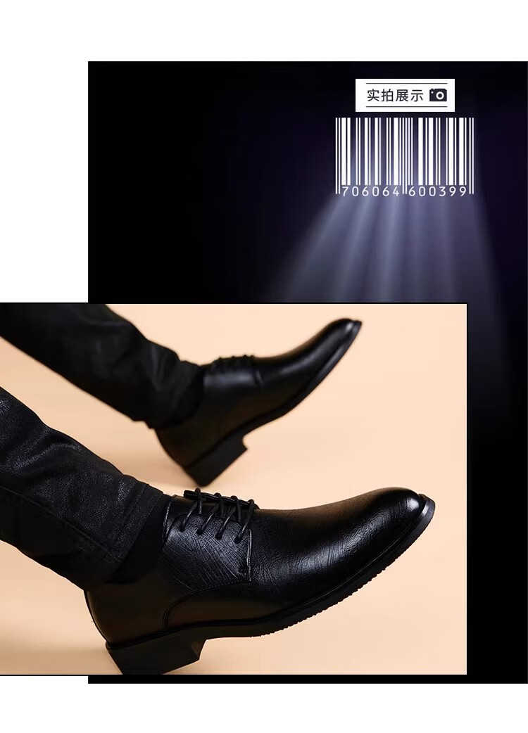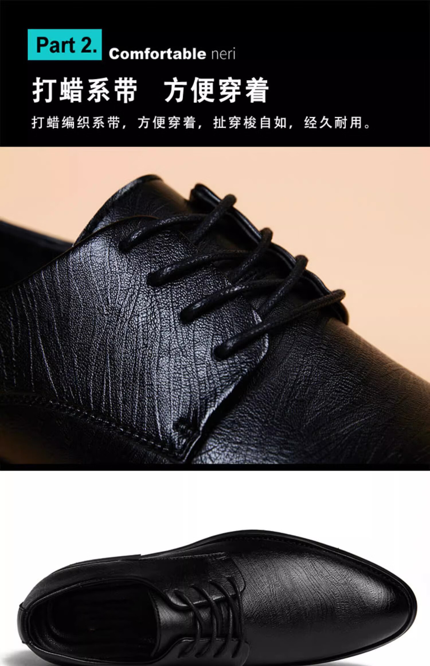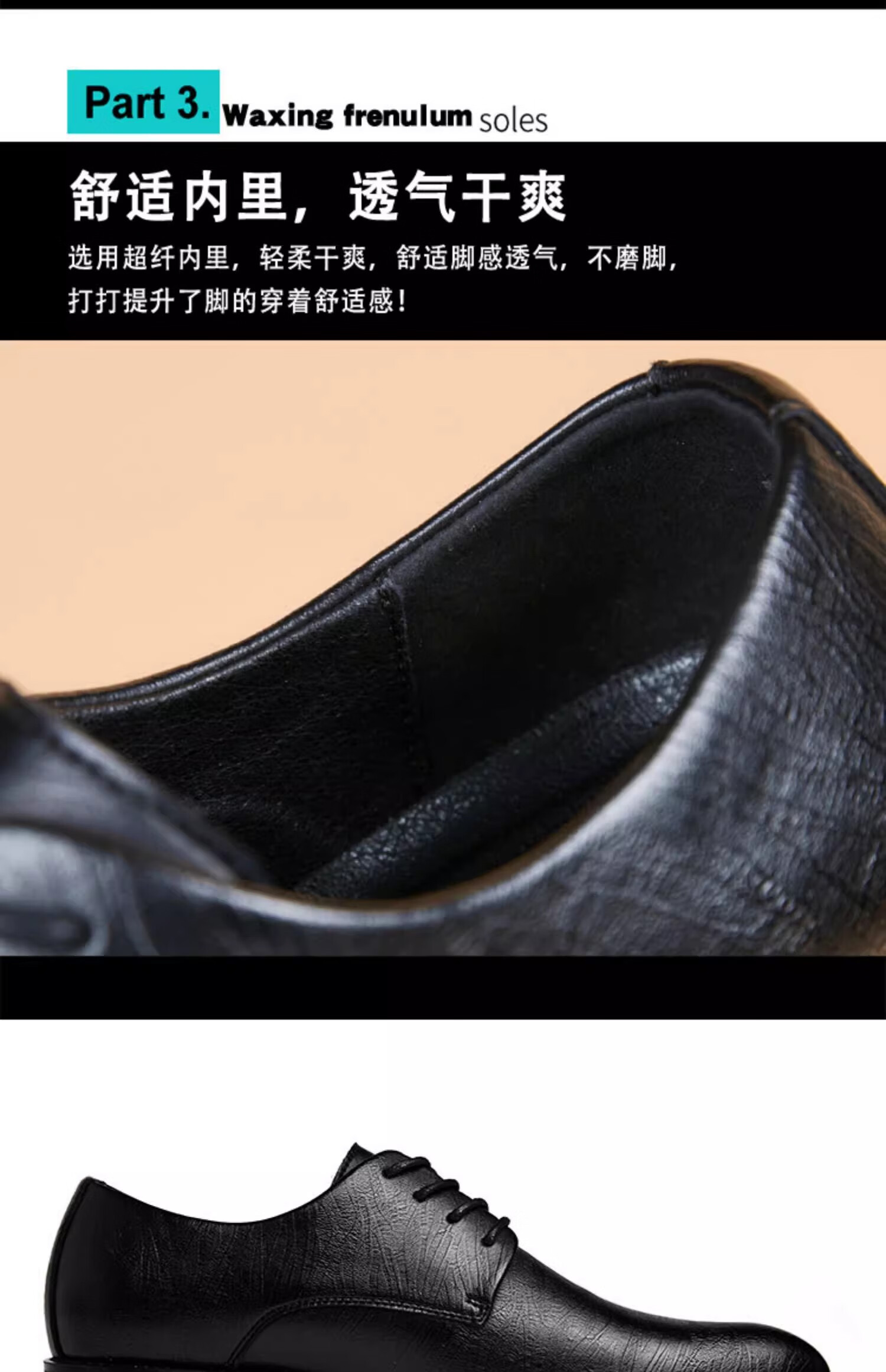 Walker Shop轻奢皮鞋男款尖头系带中年商务正装男鞋休闲内增高软底皮鞋透气 黑色内增高【品牌男鞋 礼盒包装】 39