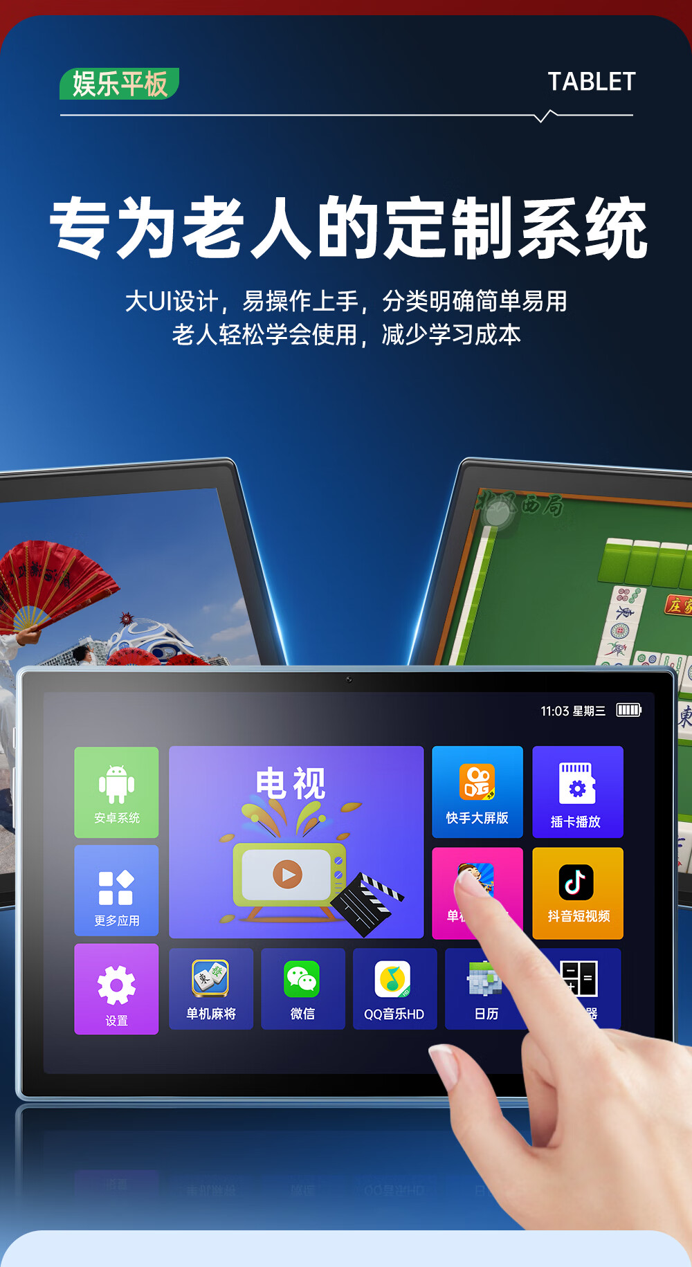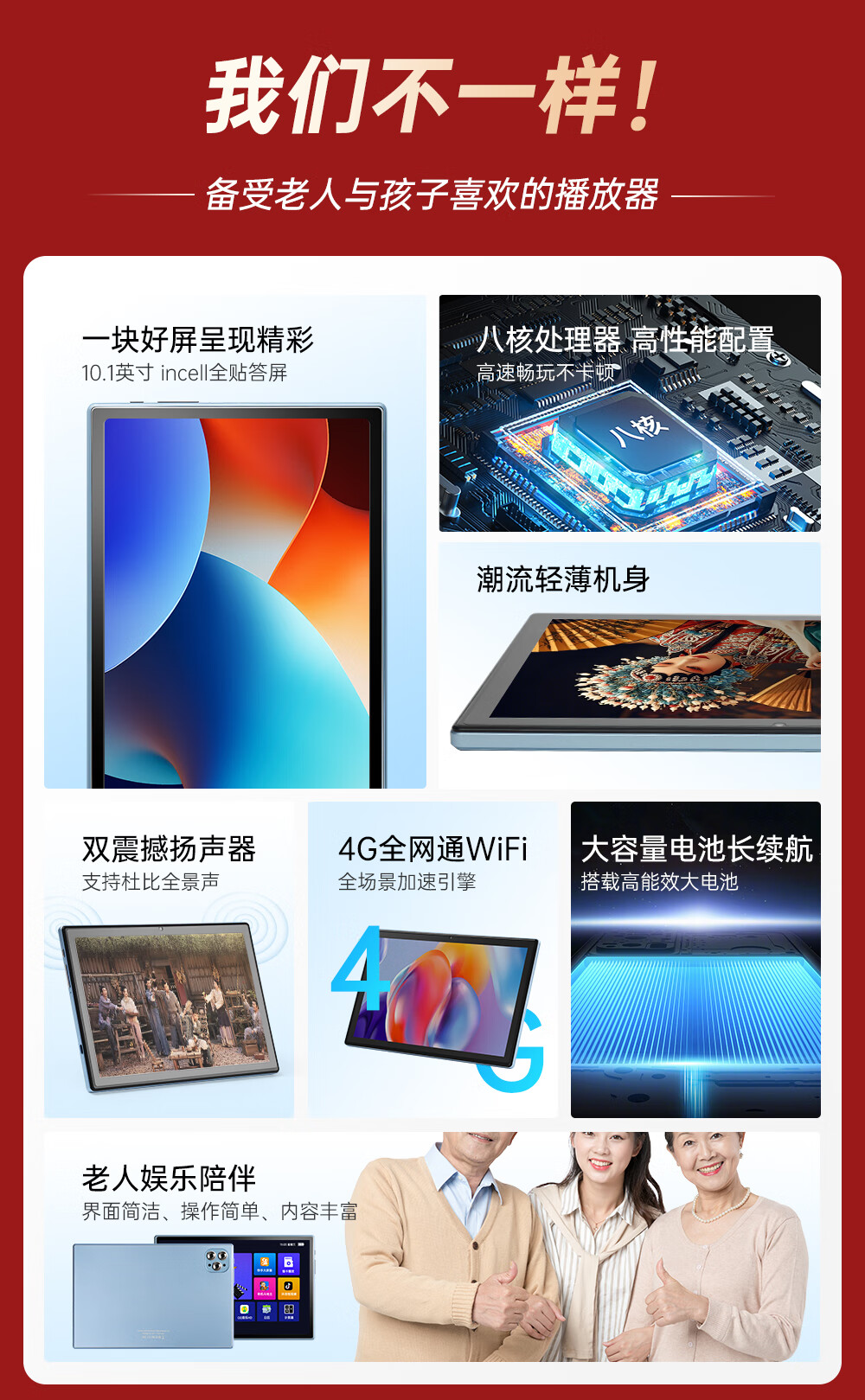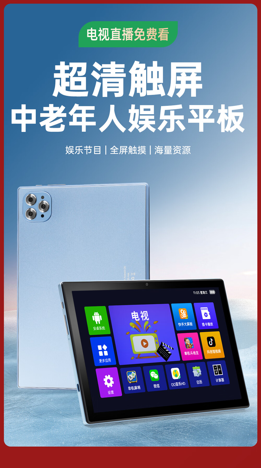 微舟网络WiFi小电视可插卡学习机平板播放器音响带屏幕触屏老人看戏机电影戏曲广场舞高清看戏机唱戏机 魅蓝高配WiFi+可插流量卡通话版+64U盘