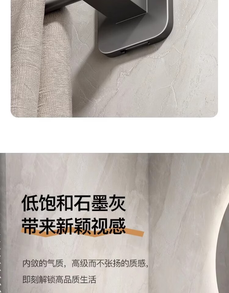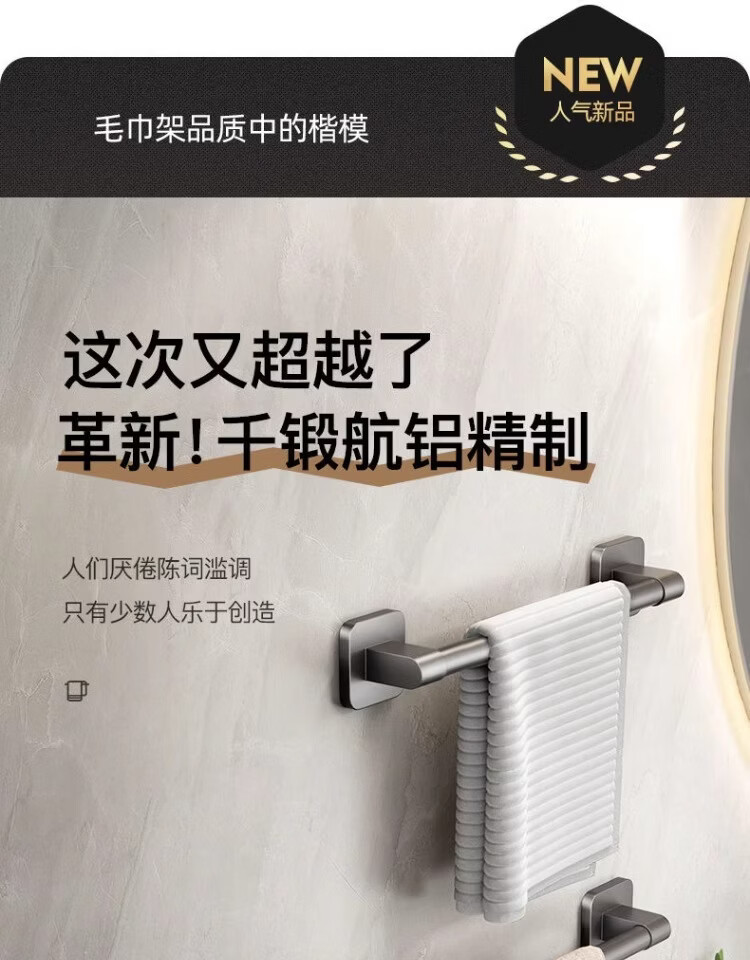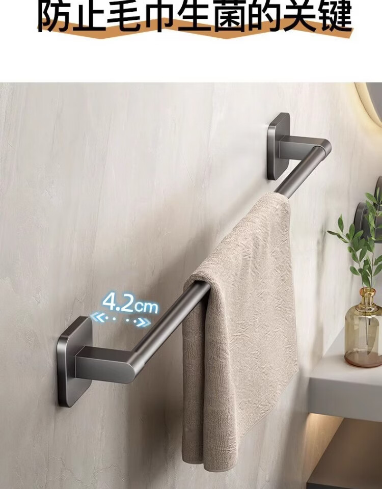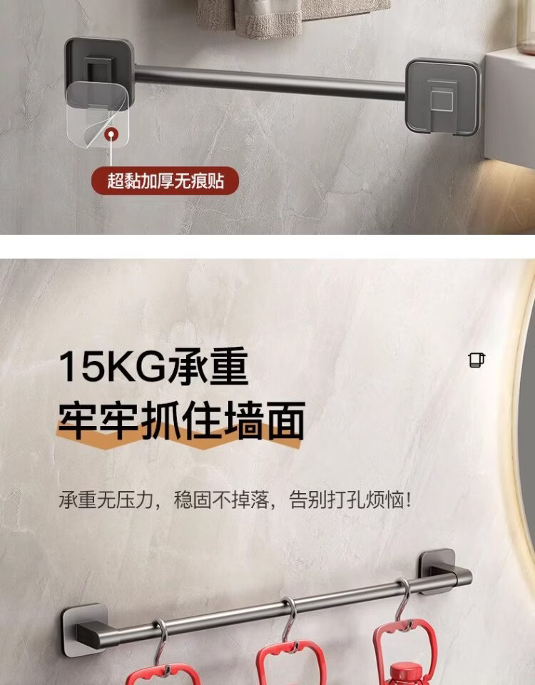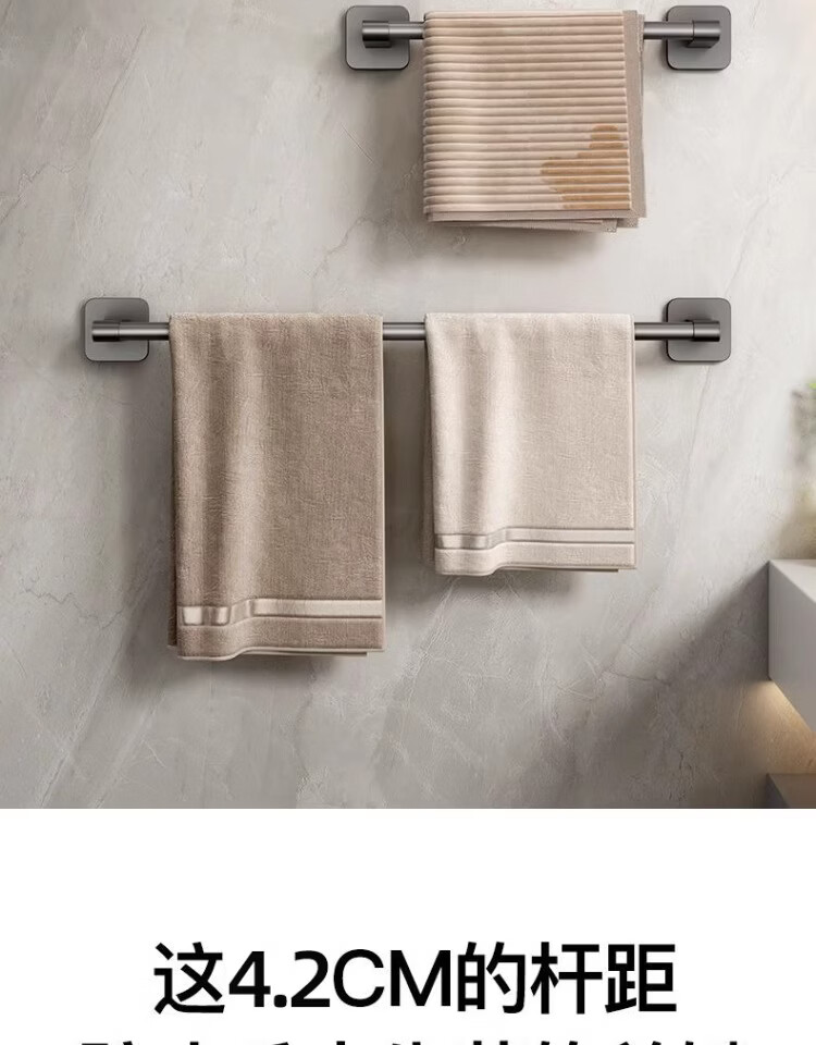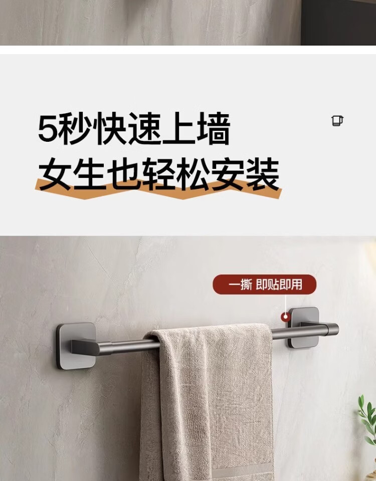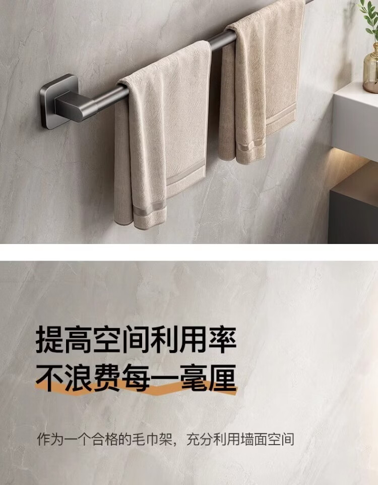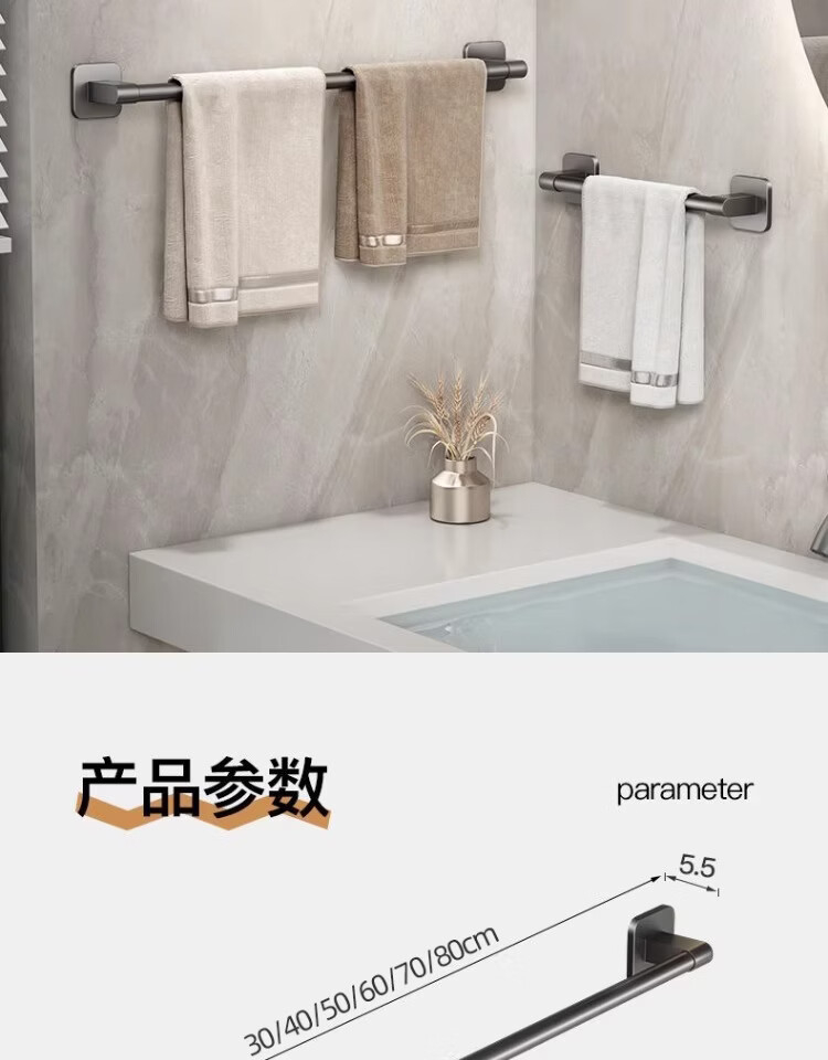 【工厂直发】厂家供应太空铝免打孔壁挂置物架浴室毛巾架单杆洗手 30cm 太空铝-幻夜黑-单杆【升级纳米无痕贴】