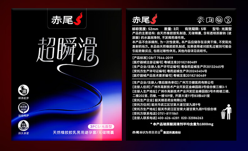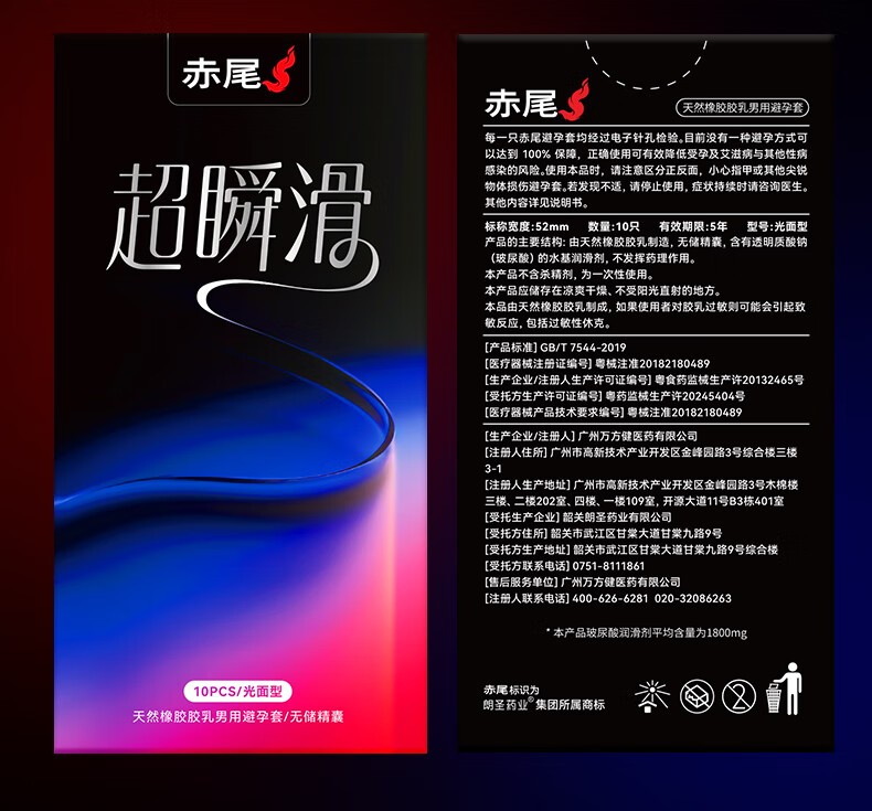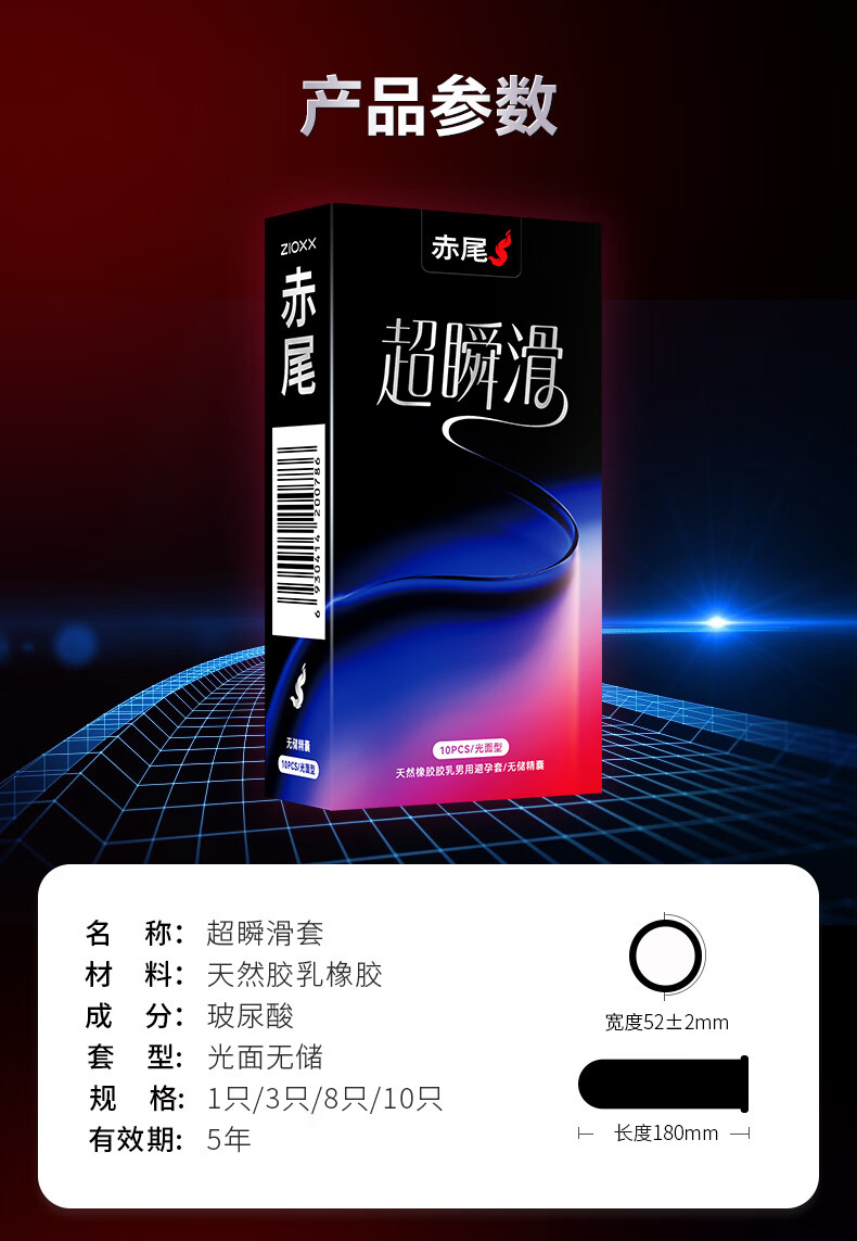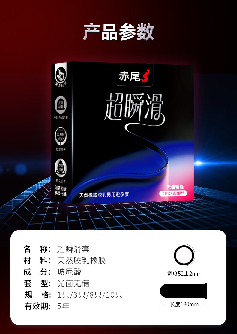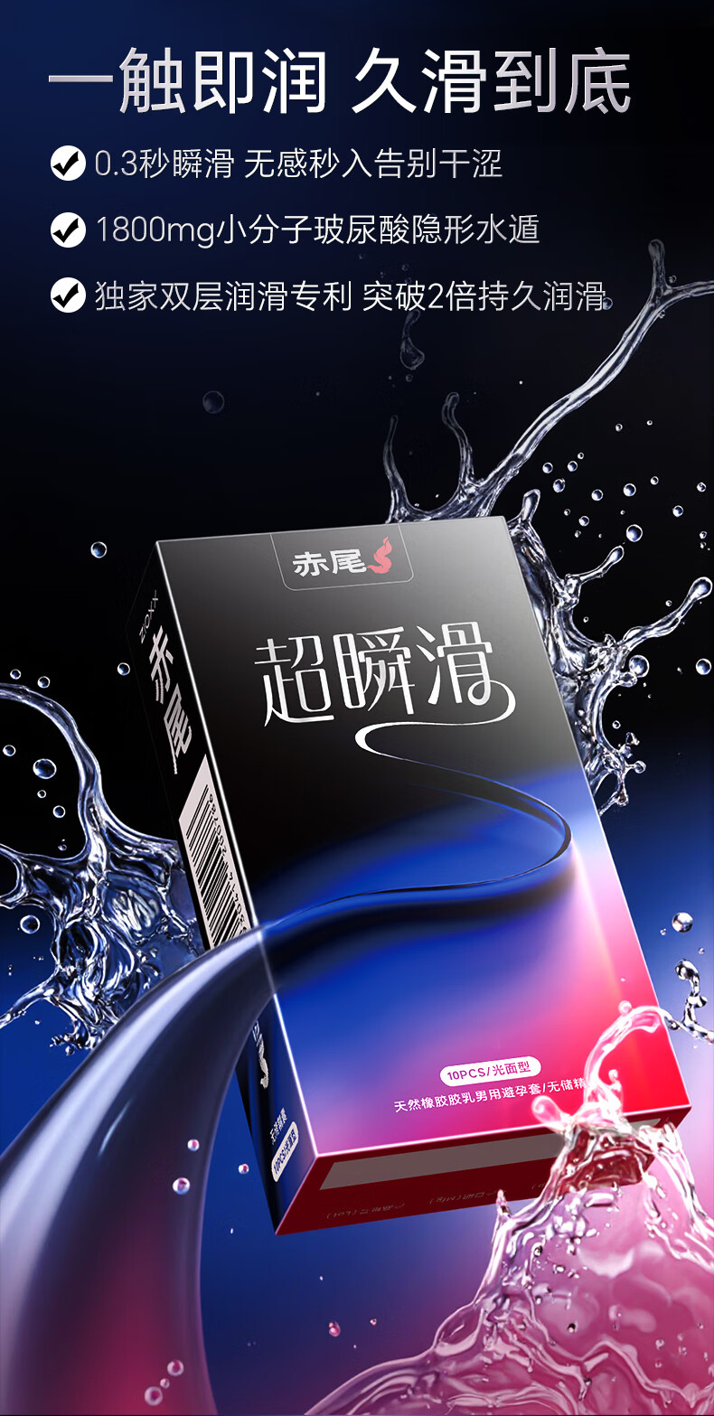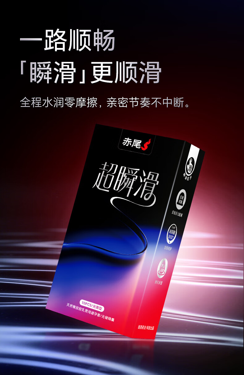 赤尾官方正品 超瞬滑避孕套 超薄安全套 玻尿酸持久润滑 成人情趣用品 10只【超瞬滑】0.03mm(无储)