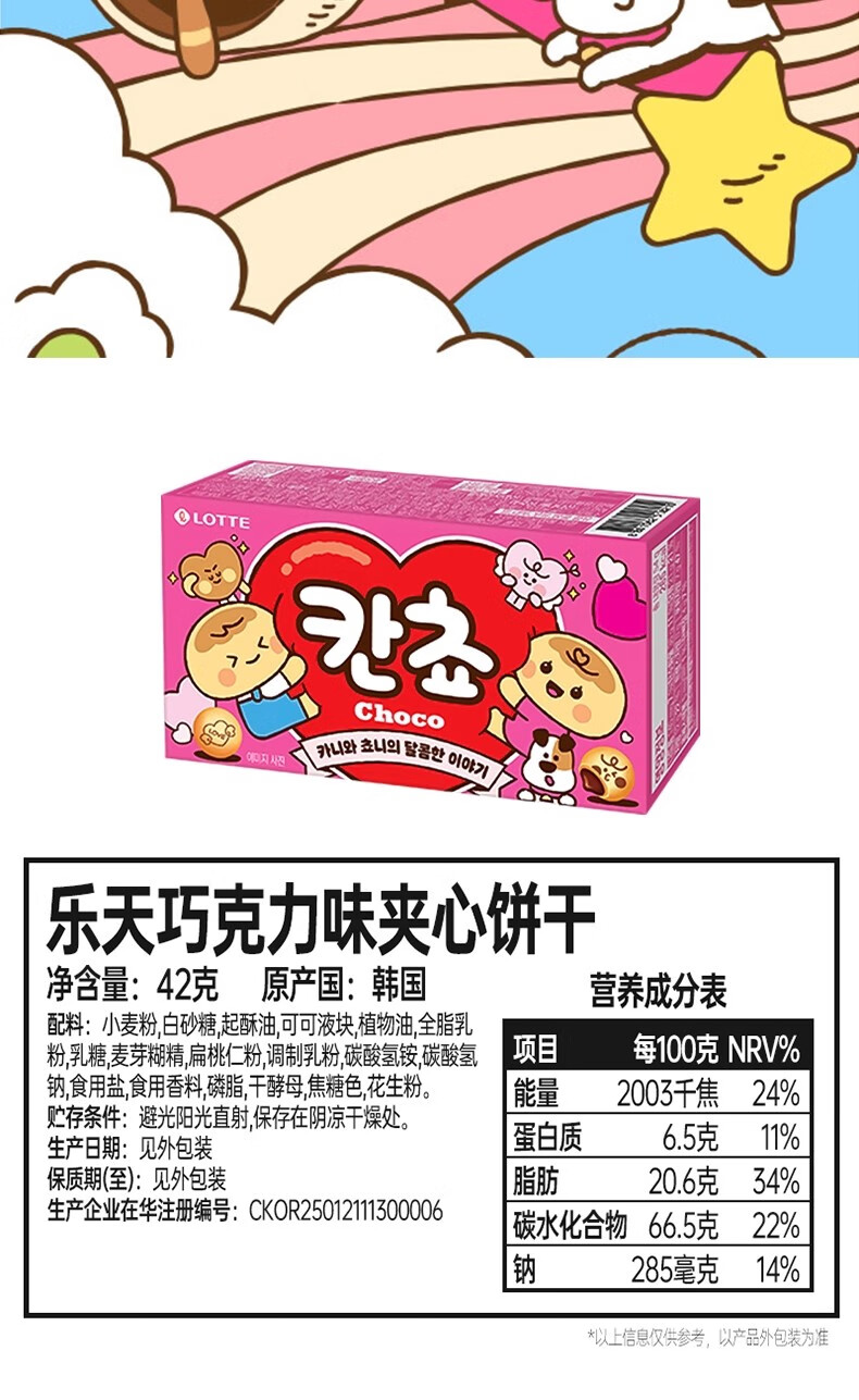 乐天 (LOTTE) 韩国进口乐天巧克力味夹心饼干儿童可爱小馒头解馋小零食饼干 巧克力味夹心饼干42g*4盒