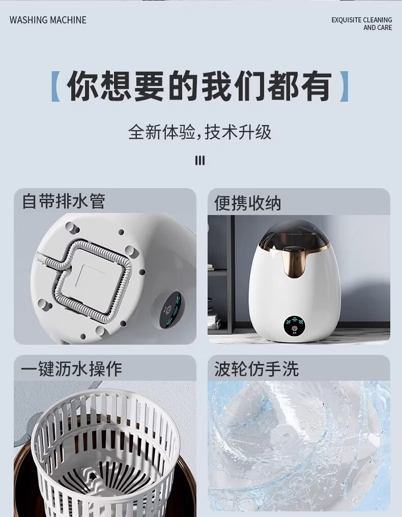 AILUKI【法国】迷你内衣裤洗衣机13L大容量半自动洗脱一体小型家用母婴洗内衣袜子卡通款宝宝衣物神器 旗舰云朵白+洗脱两用+双向涡轮+三档调节+仿手洗 送沥水篮