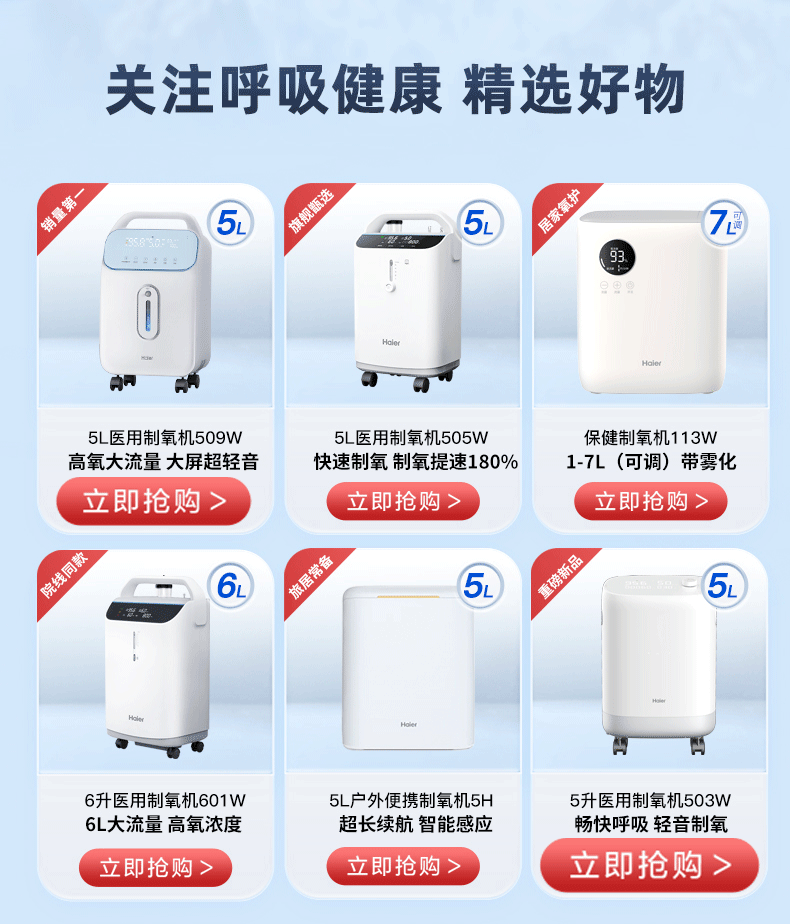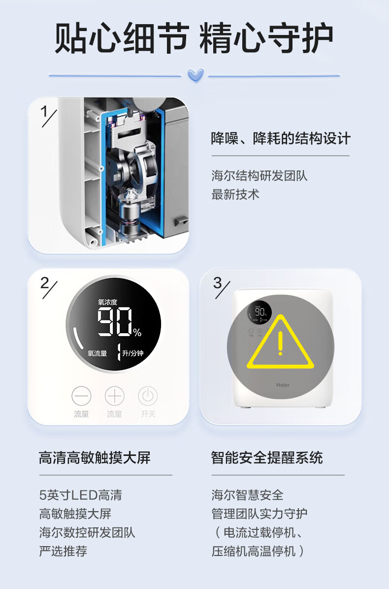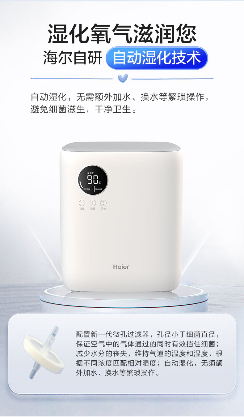 海尔家用制氧机家用老人便携式吸氧机带雾化一体机家庭保健机 113W制氧+雾化款【高效制氧+轻音】