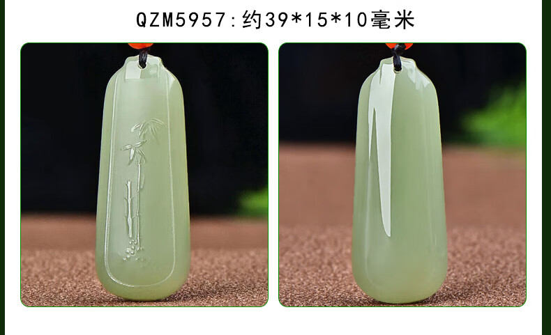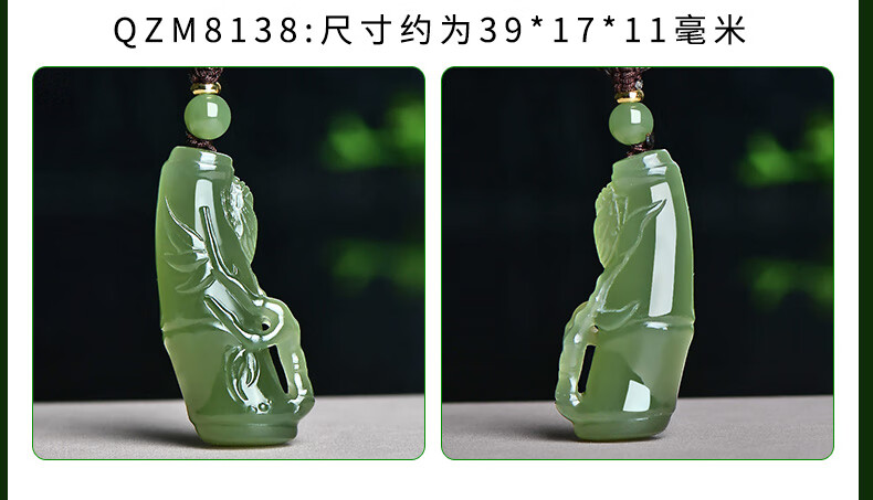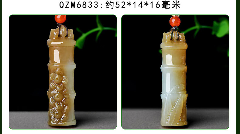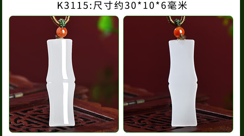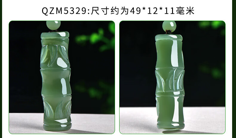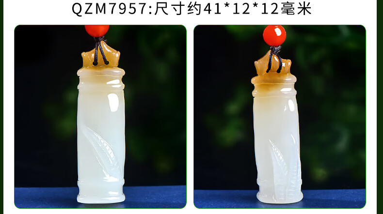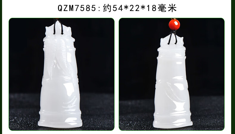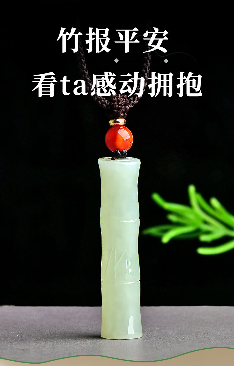 千载一玉和田玉玉石玉坠 和田玉竹节吊坠 竹竿挂件 实心竹子项链男女 【大号青白玉竹节】款一