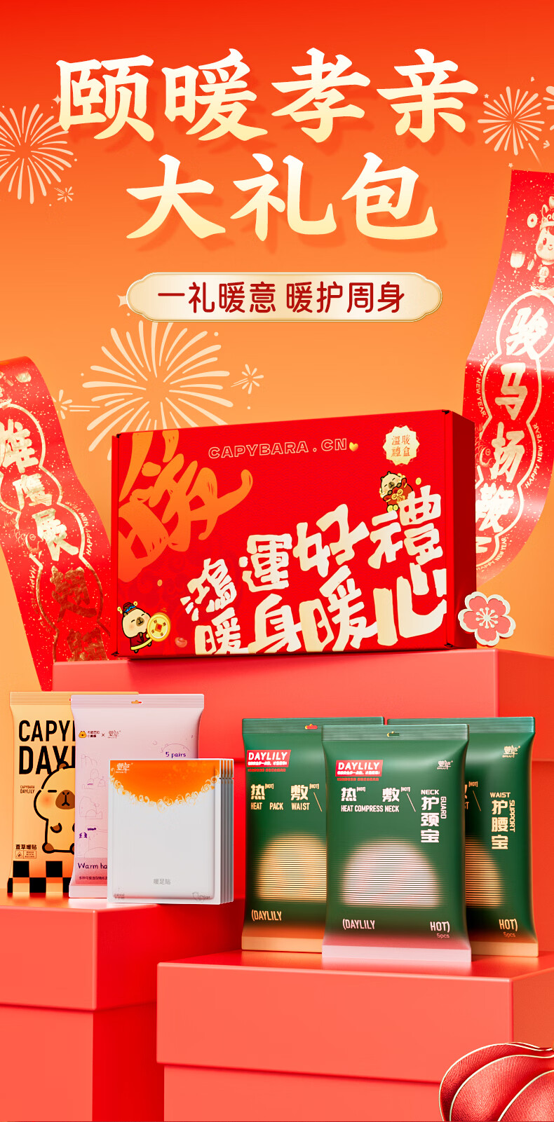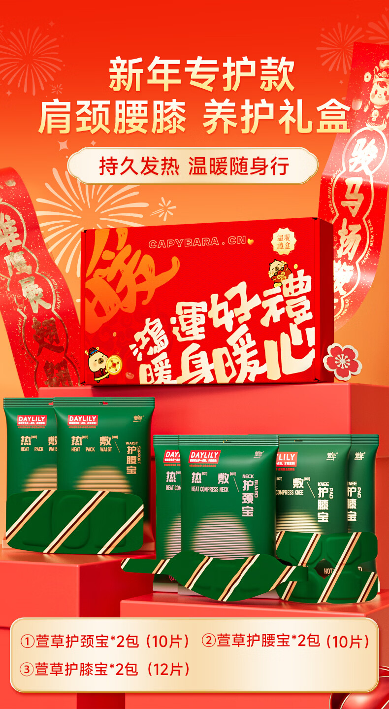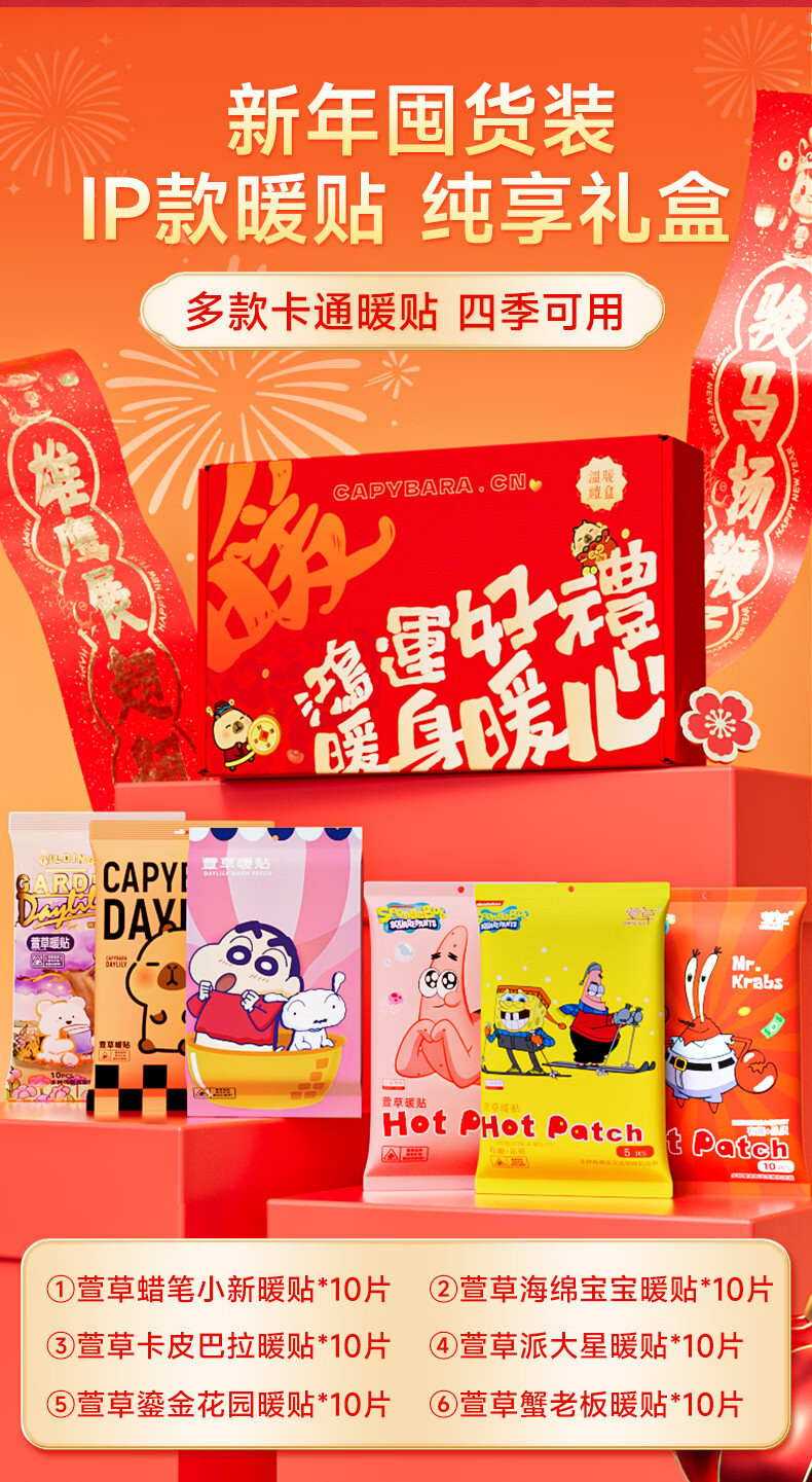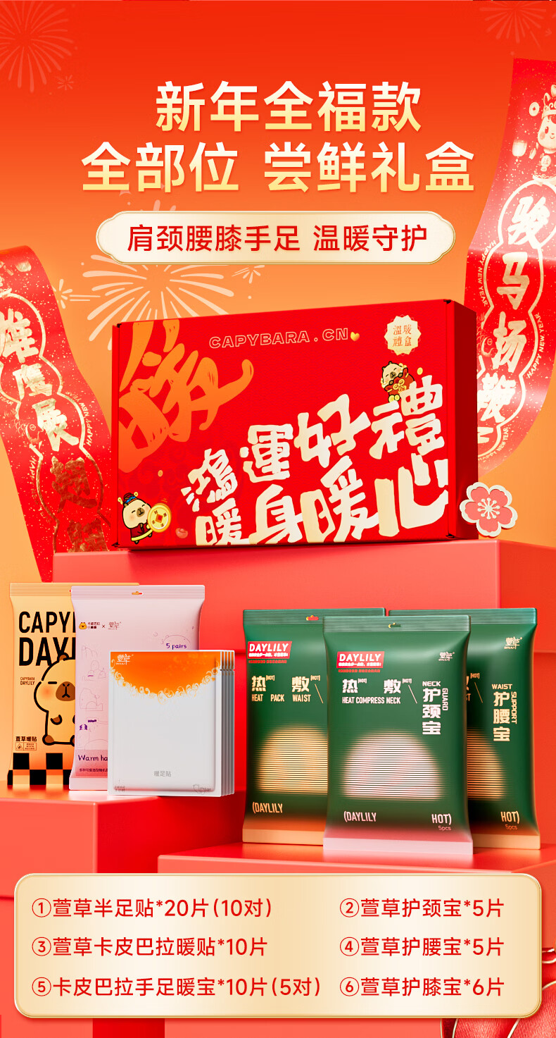 萱草卡皮巴拉联名 暖宝宝贴护腰贴暖足贴暖心大礼盒送礼自发热贴 卡皮巴拉暖心大礼盒--到手56片