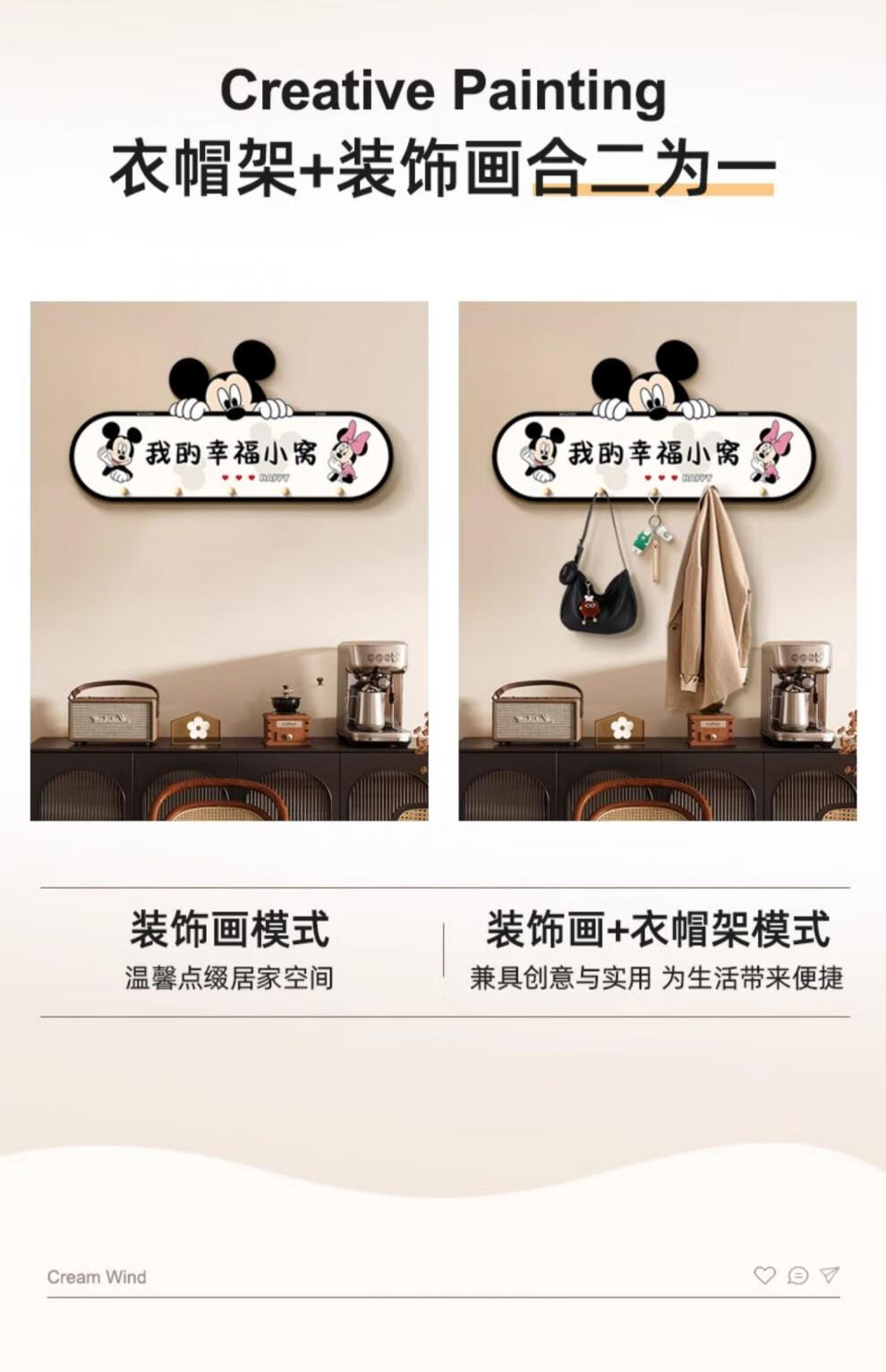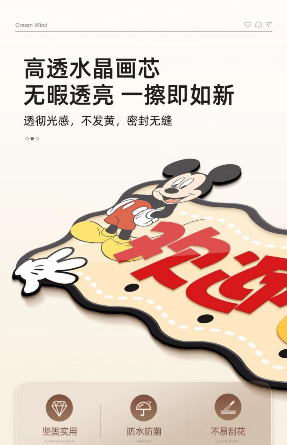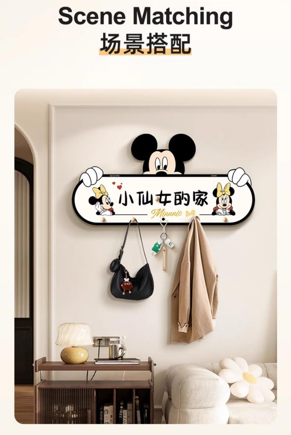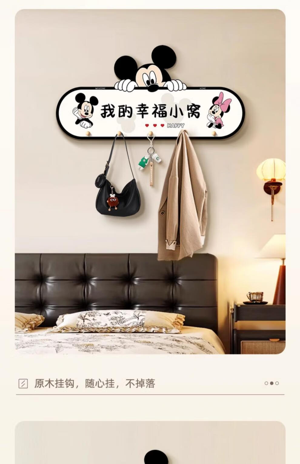立始卡通米奇挂衣钩置物架衣服包进门玄关入户收纳挂钩门后免打孔钥匙 欢迎回家 创意造型画 60*30 水晶画面