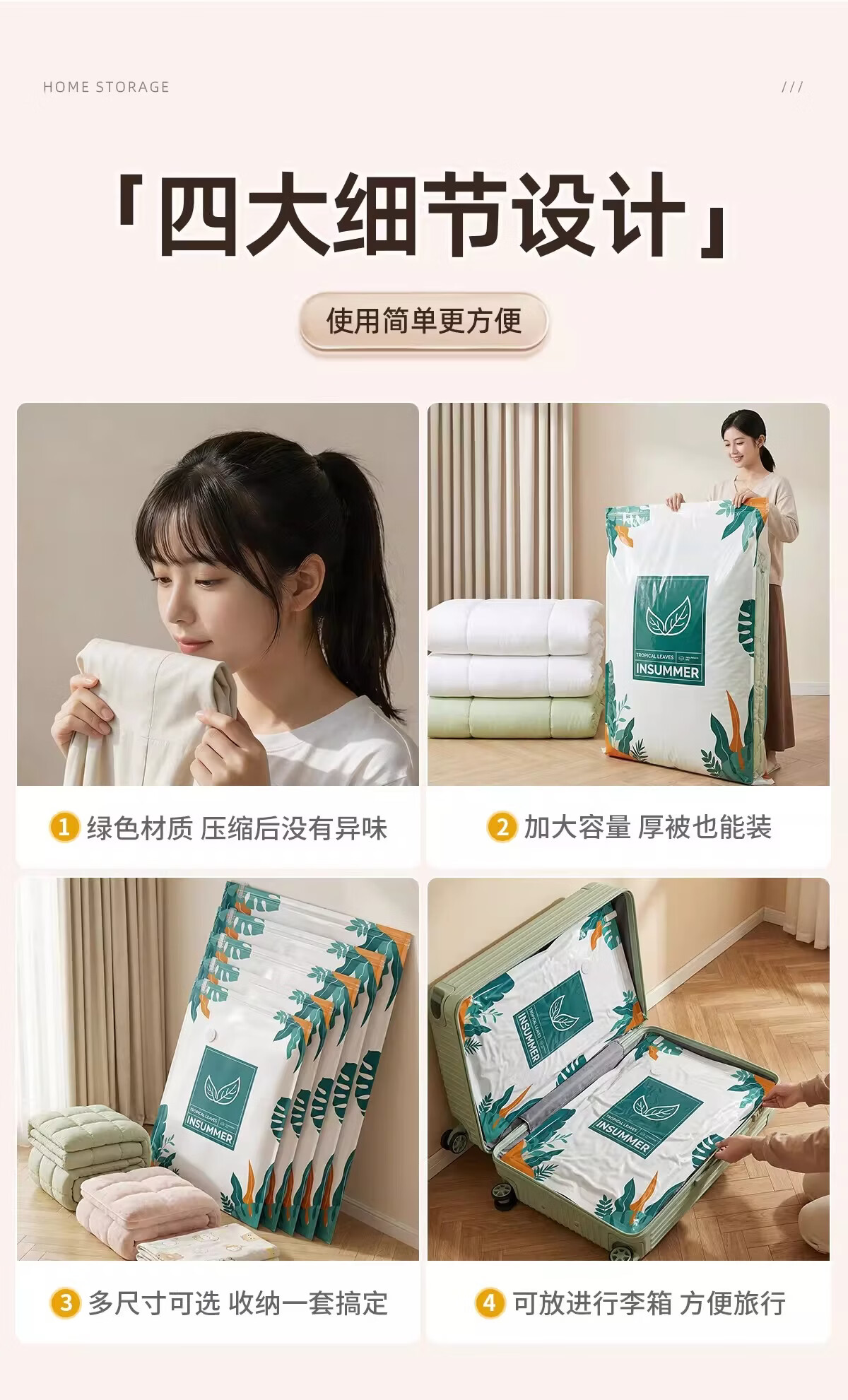 艾仕可(ASCOR)抽气真空压缩袋家用衣服棉被专用收纳袋行李箱被子羽绒服整理袋子 4件套【中号*3】送电泵