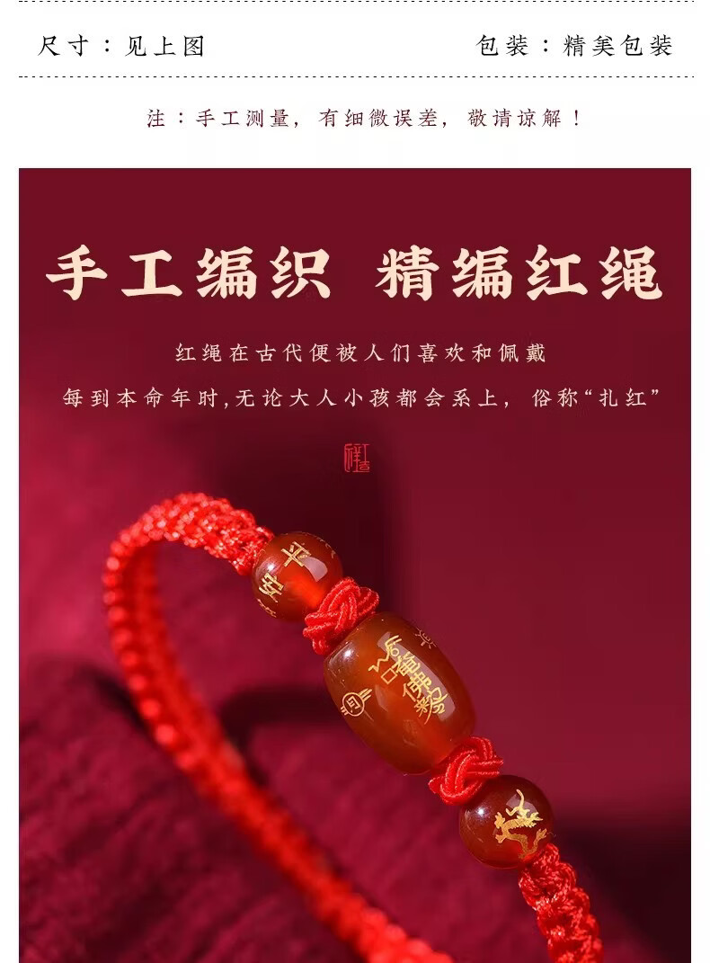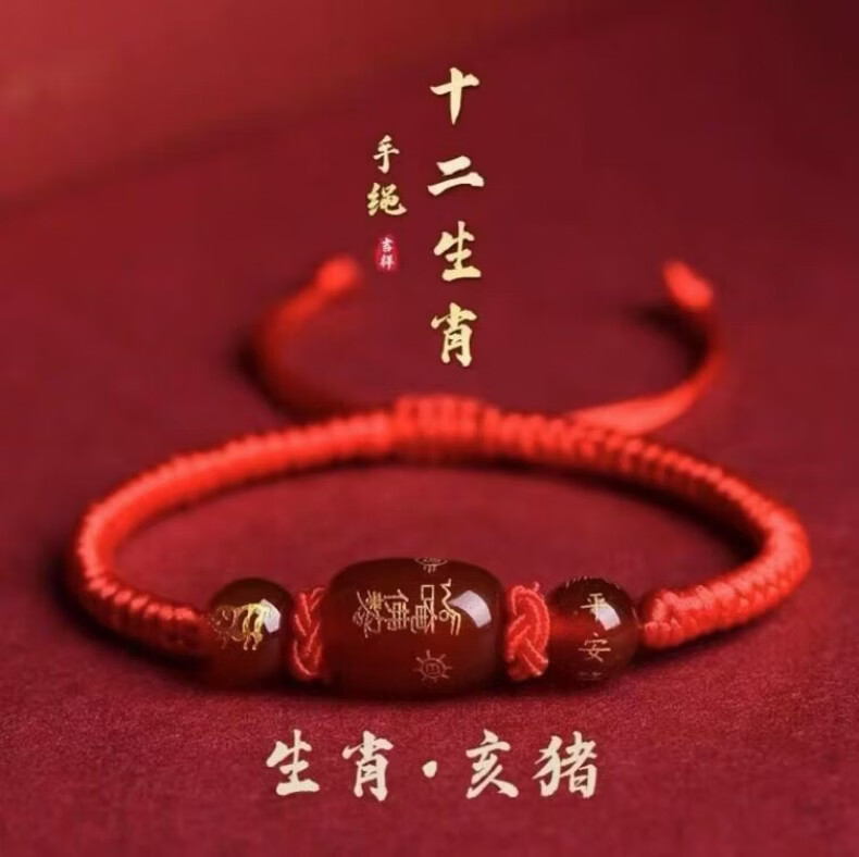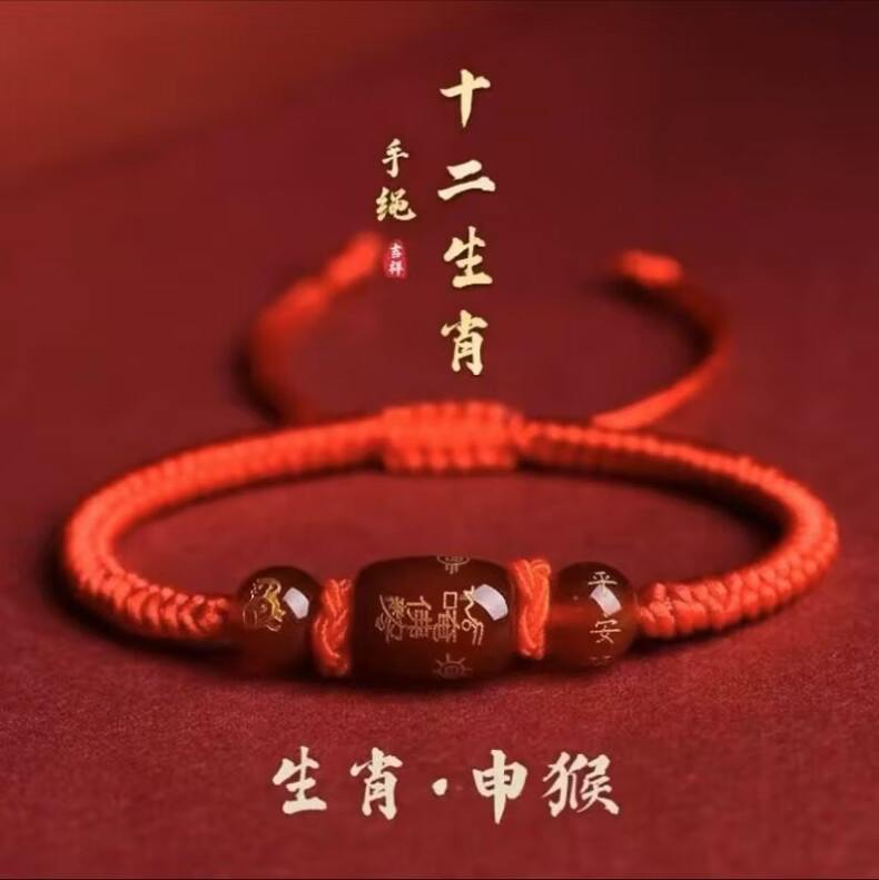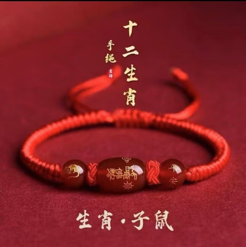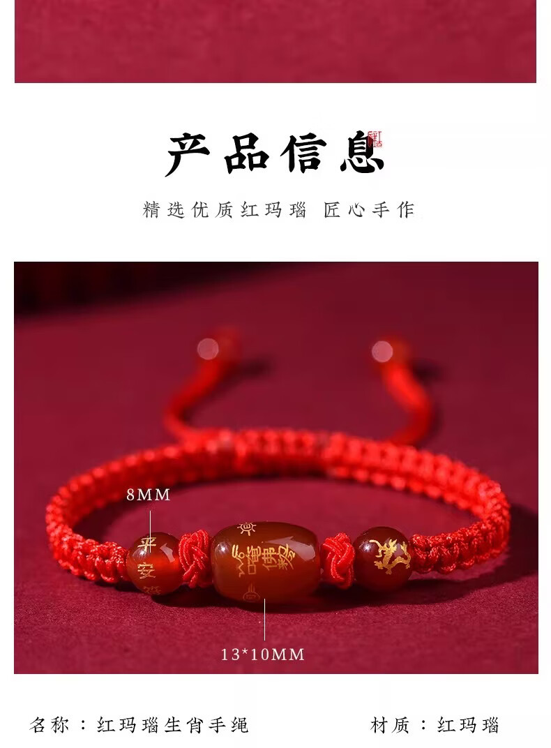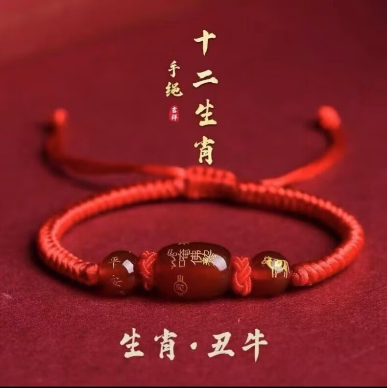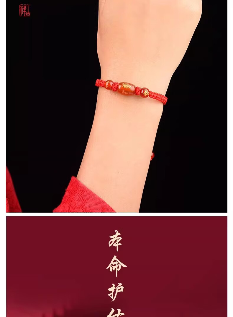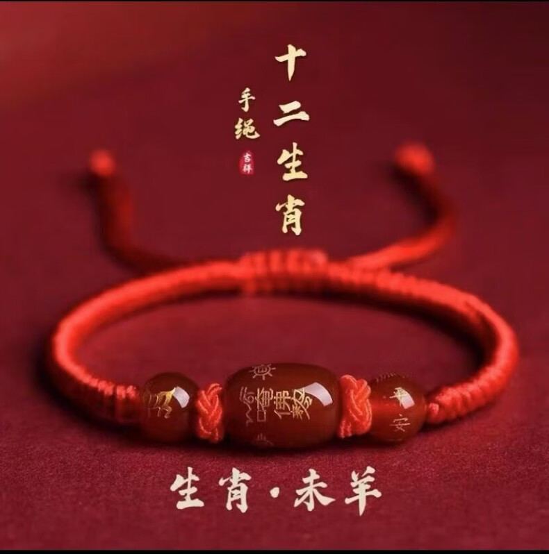 OYKTN福光普照本命年红绳太岁手工手链礼盒装吉祥物生肖手链驱凶避邪 金刚结桶珠红绳---生肖羊--悬浮盒包装