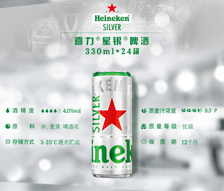 喜力星银330ml*24听整箱装 喜力啤酒Heineken Silver 婚礼用酒