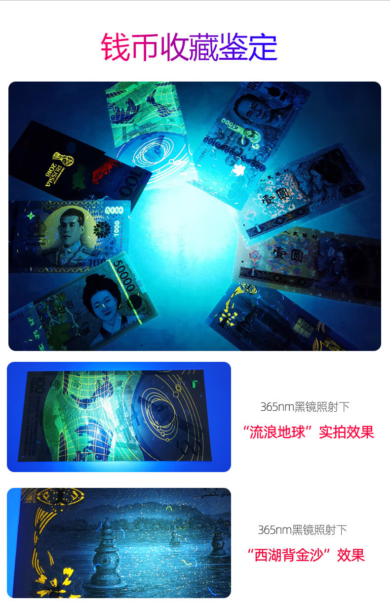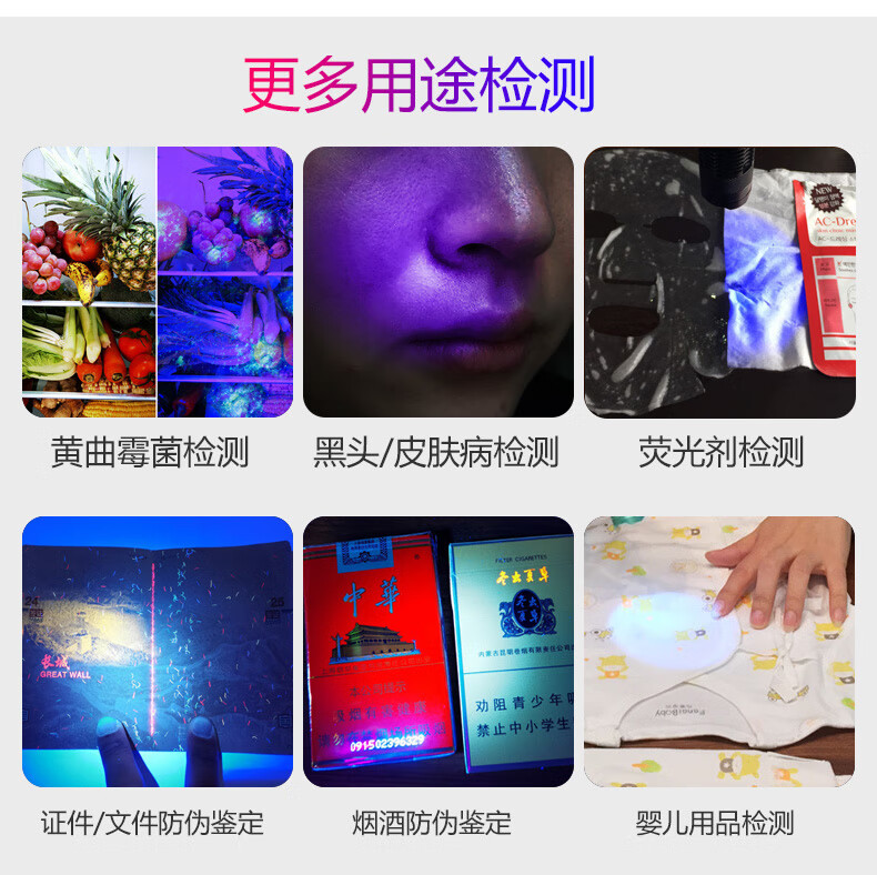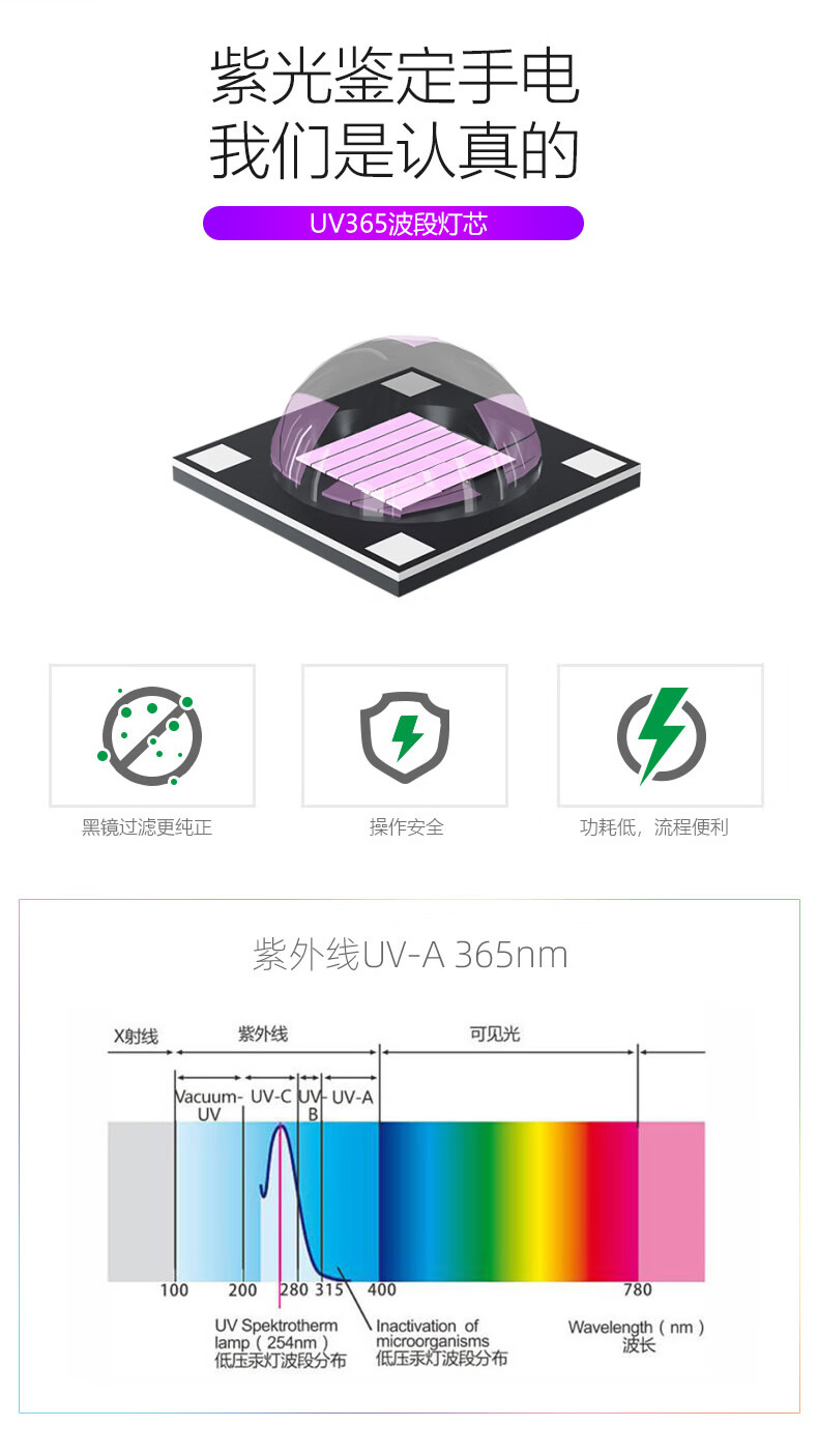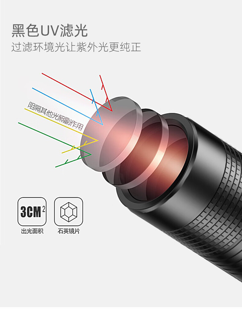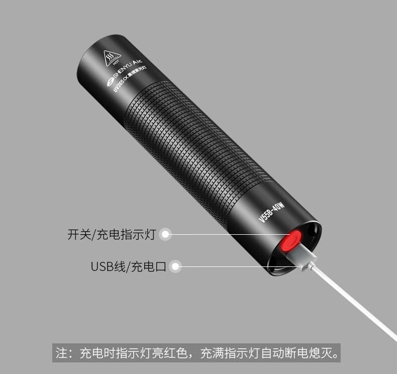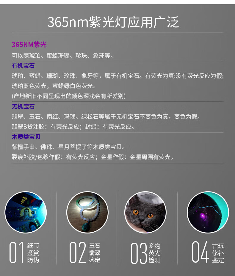 SHENYU紫光灯鉴定用烟酒验钞灯365NM鉴别翡翠照玉石手电筒强光紫外线 黑镜过滤-纯正紫光365NM