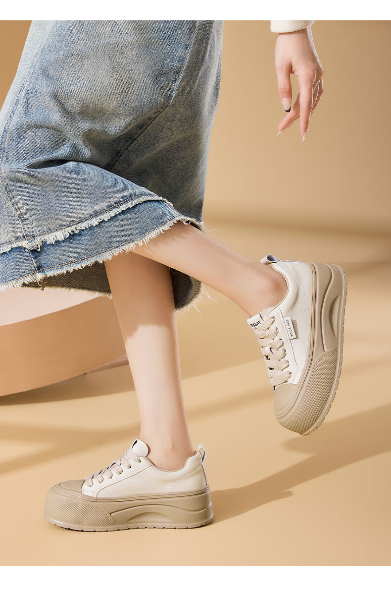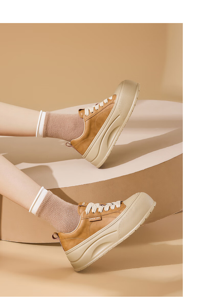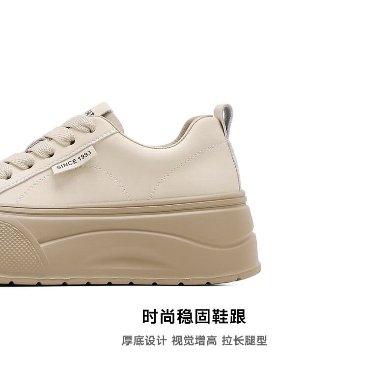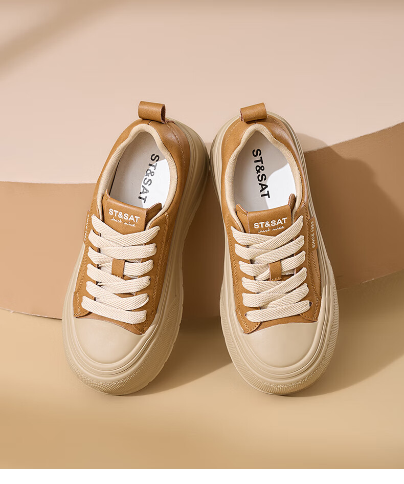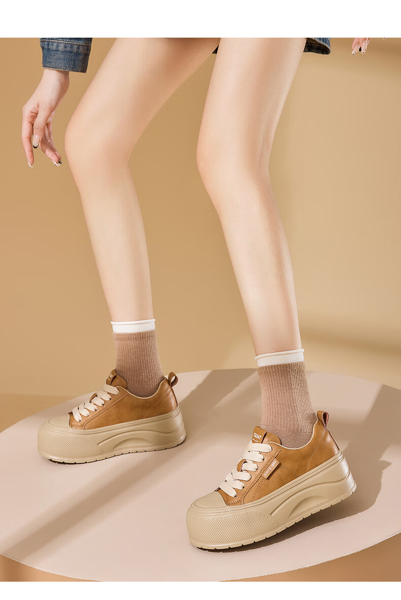 星期六2025秋季新款厚底休闲板鞋女款舒适百搭小白鞋复古增高女鞋 咖啡色 35