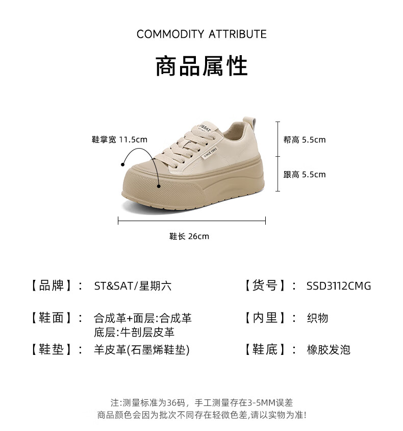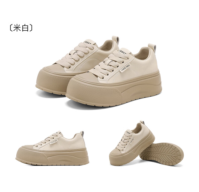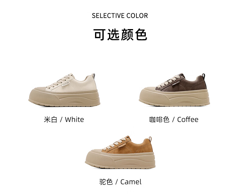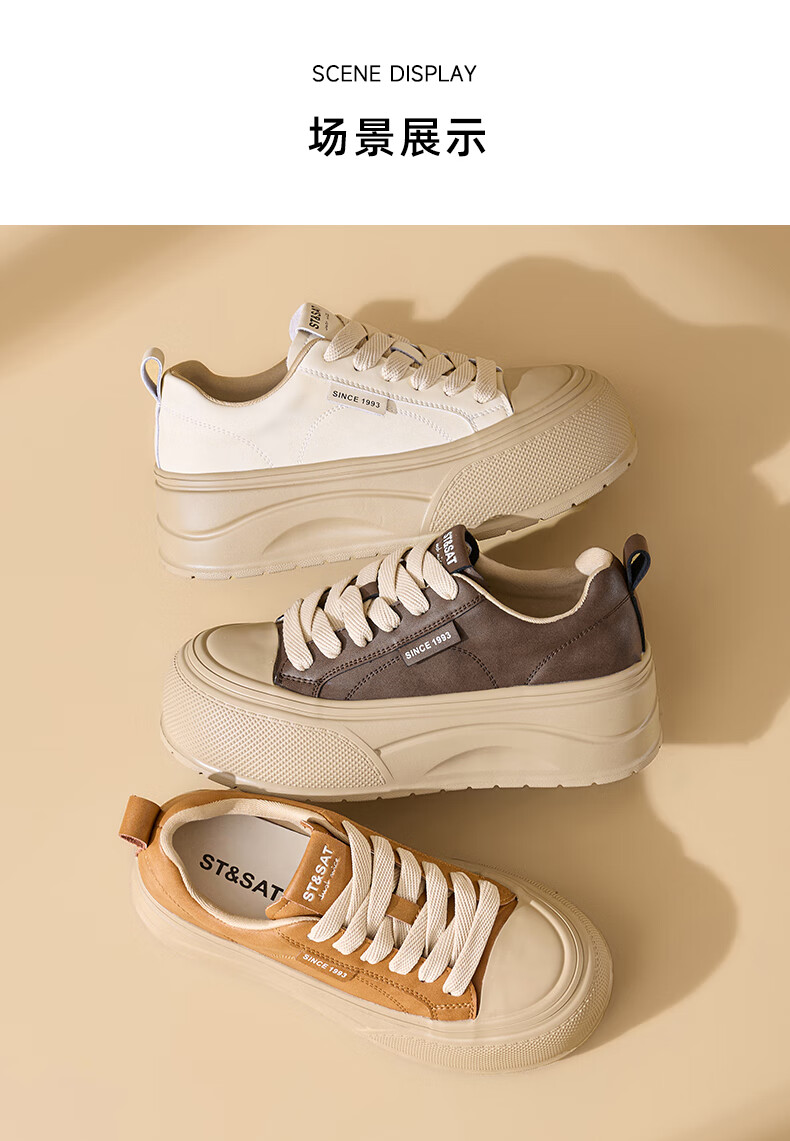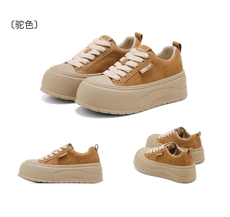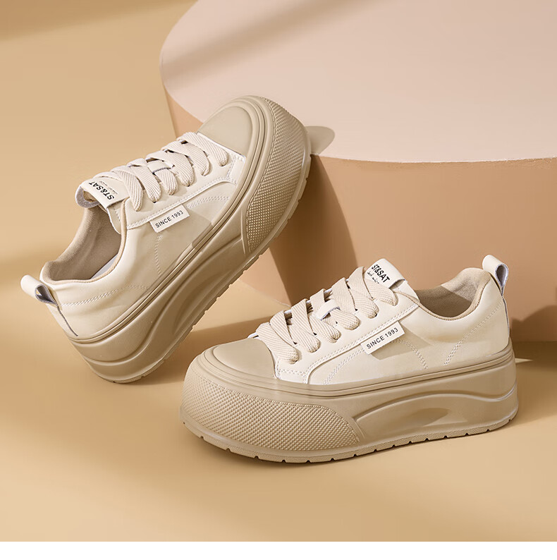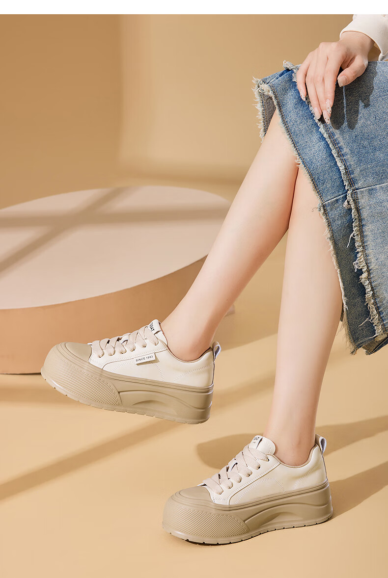 星期六2025秋季新款厚底休闲板鞋女款舒适百搭小白鞋复古增高女鞋 咖啡色 35