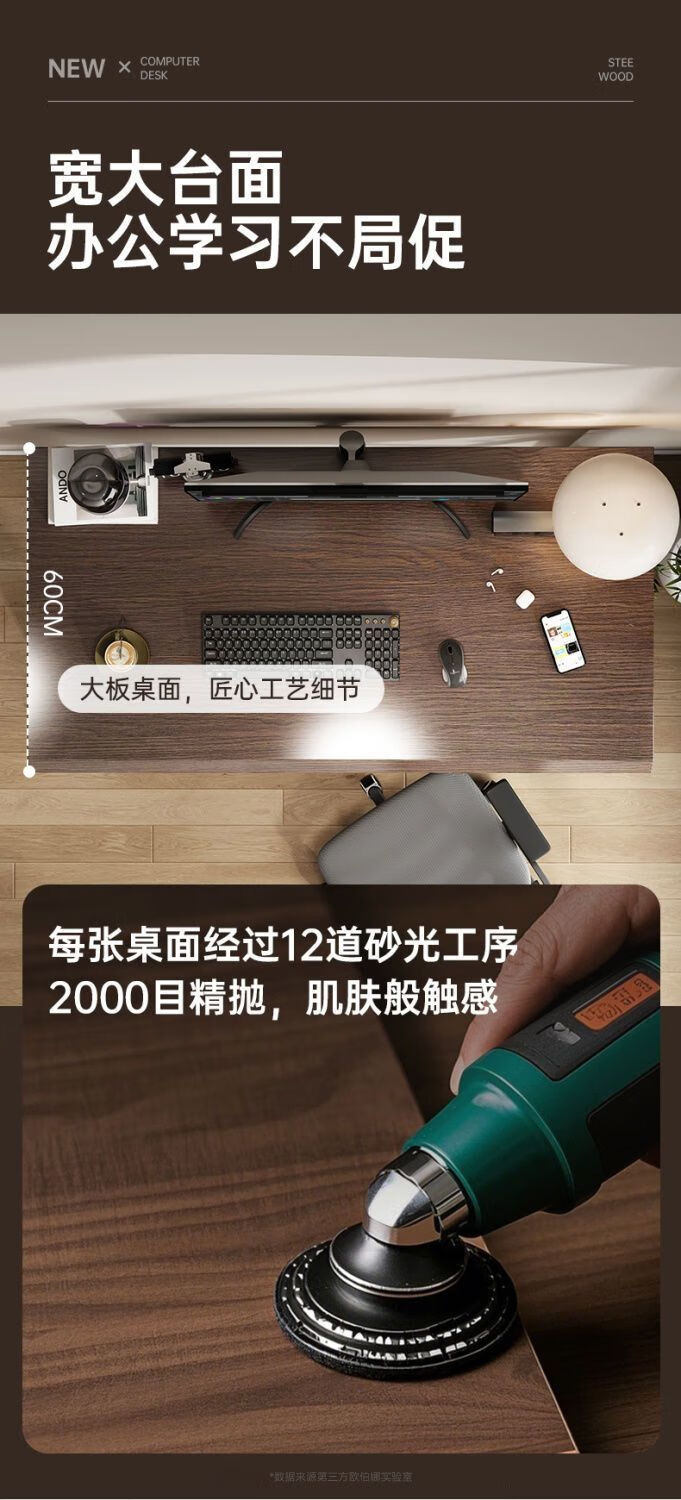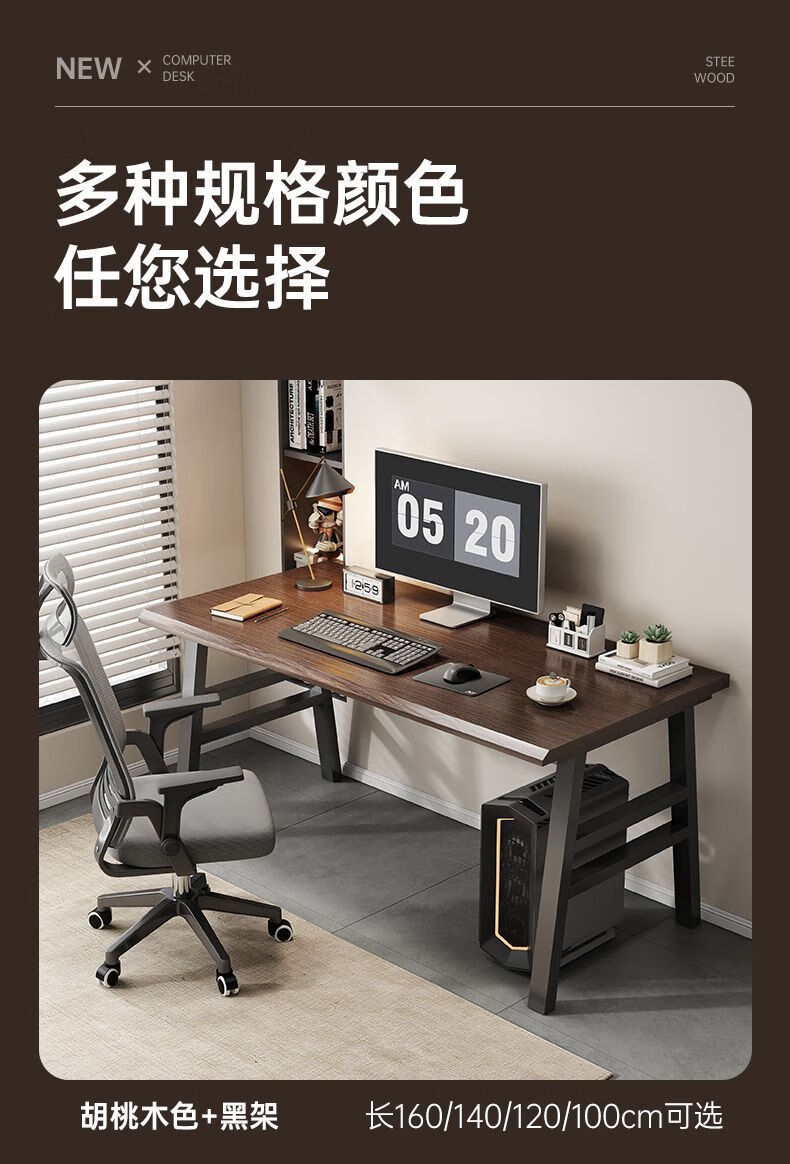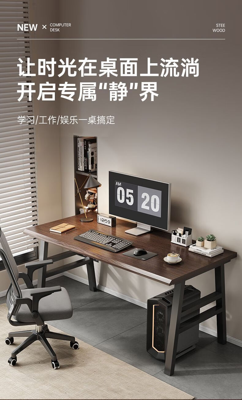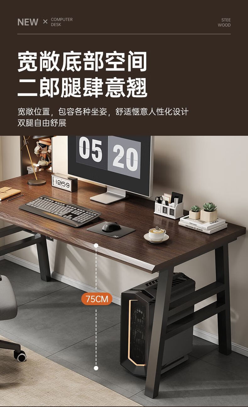 顾家家居书桌家用书房学习桌学生写字桌桌子电脑桌台式电竞桌办公桌工作台 【双横杆加固桌腿】胡桃木色1.2M