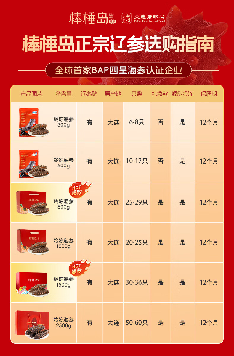 棒棰岛年货辽参大连生鲜海参孕妇滋补辽刺参非即食海鲜秋参送礼礼盒特产 800g 25-29只【囤货选择】