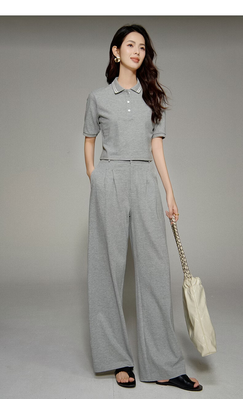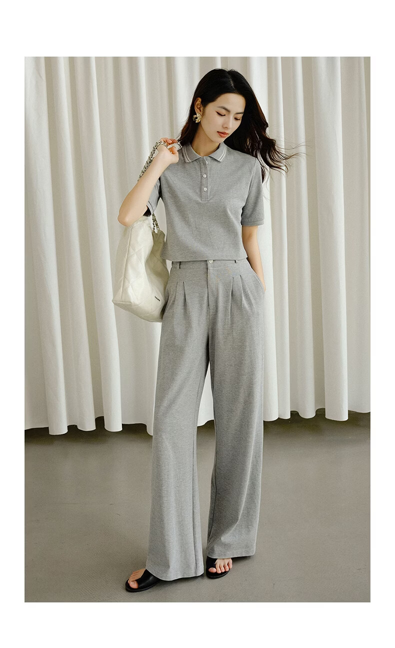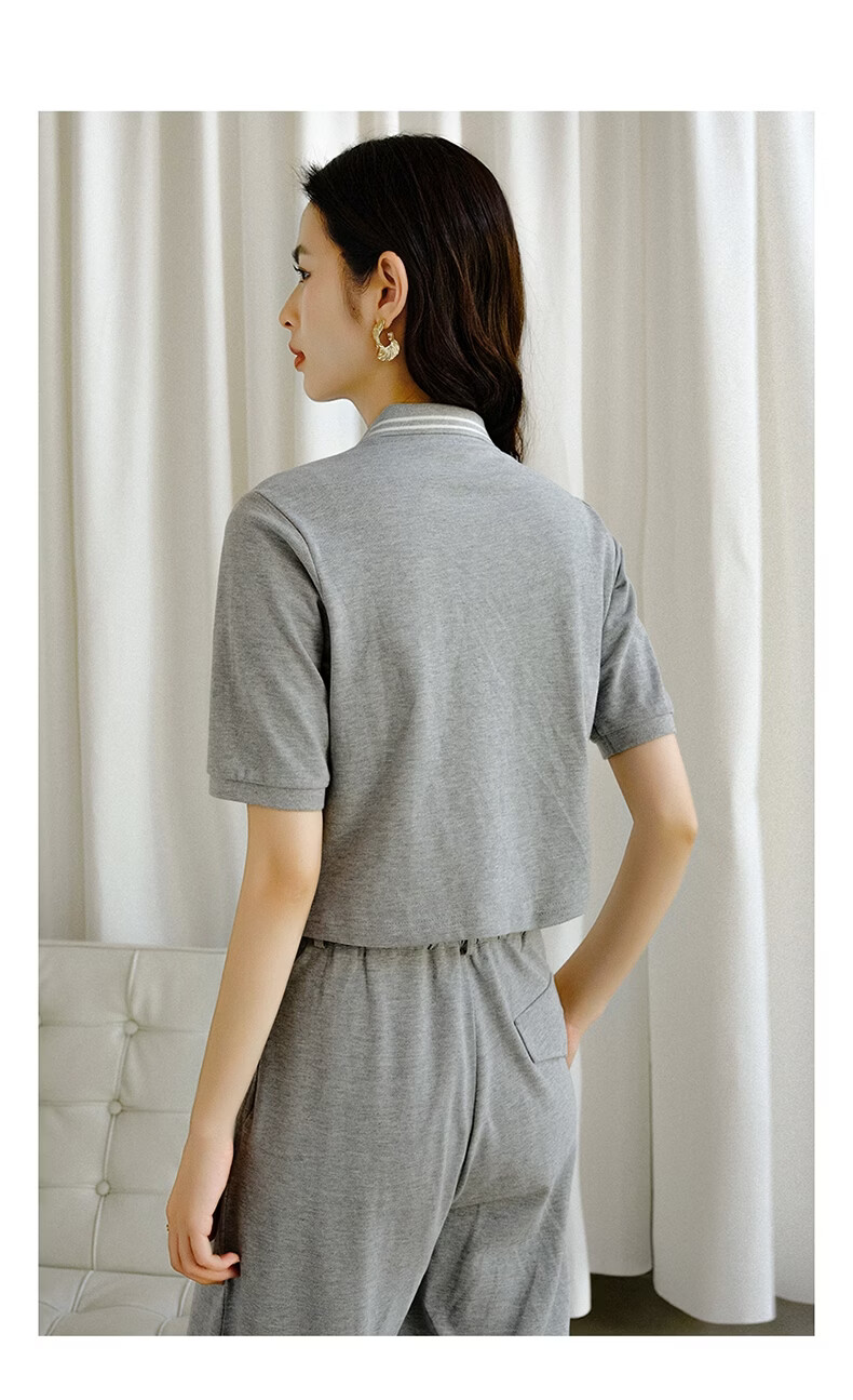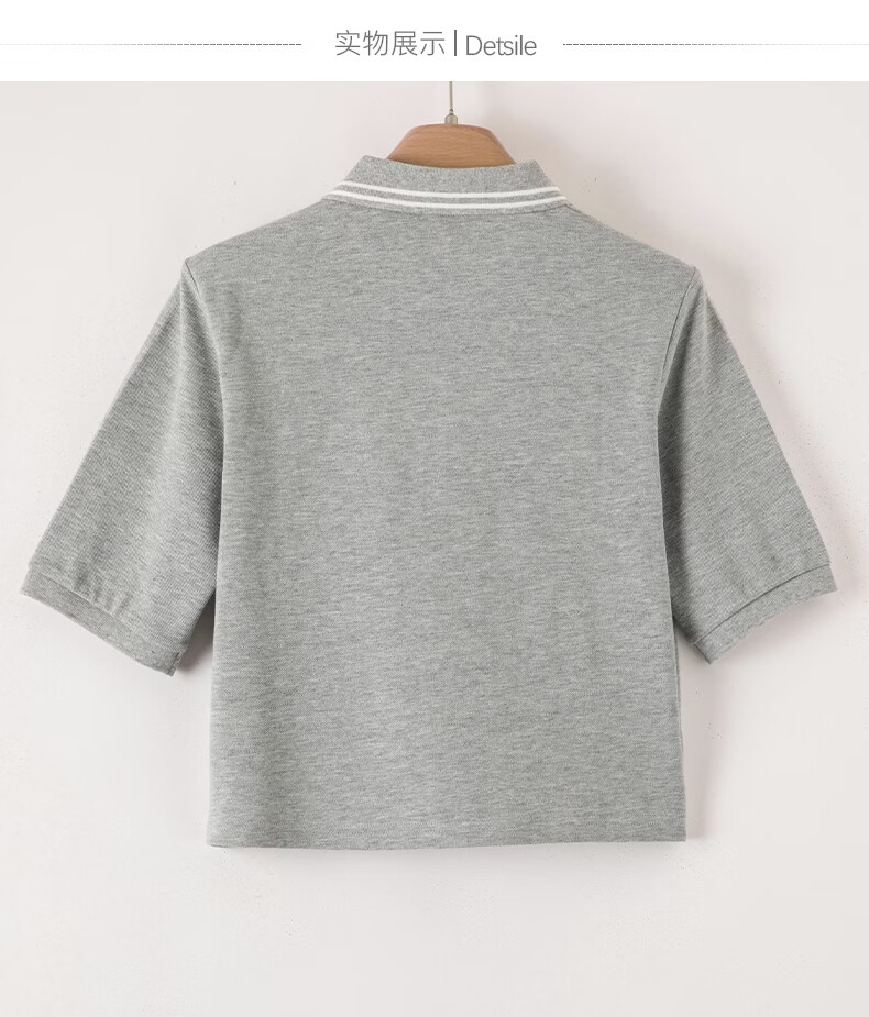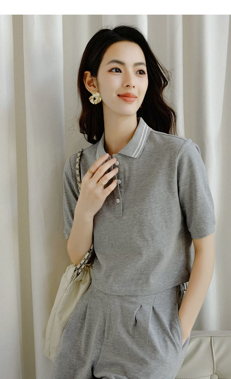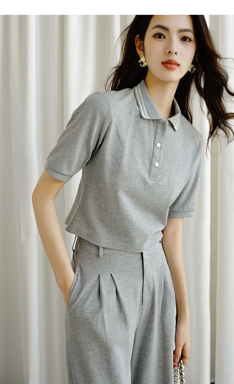 晚白【新品】2026年春款翻领减龄短袖全棉亲肤日常休闲T恤衫女 灰色 S