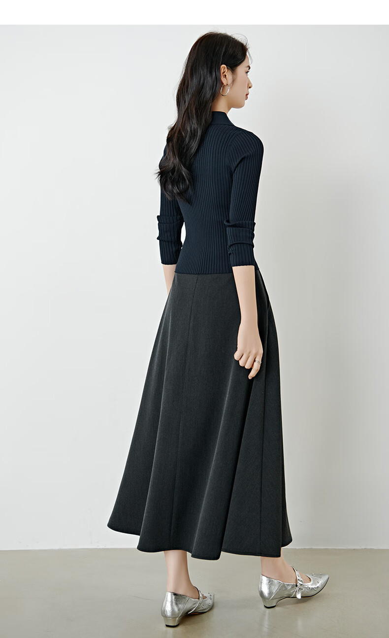 晚白【新品】绵羊毛大摆a字半身裙春款时尚气质高腰显瘦百搭半裙 深灰色 S
