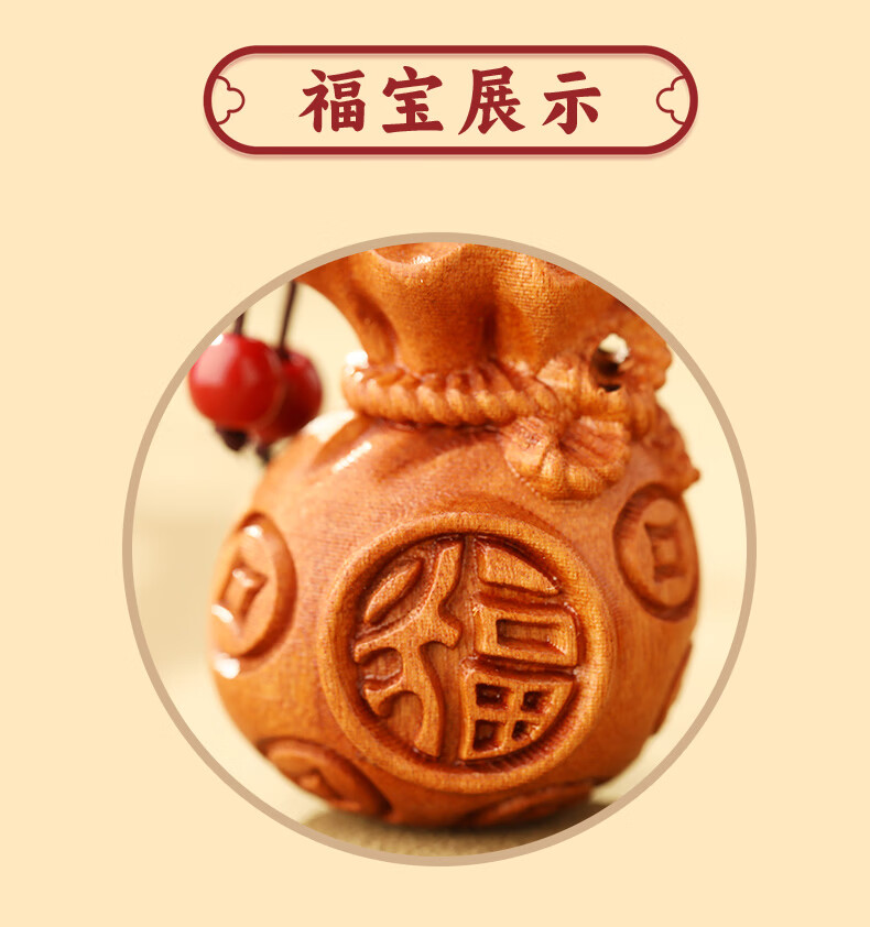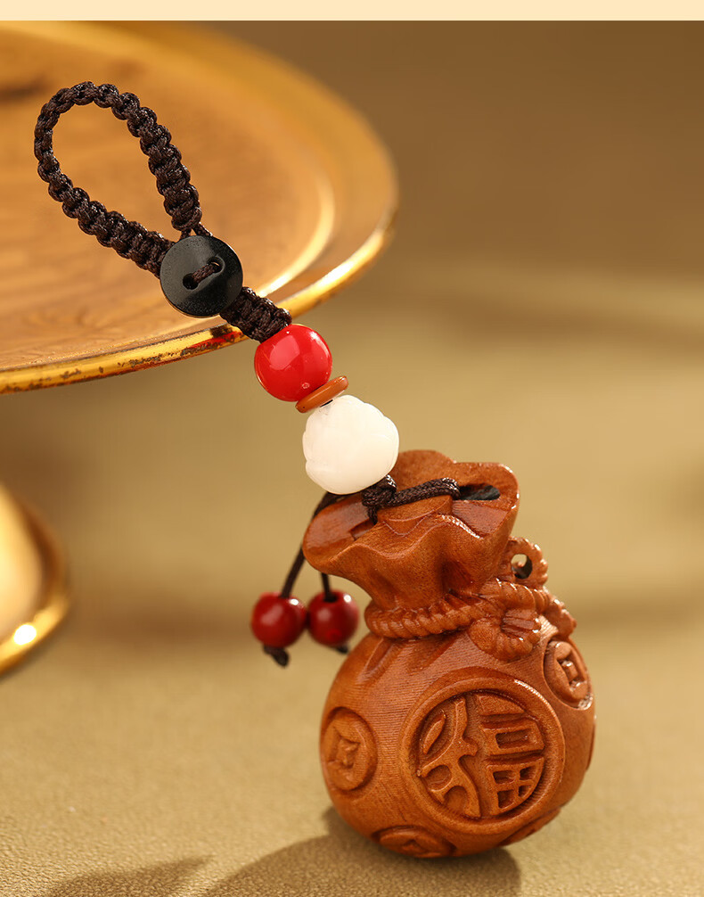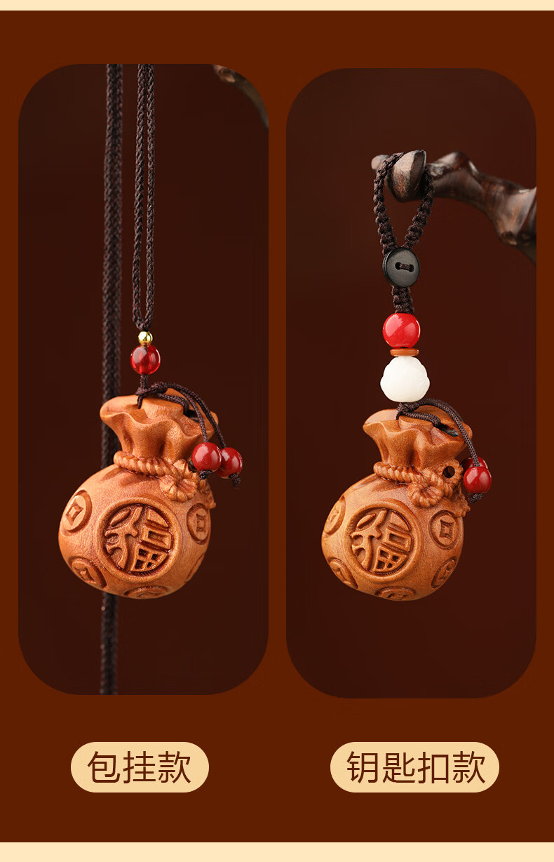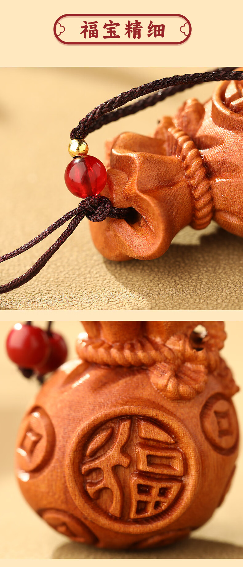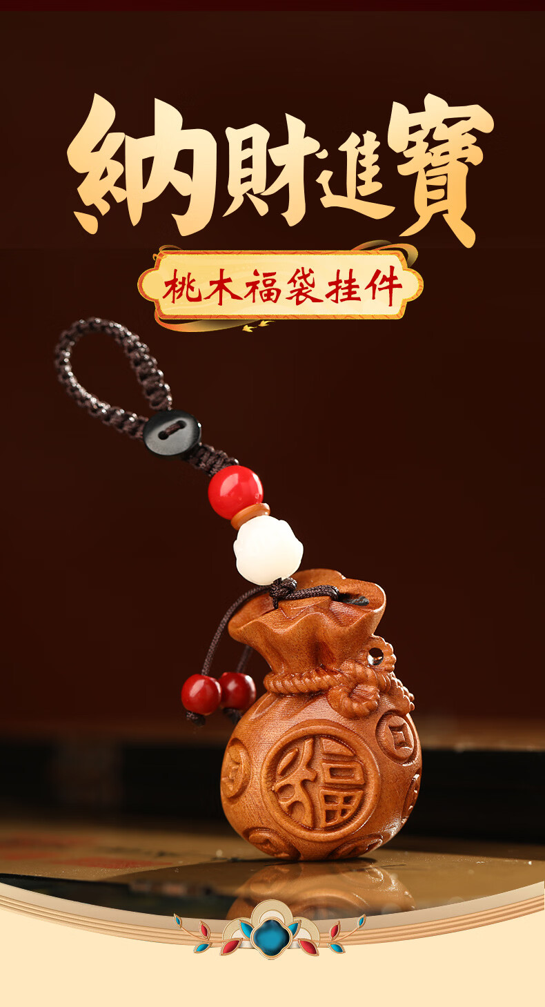 慈元阁桃木福袋纳财进宝挂件木质男女情侣款随身汽车钥匙扣把玩包包挂件 福袋纳财进宝钥匙扣