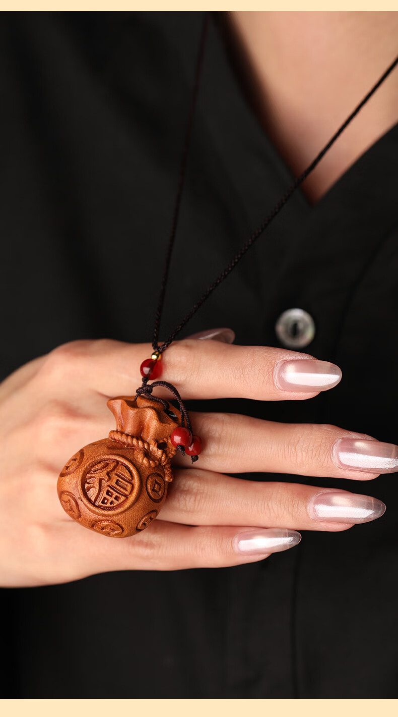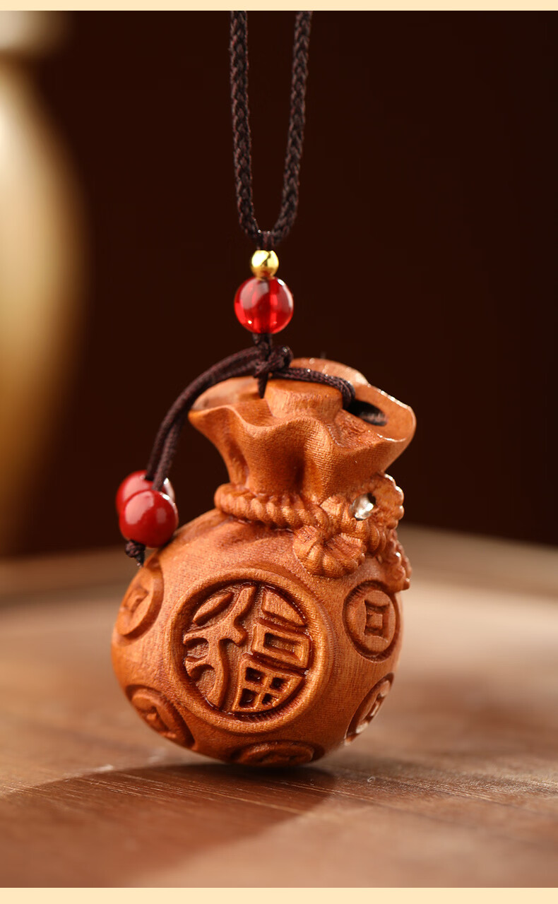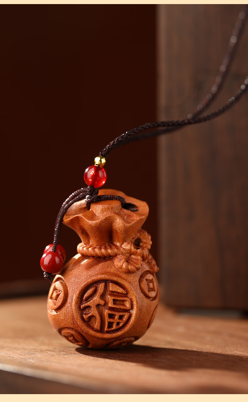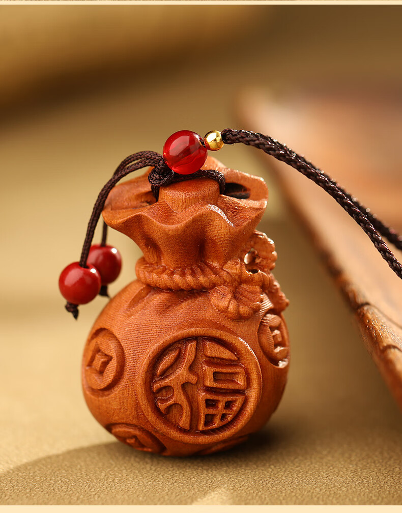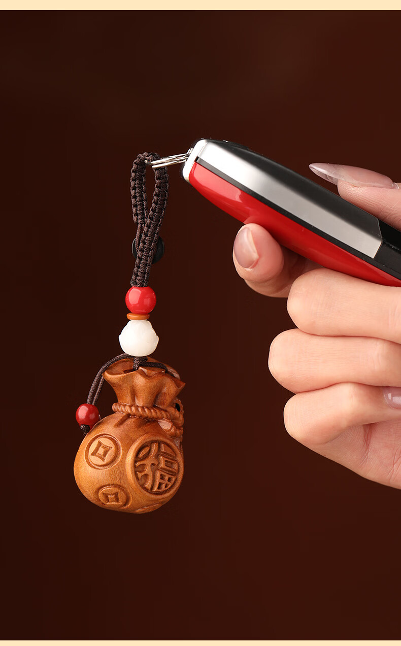 慈元阁桃木福袋纳财进宝挂件木质男女情侣款随身汽车钥匙扣把玩包包挂件 福袋纳财进宝钥匙扣