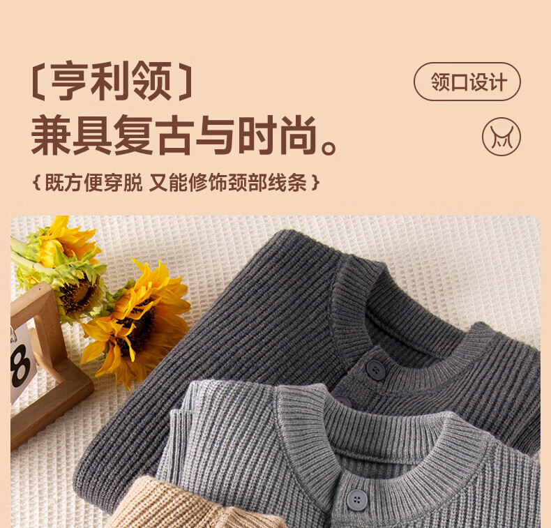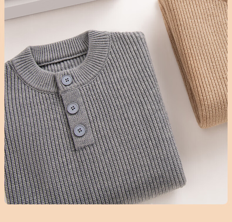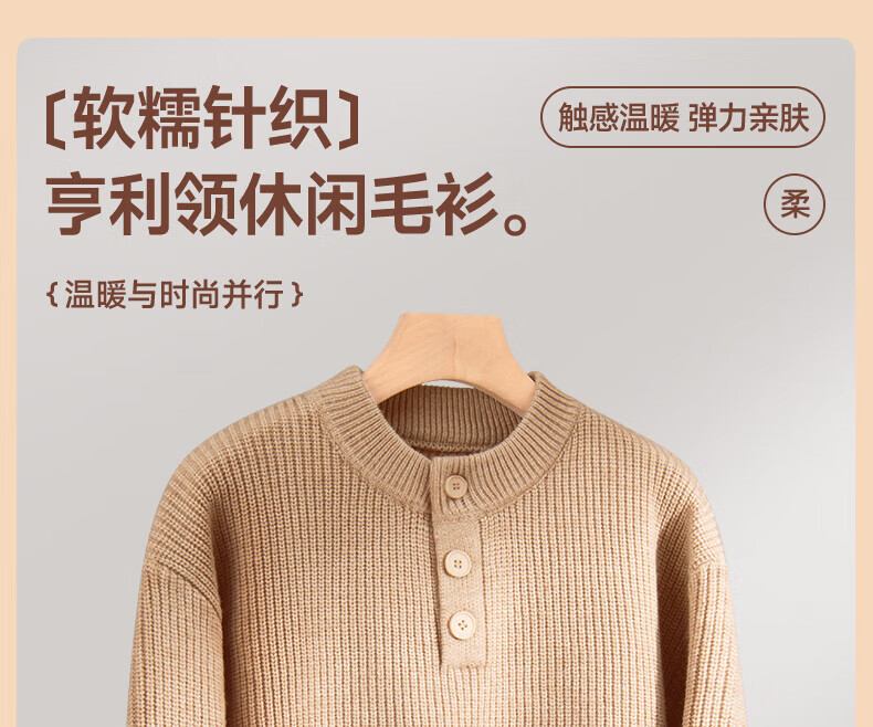 真维斯(Jeanswest)2026男士冬季新款毛衣加绒加厚亨利领针织衫宽松保暖高级感上衣男 黑色 M