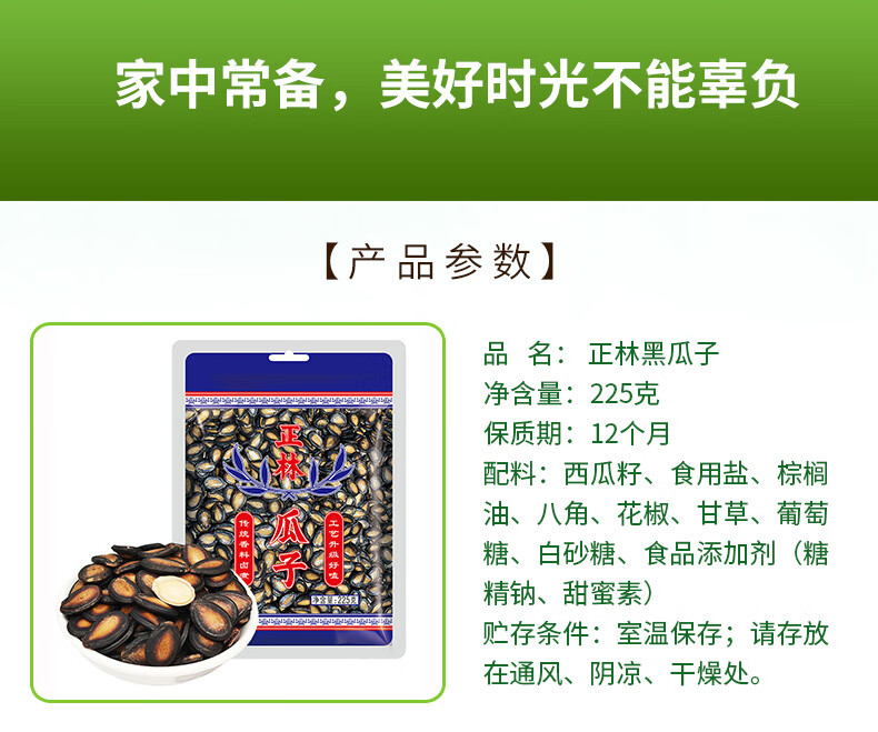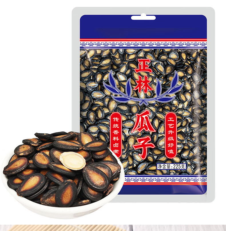 正林2A黑瓜子蓝标225g袋装大片西瓜子休闲食品年货炒货实惠方便装 2袋装