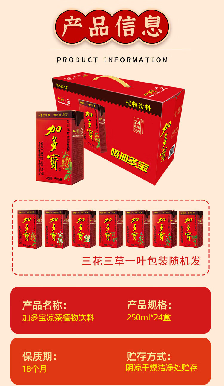 加多宝 凉茶植物饮料 茶饮料 250ml*24盒 整箱装