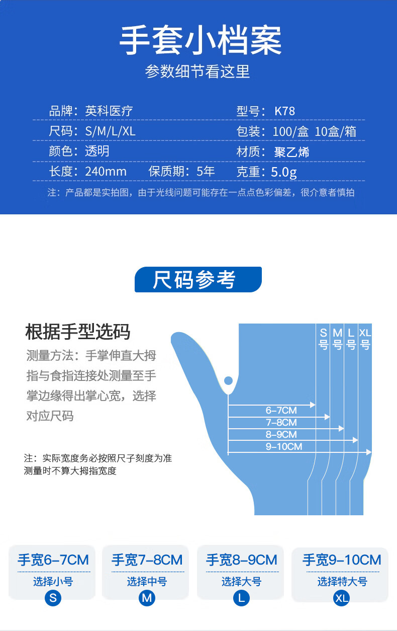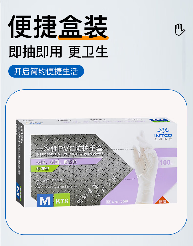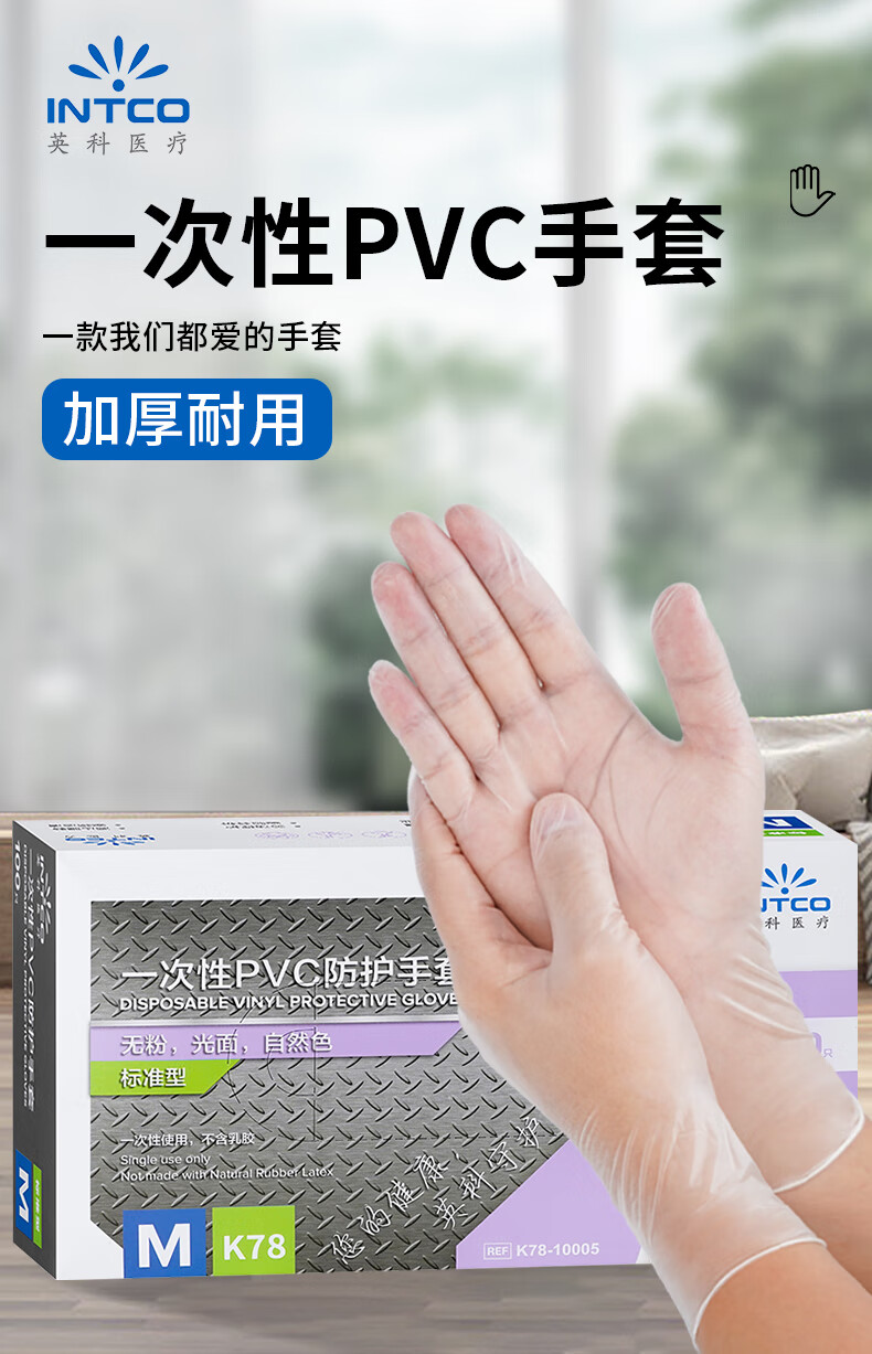 英科医疗一次性手套PVC手套100只中码洗碗厨房实验室美容家务透明防水手套