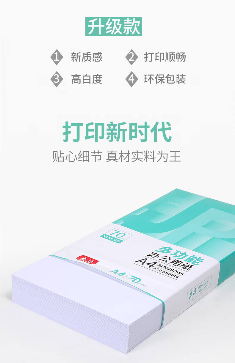 互信a4打印纸70g加厚复印纸450张多功能双面打印纸 办公打印家庭用纸顺滑不卡纸 10包4500张【囤货款】