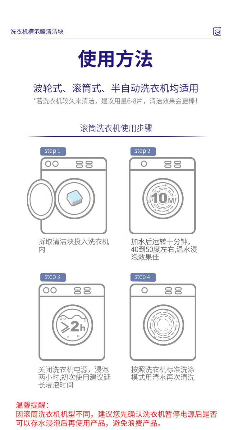 老管家洗衣机槽清洁泡腾块15g*12波轮滚筒洗衣机内胆清洁剂清洗剂除垢剂