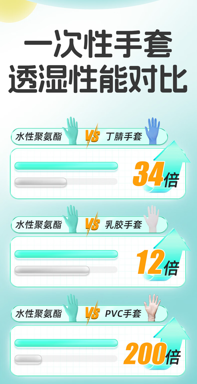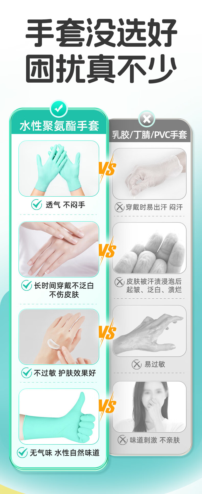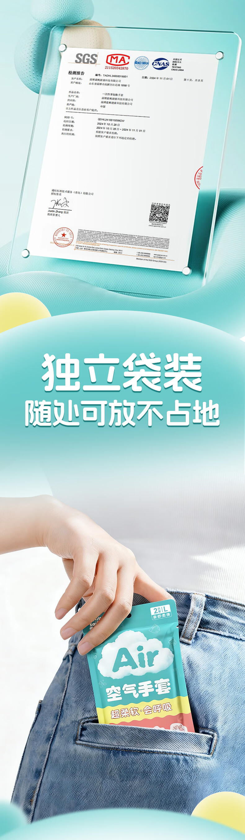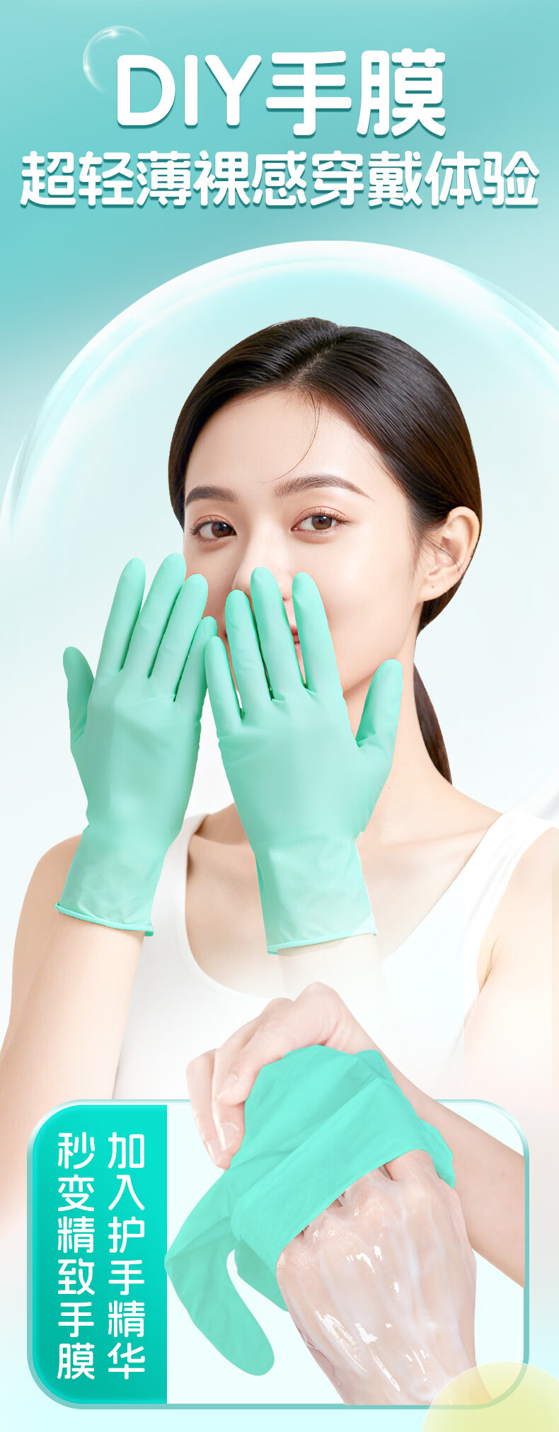 蓝帆医疗(blue sail+)聚氨酯空气手套超薄一次性无粉母婴洗碗宠物清洁手套2只装 M码
