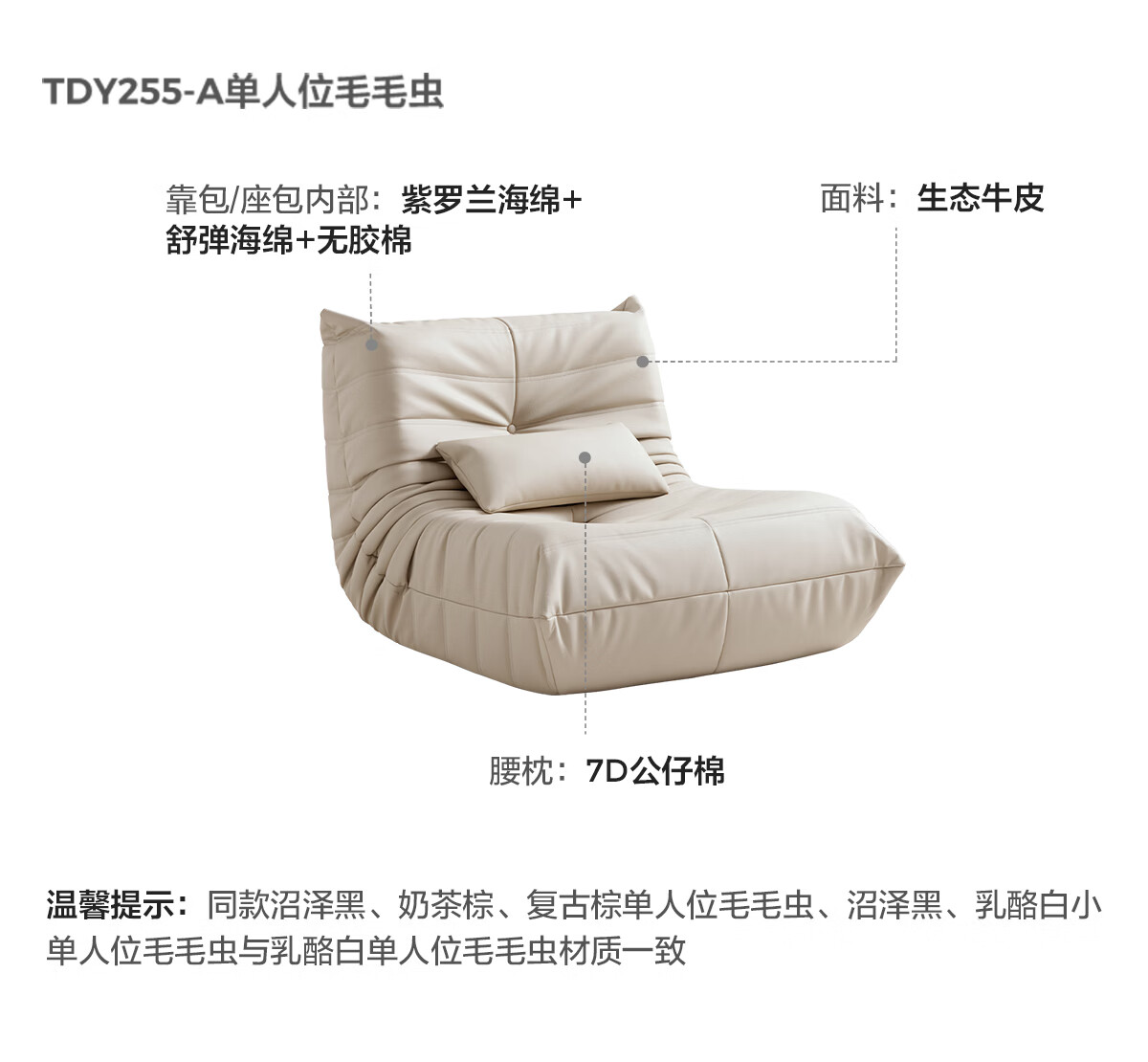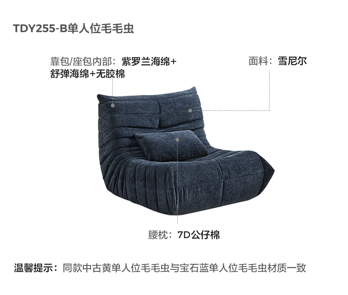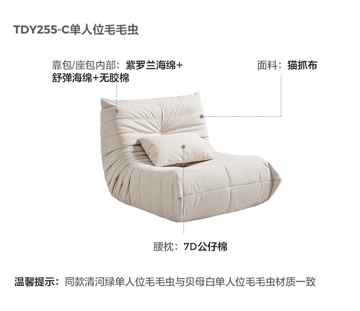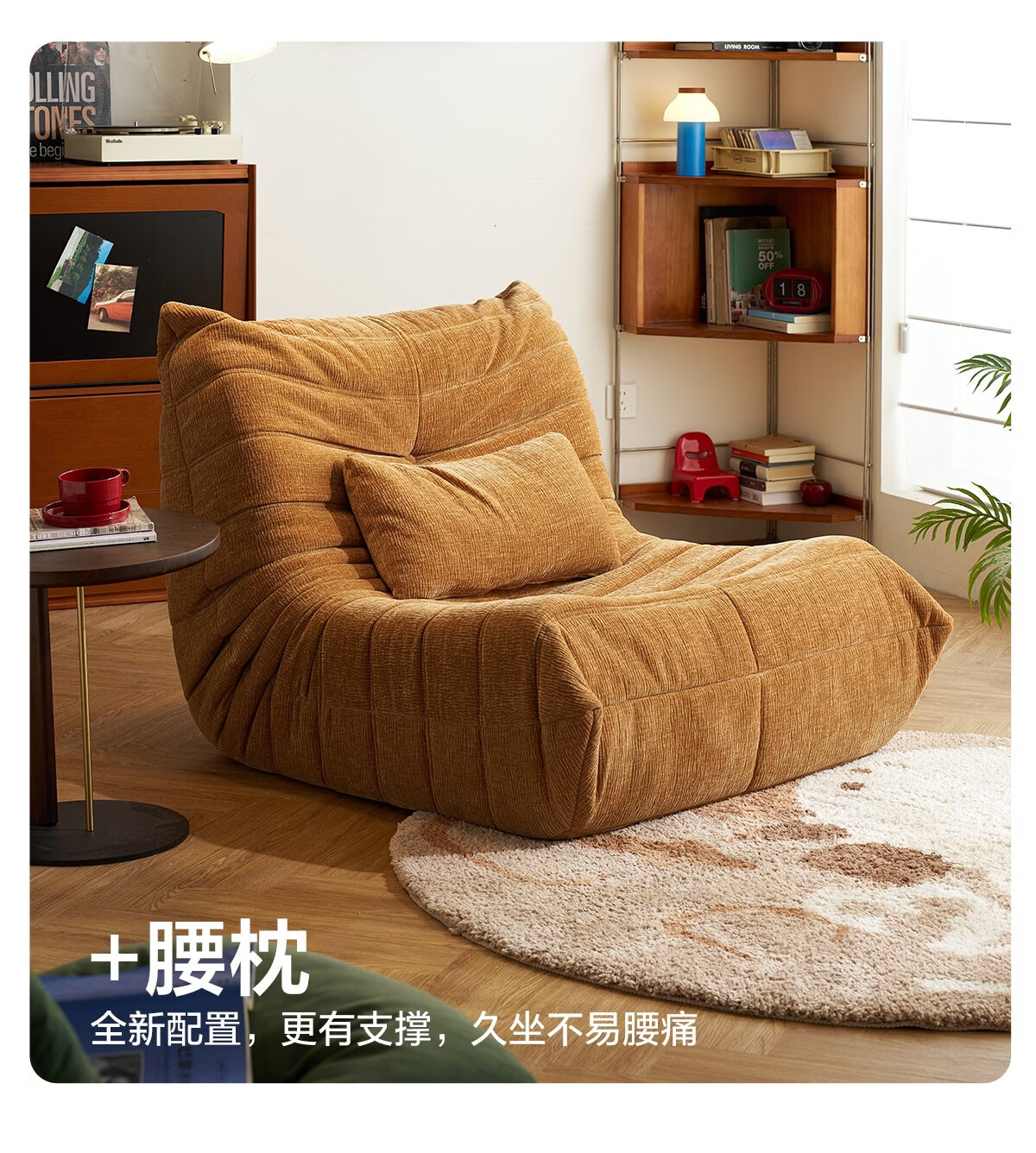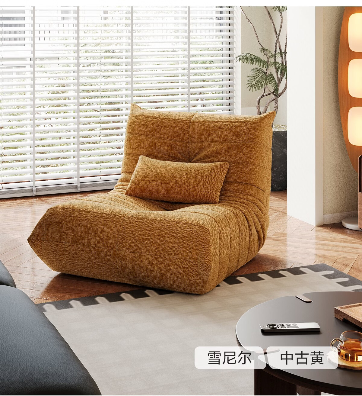 LINSY KIDS林氏家居懒人沙发客厅2025新款单人椅毛毛虫可躺可睡沙发TDY255 (9)【软糯雪尼尔】中古黄-单人位