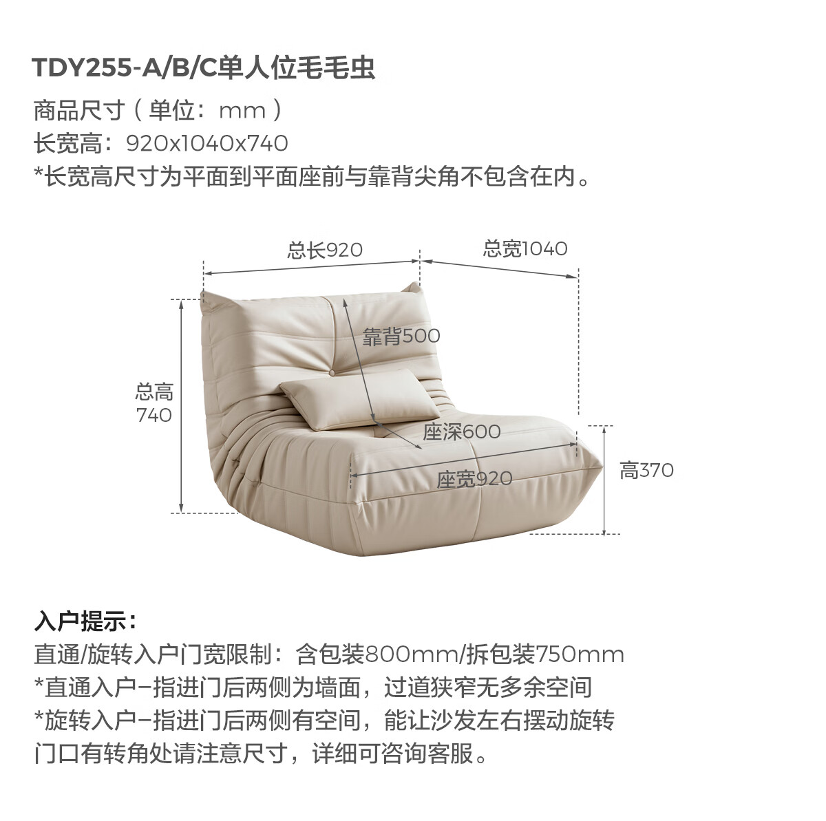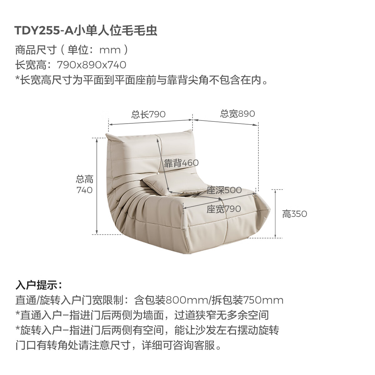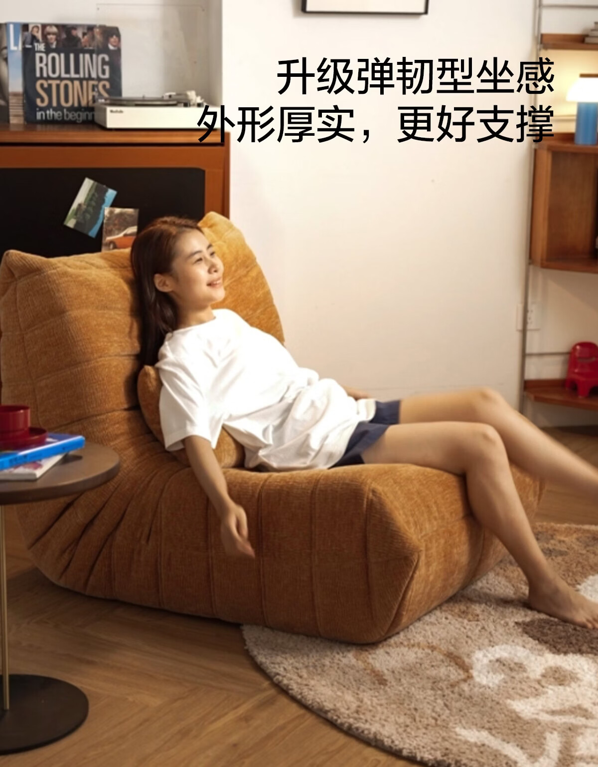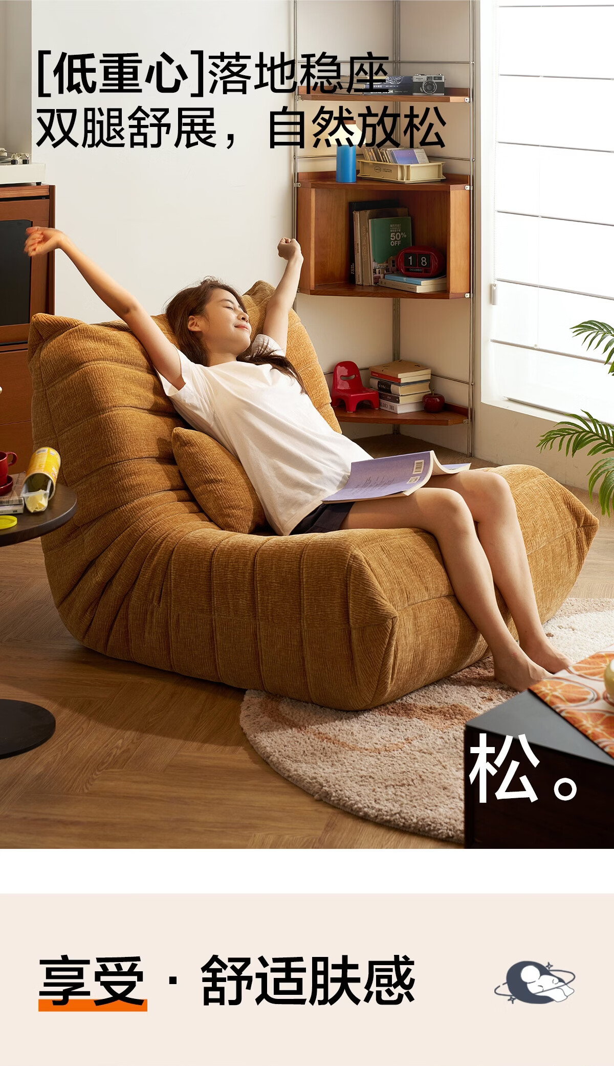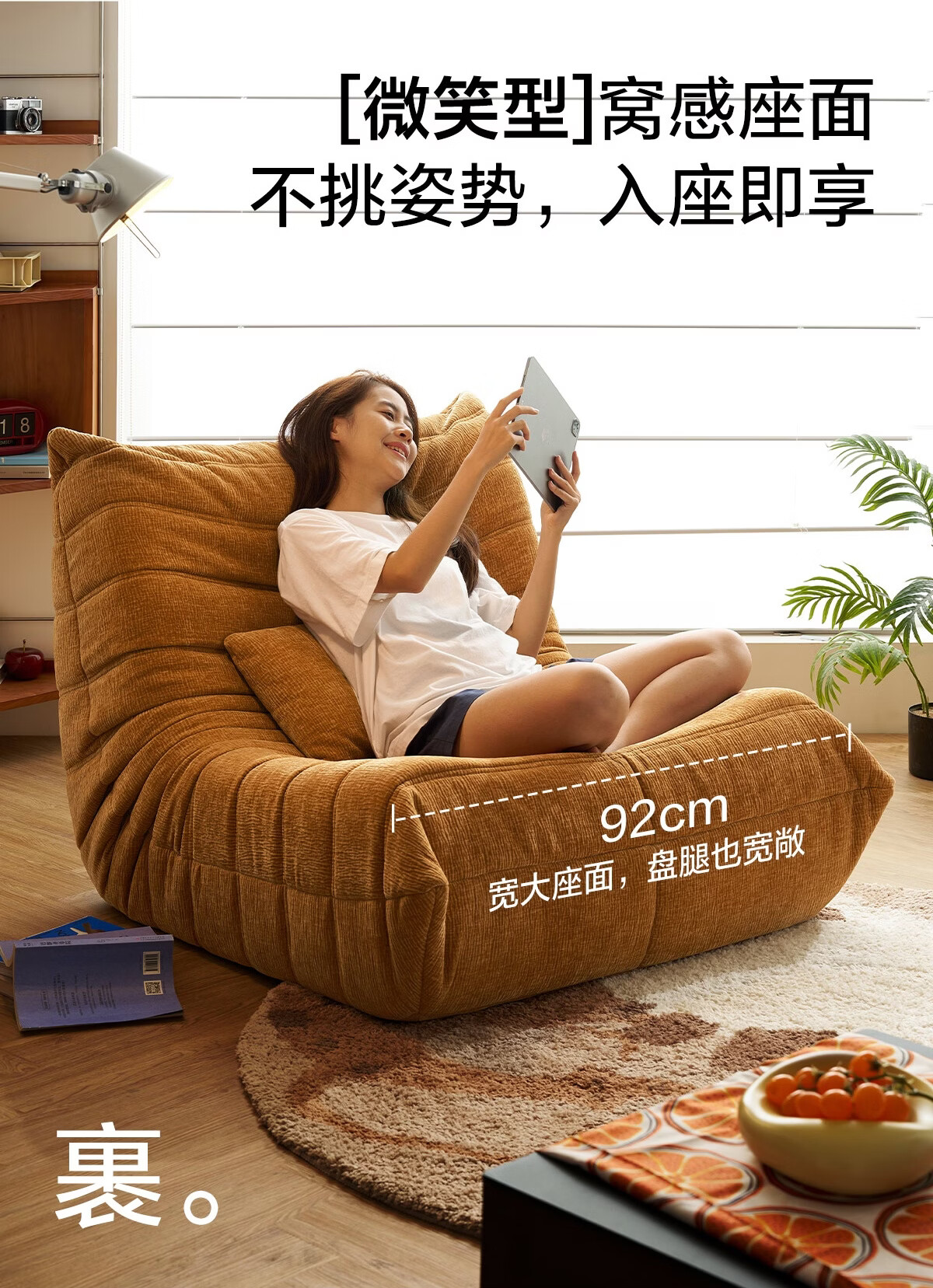 LINSY KIDS林氏家居懒人沙发客厅2025新款单人椅毛毛虫可躺可睡沙发TDY255 (9)【软糯雪尼尔】中古黄-单人位