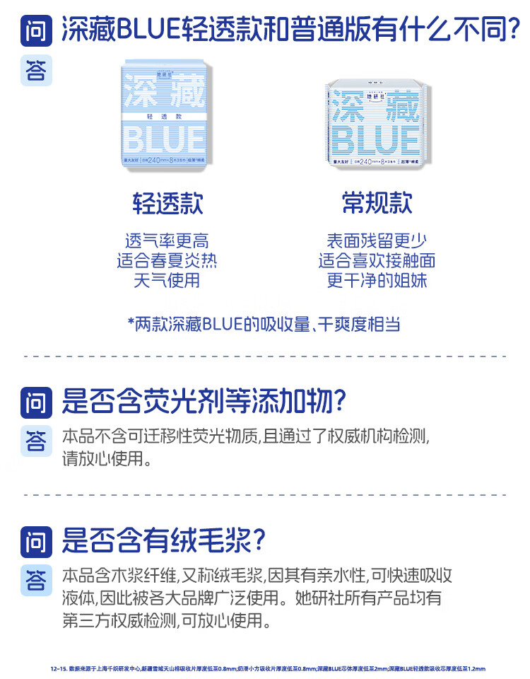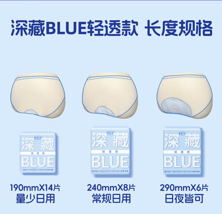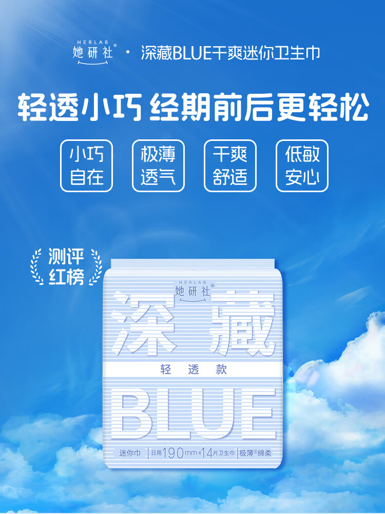 她研社深藏blue轻透款卫生巾日用护垫迷你190mm14片姨妈巾自营