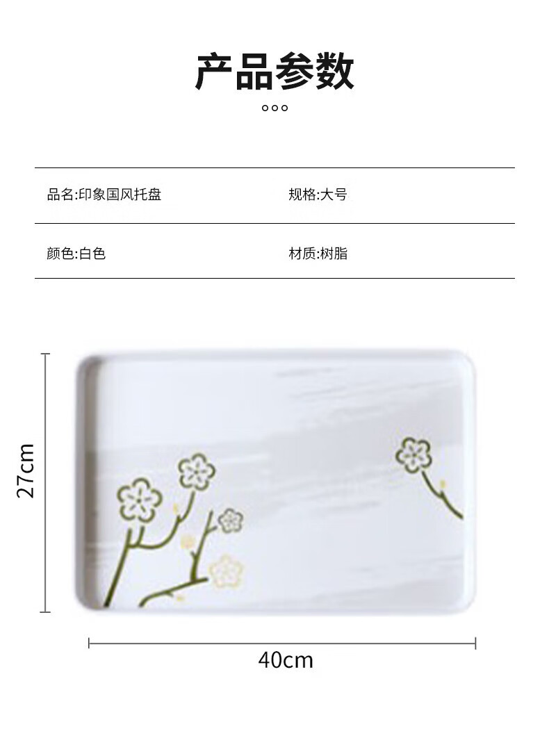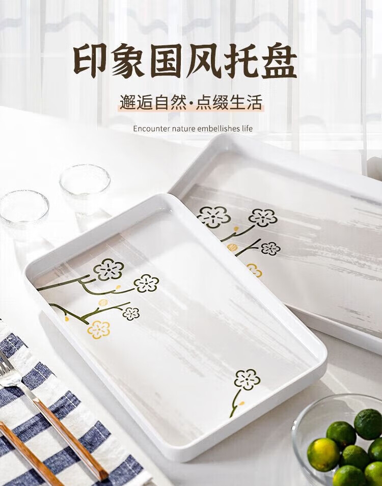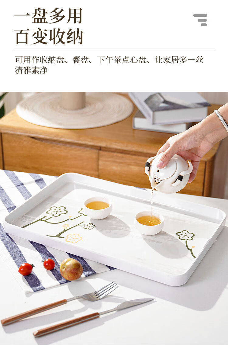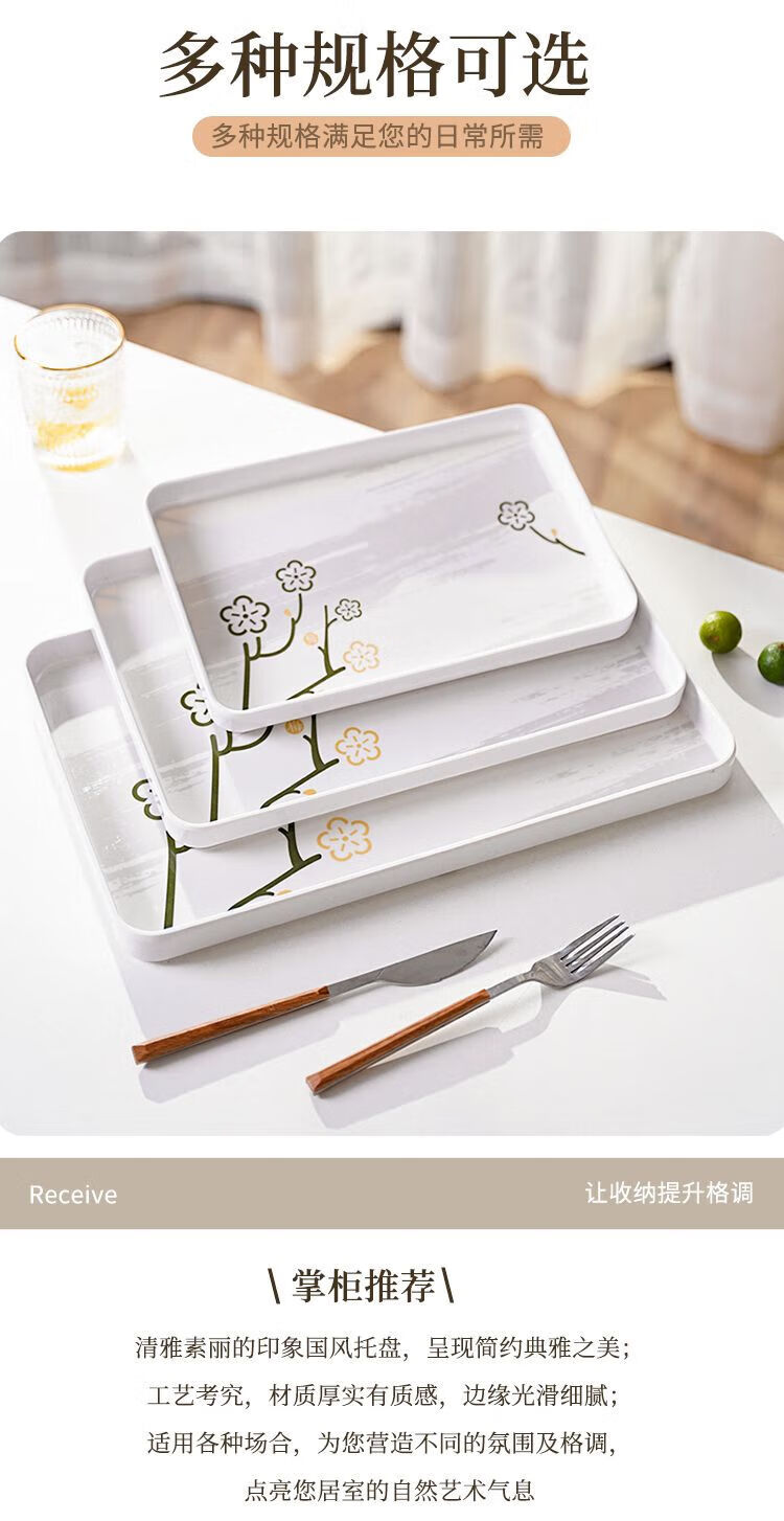 星坊长方形大号托盘茶盘40*27cm 早餐盘客厅干果水果盘 加厚密胺