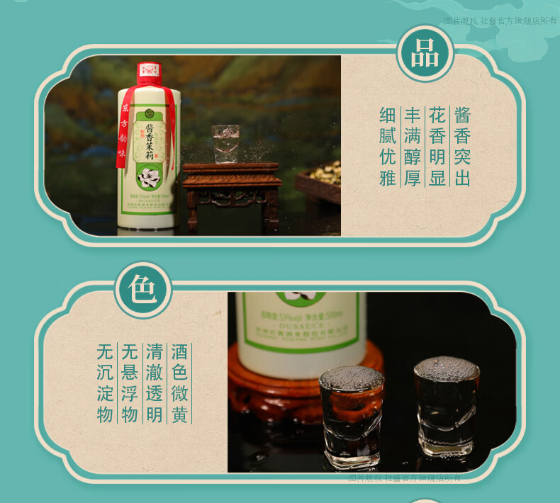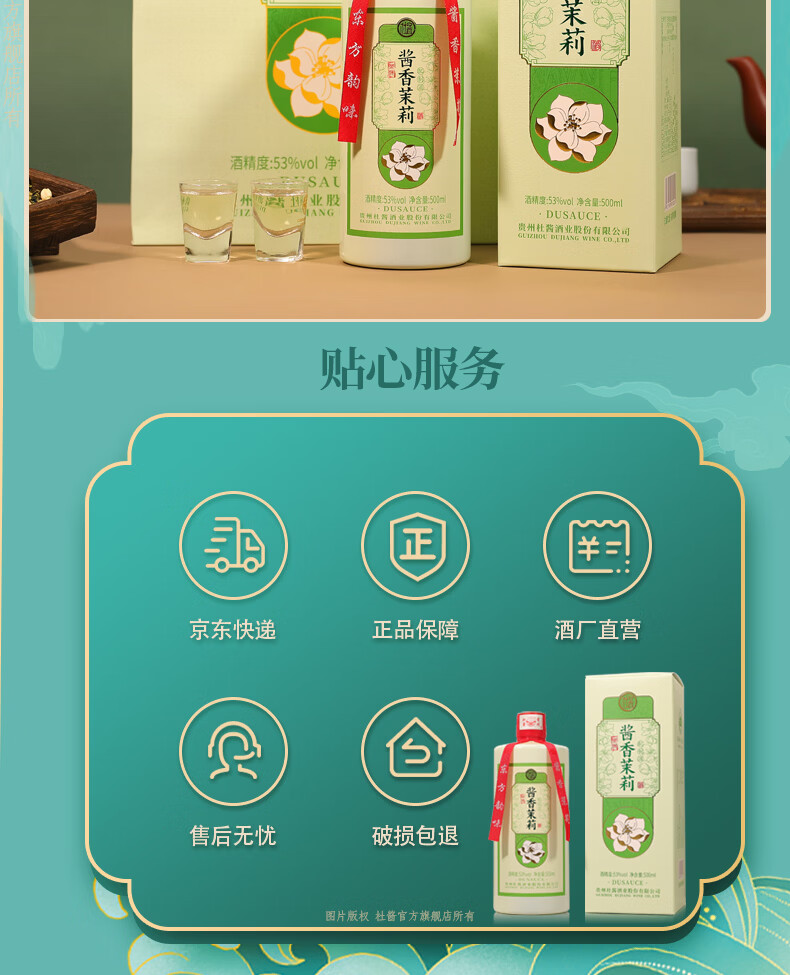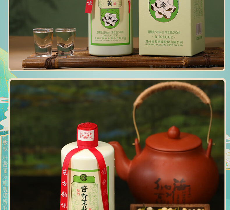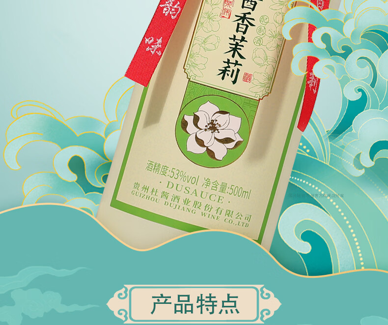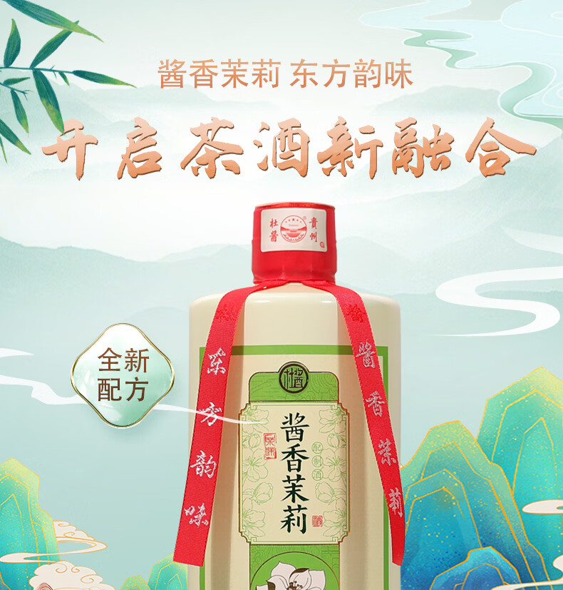 杜酱酒 酱香茉莉酒 茅台镇53度酱香型白酒 高度白酒 茉莉花茶酒 53度 500mL 6瓶 整箱装+3个礼品袋