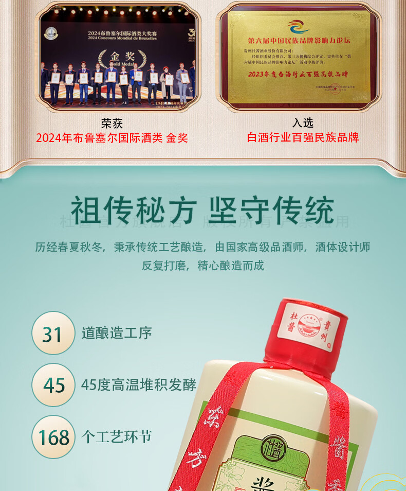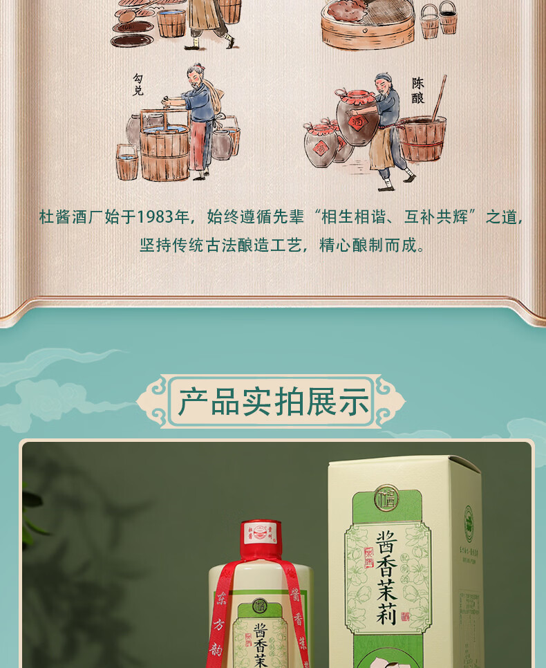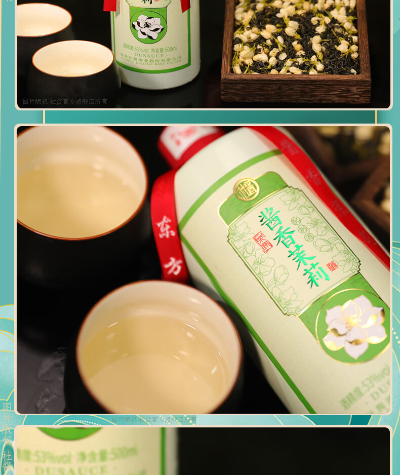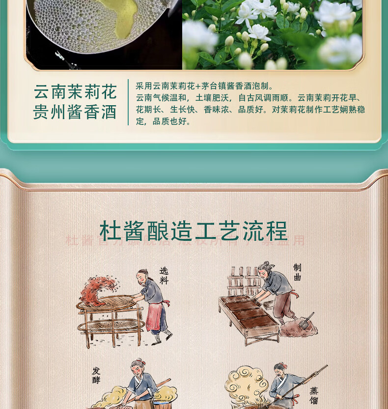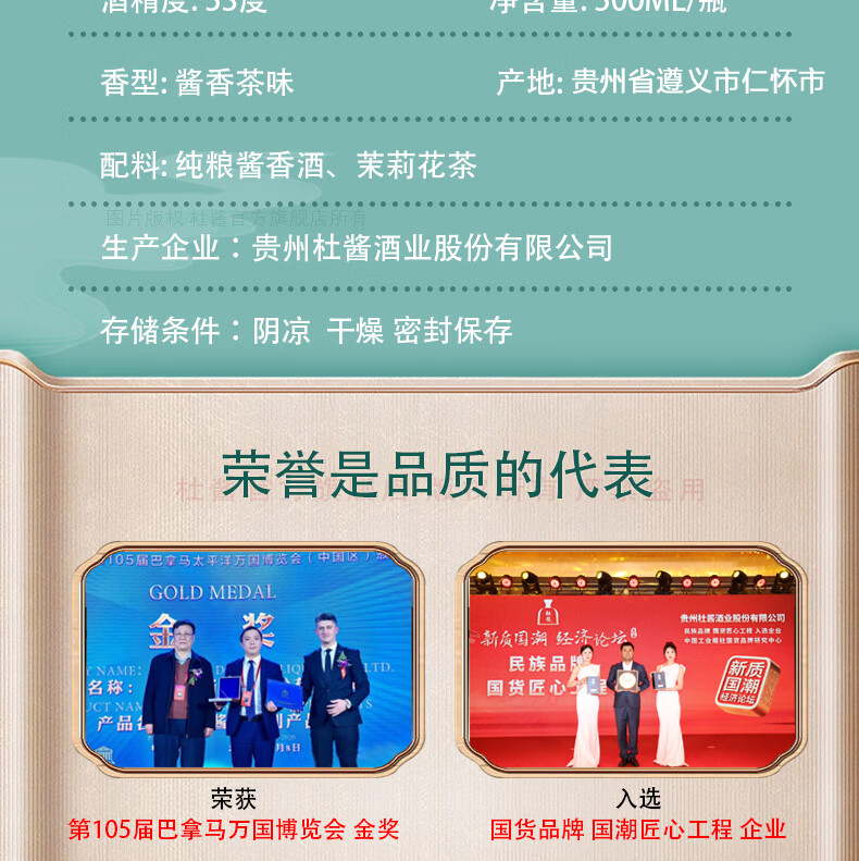 杜酱酒 酱香茉莉酒 茅台镇53度酱香型白酒 高度白酒 茉莉花茶酒 53度 500mL 6瓶 整箱装+3个礼品袋