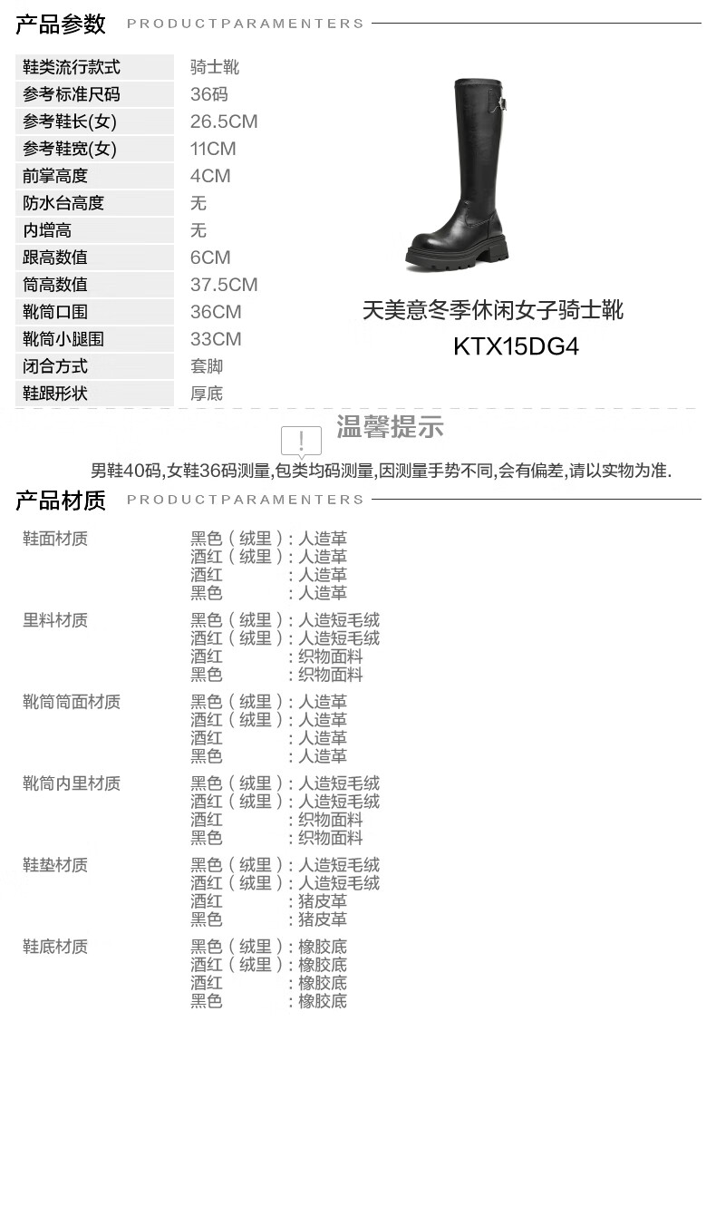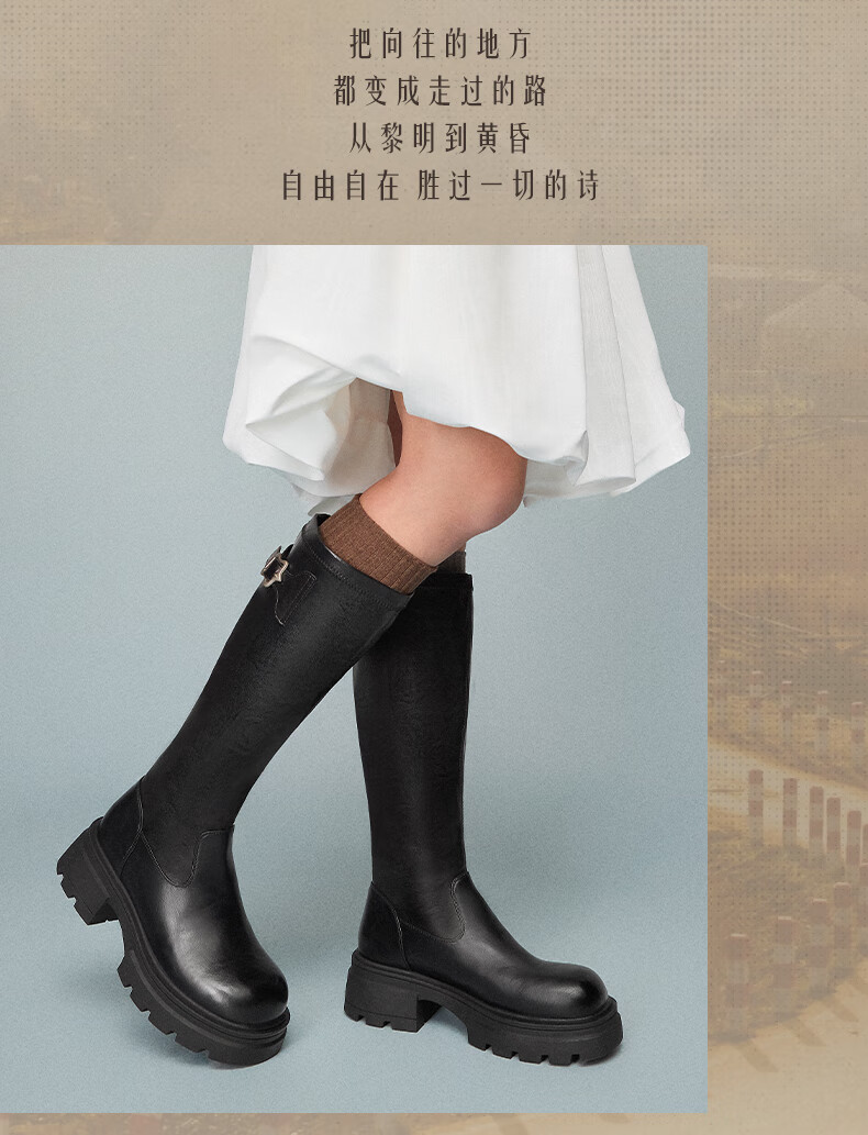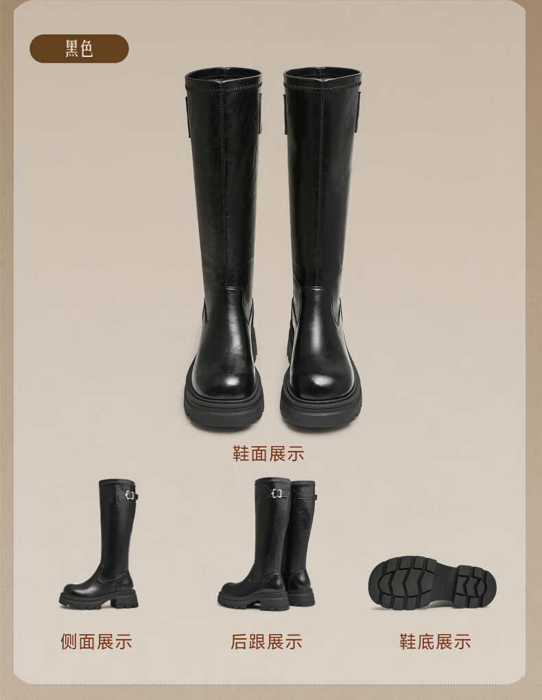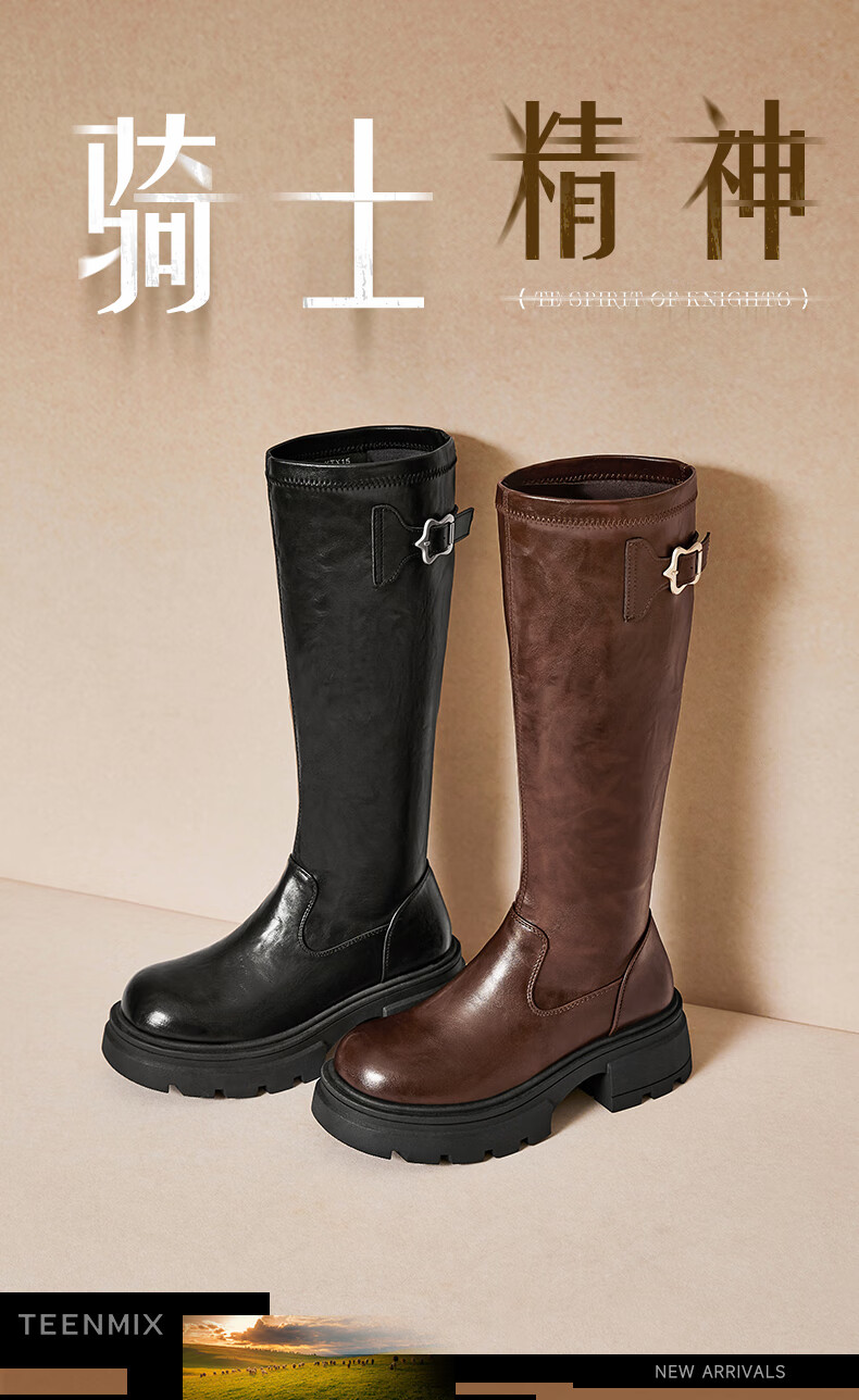 天美意长筒靴显瘦弹力高靴女骑士靴时尚百搭女靴