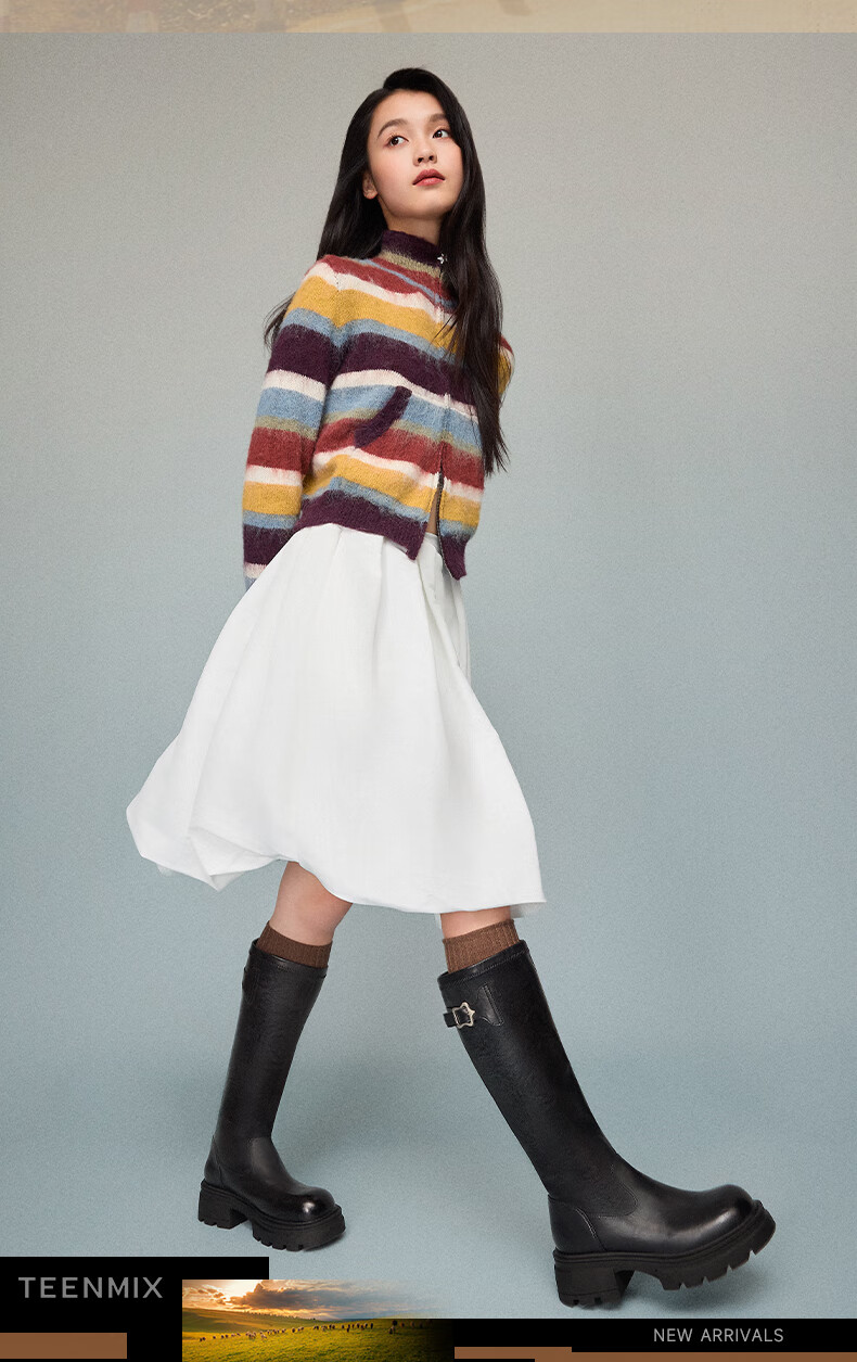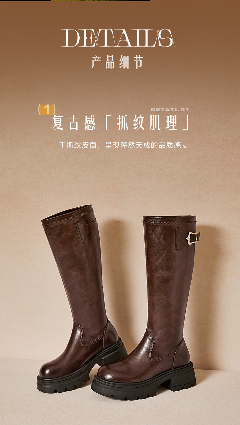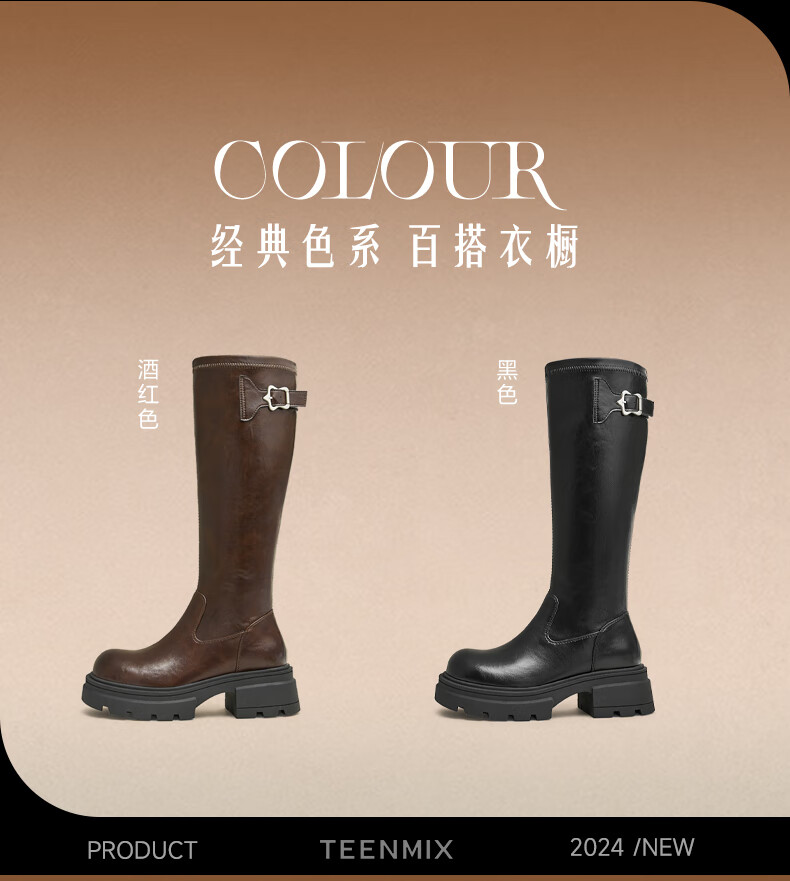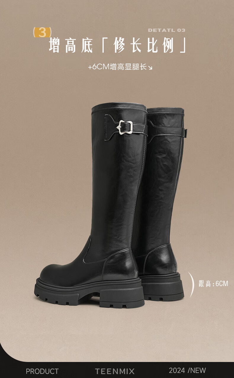 天美意长筒靴显瘦弹力高靴女骑士靴时尚百搭女靴