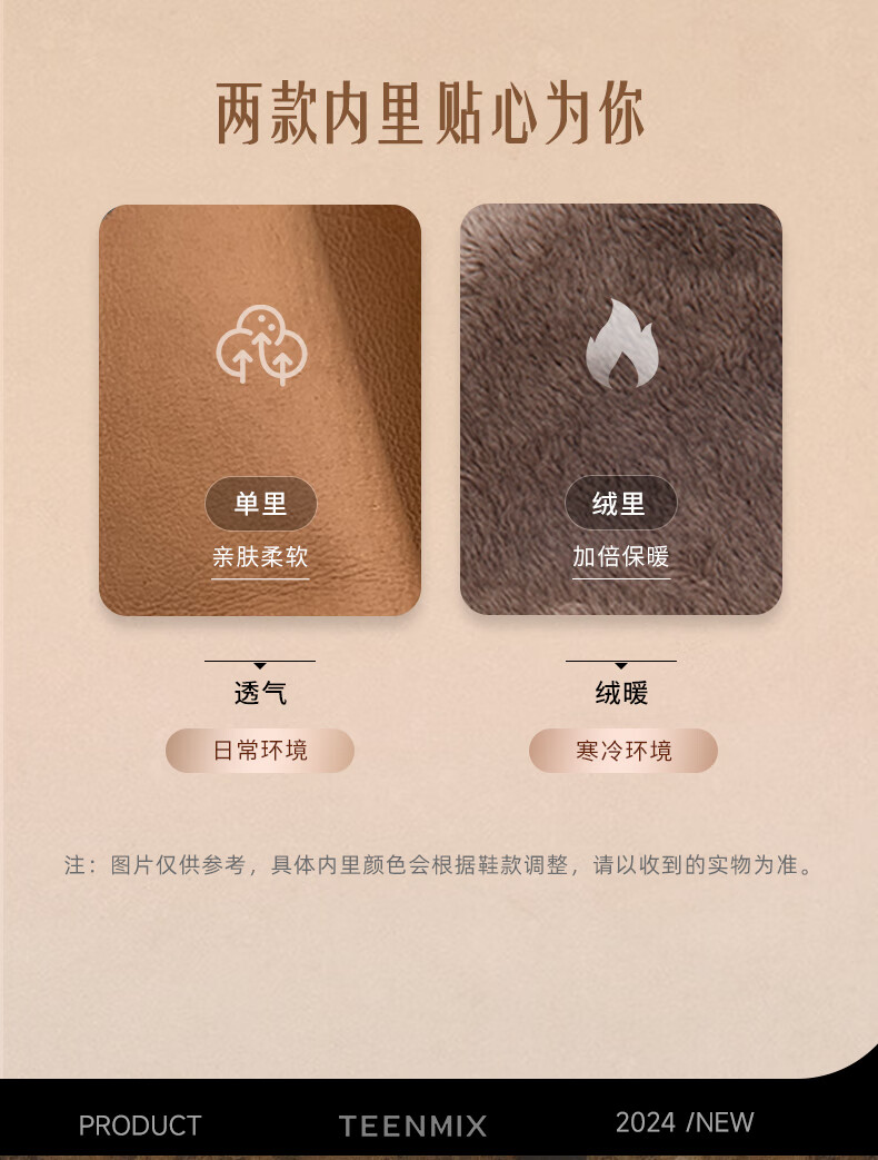 红蜻蜓男鞋子秋冬低帮青年皮鞋男加绒保暖商务休闲鞋男 C0191257-2