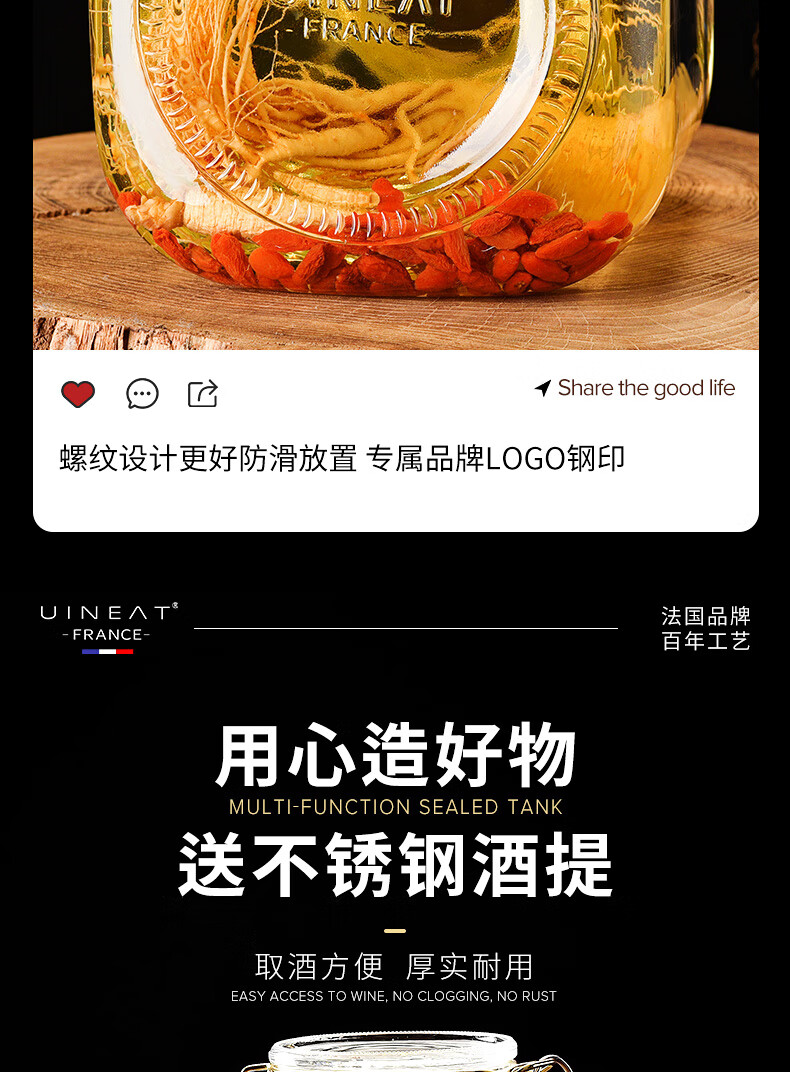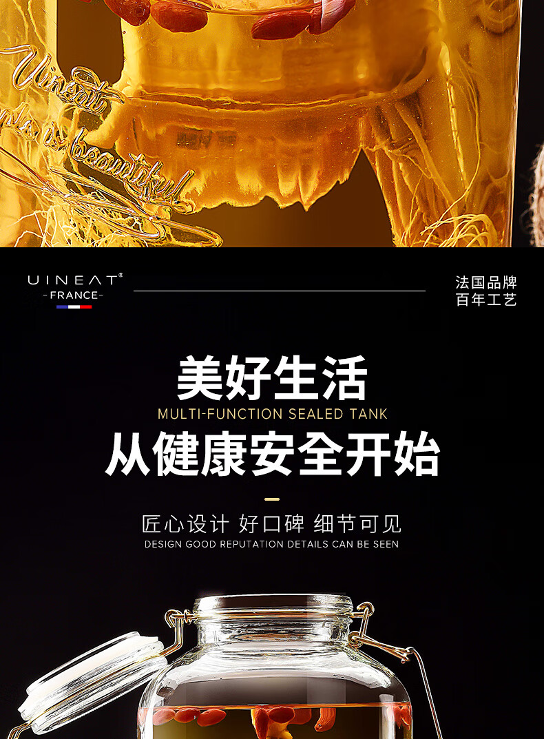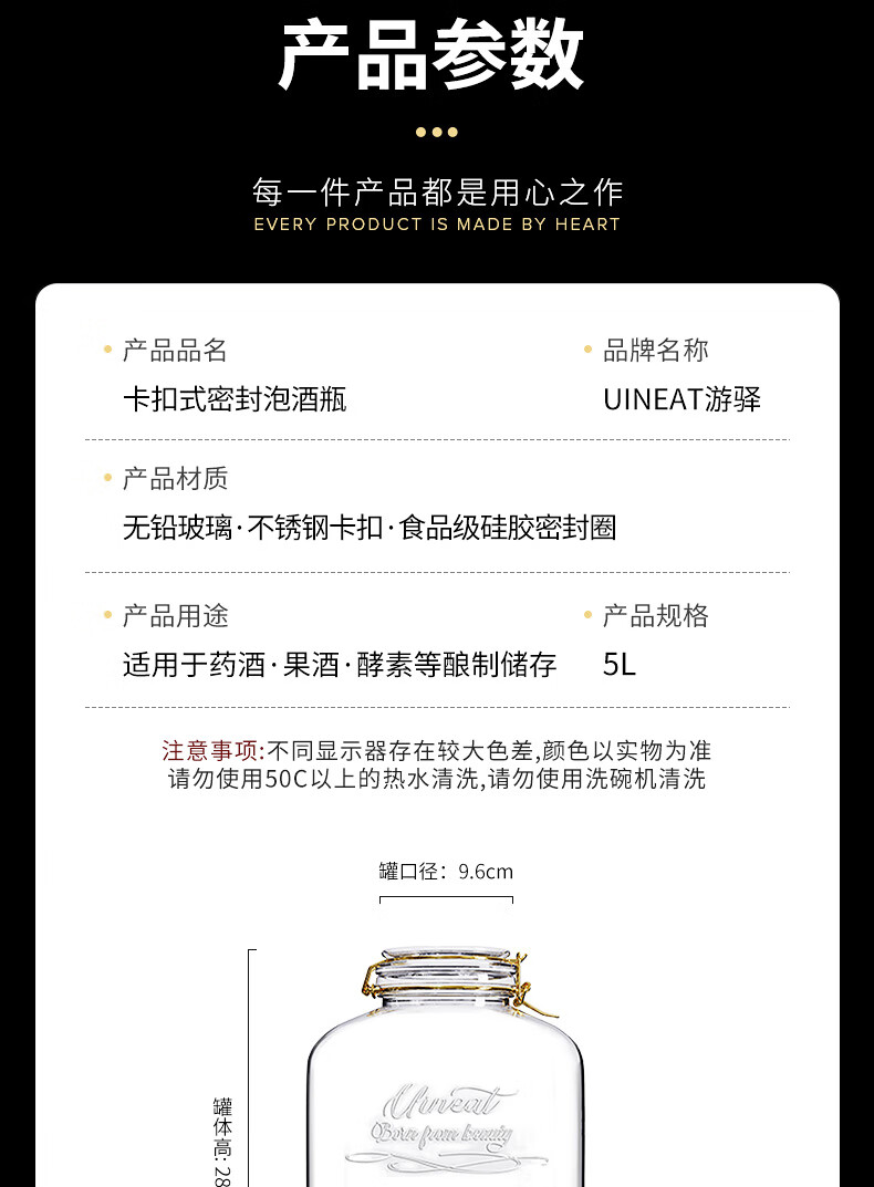 游驿(UINEAT)玻璃泡酒专用瓶密封罐家用酿酒坛10斤泡酒容器酒瓶