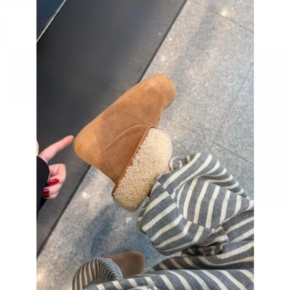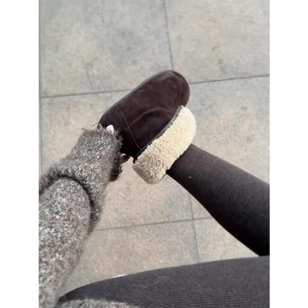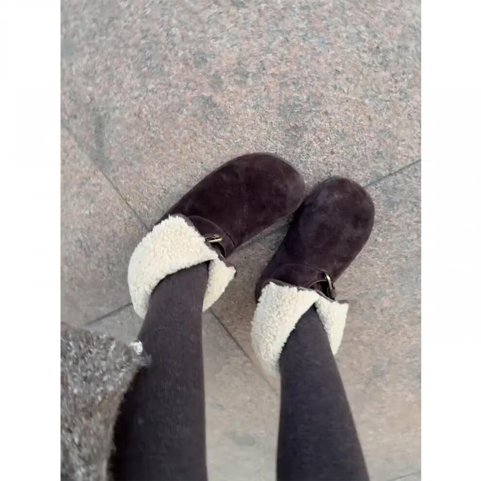 妙丽勃肯鞋女厚底复古加绒时尚保暖潮流2025冬季新款包头半拖鞋 咖色 37 (235mm) 标准码