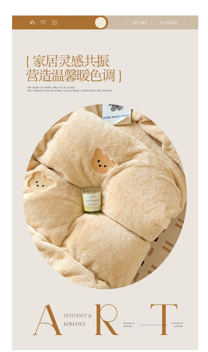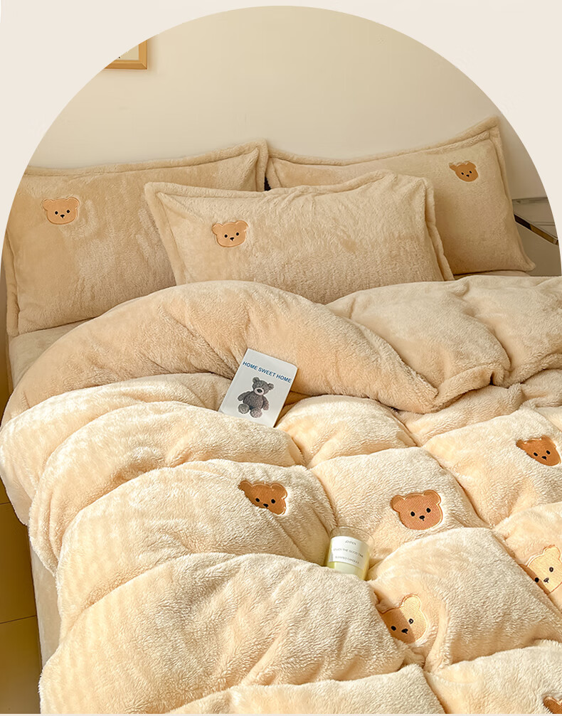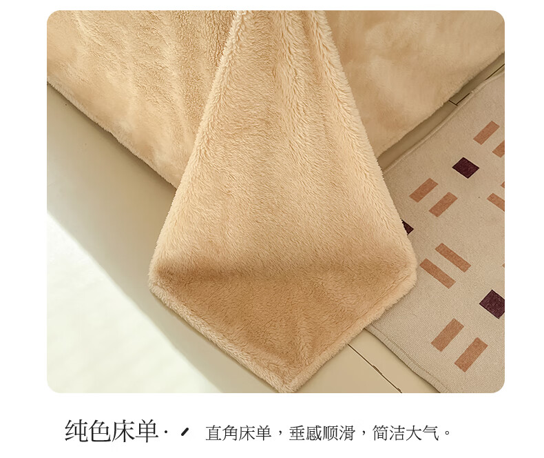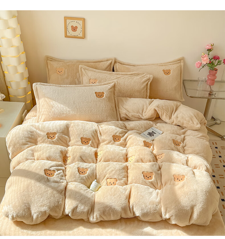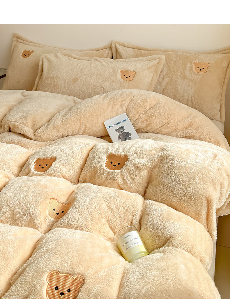 猫人(MiiOW)卡通刺绣牛奶绒床上四件套冬季加厚保暖毛绒珊瑚绒床单被套床品 香槟色【厚实保暖】 0.9m 床单款 三件套-150*200cm被套