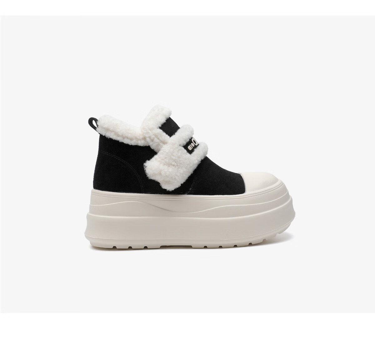 月芽儿加绒棉鞋女2025新款冬季超火增高板鞋保暖魔术贴毛毛鞋 绒里黑色01T 34